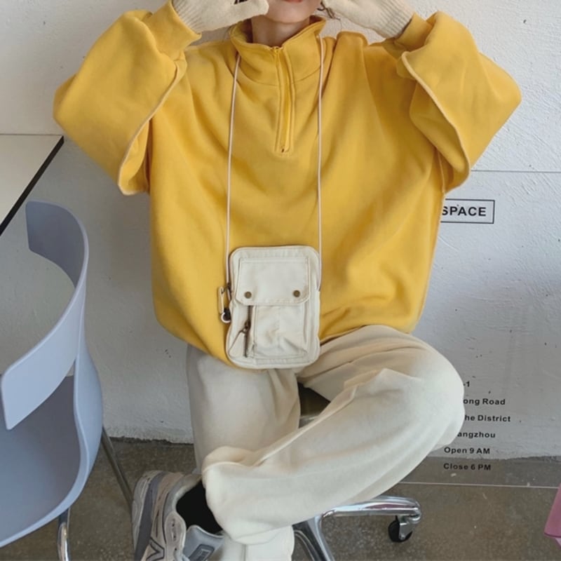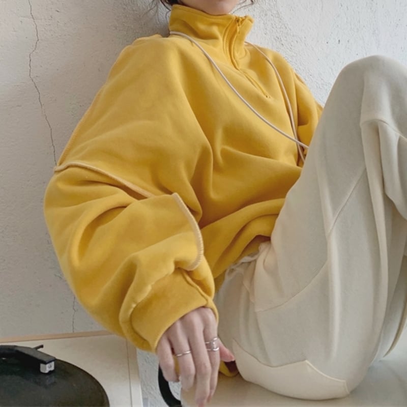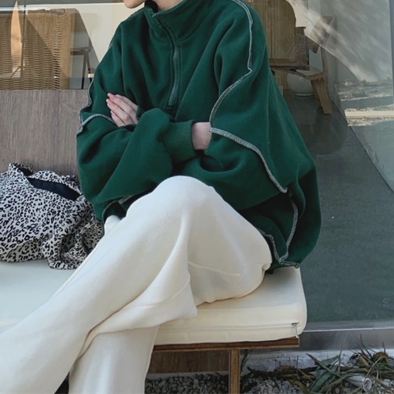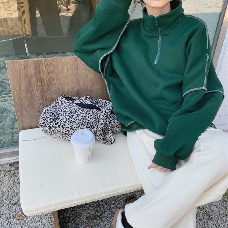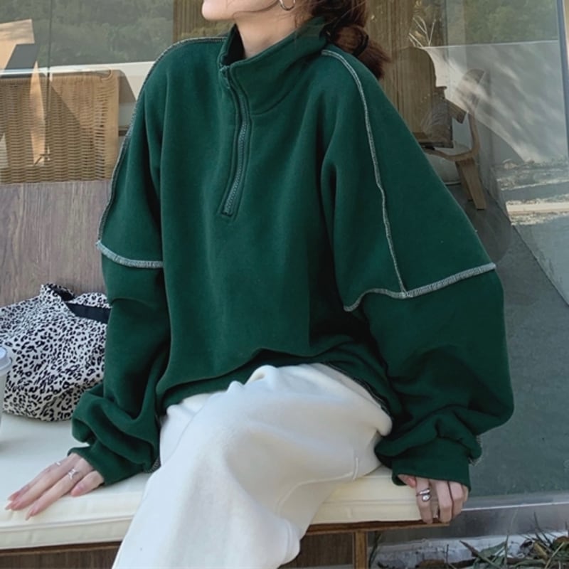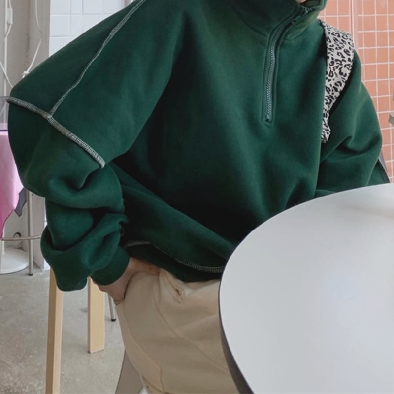 ハーフジップデザインがポイントのスウェットトップスです。
