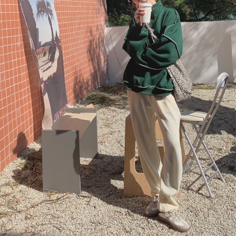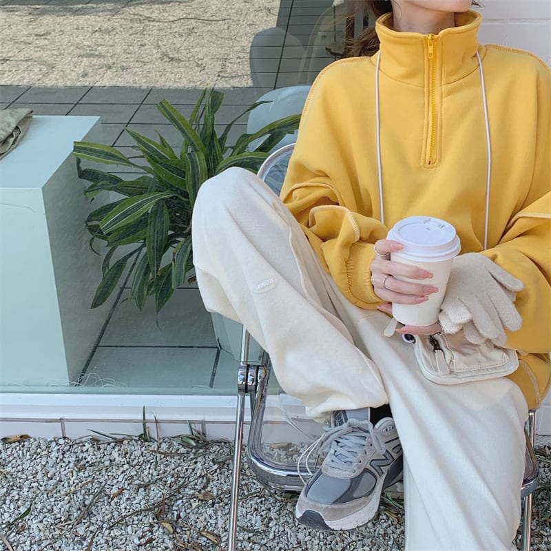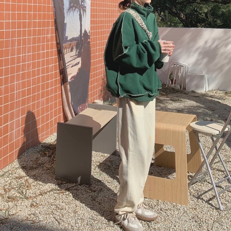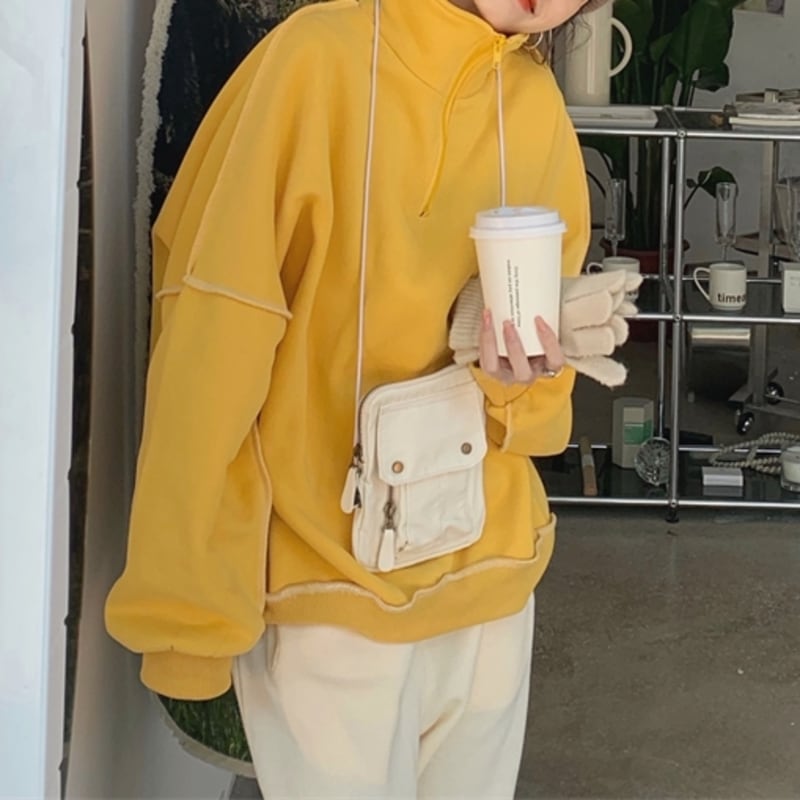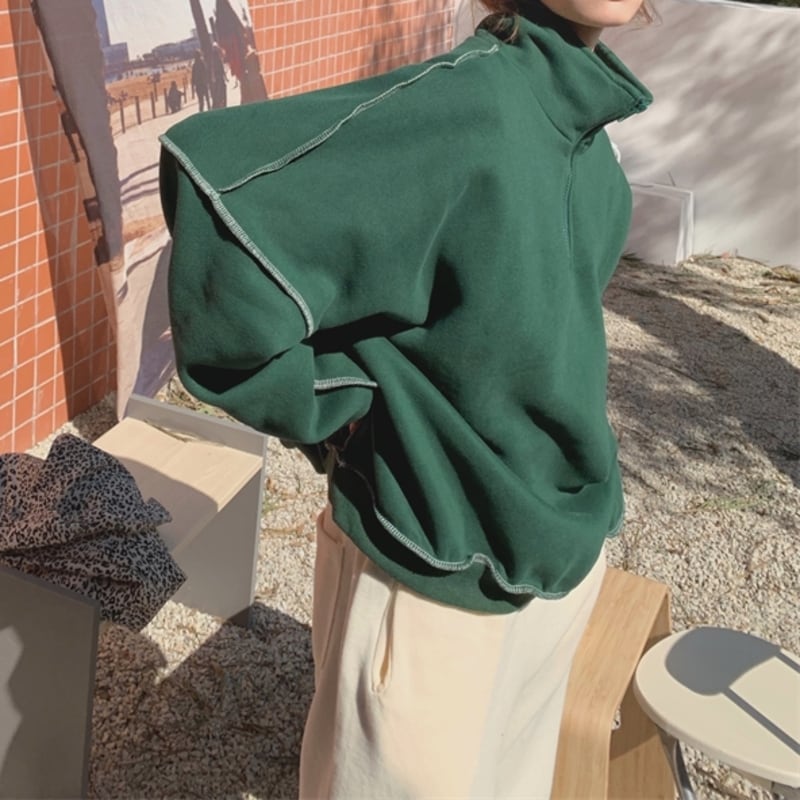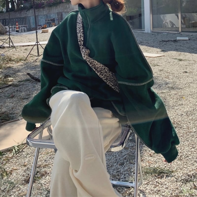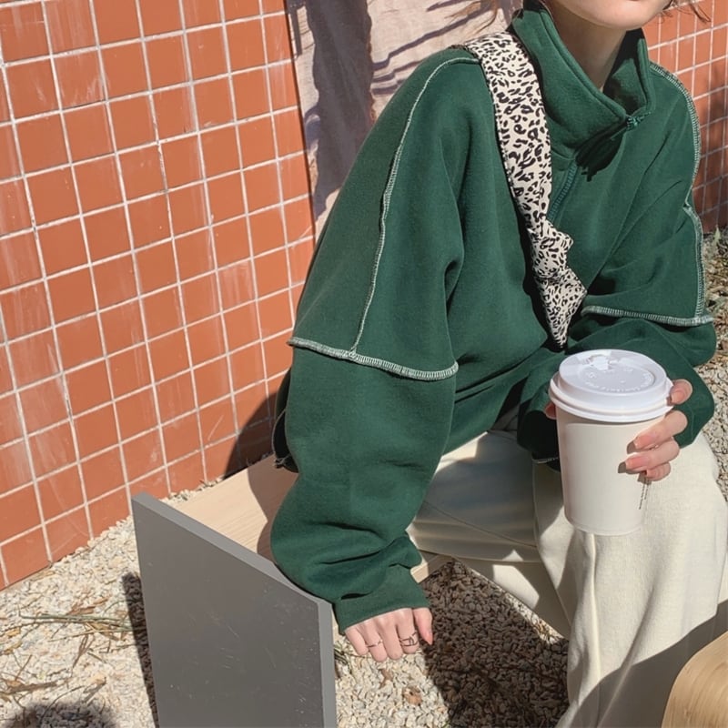 ハーフジップデザインがポイントのスウェットトップスです。
