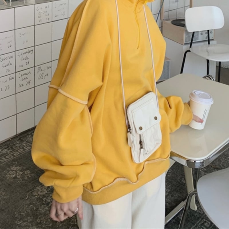 ゆったりオーバーサイズがラフな質感で、パイピングがデザインのアクセントになっています。