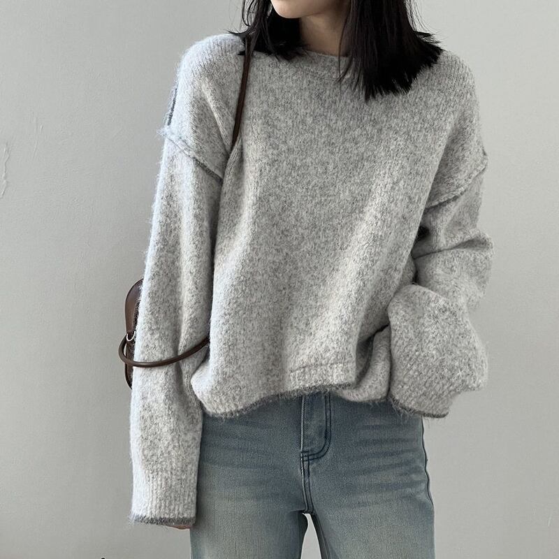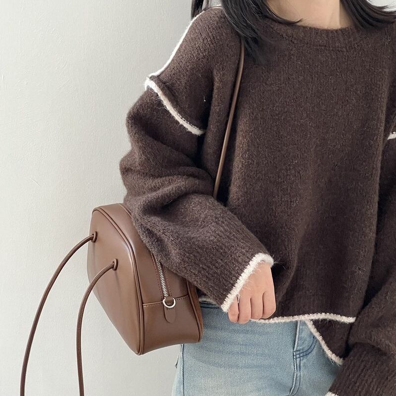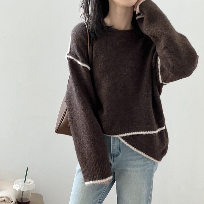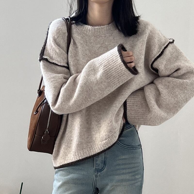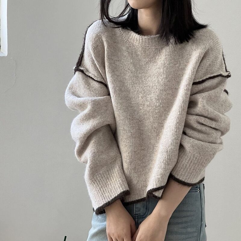 配色パイピングがアクセントになった、こなれ感のあるニットトップスです。