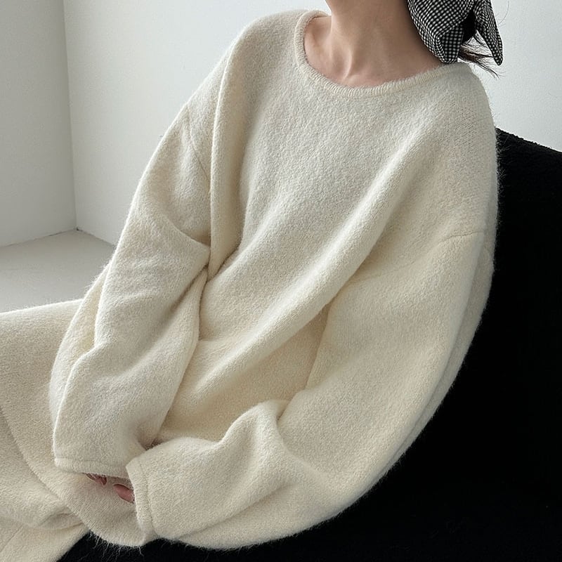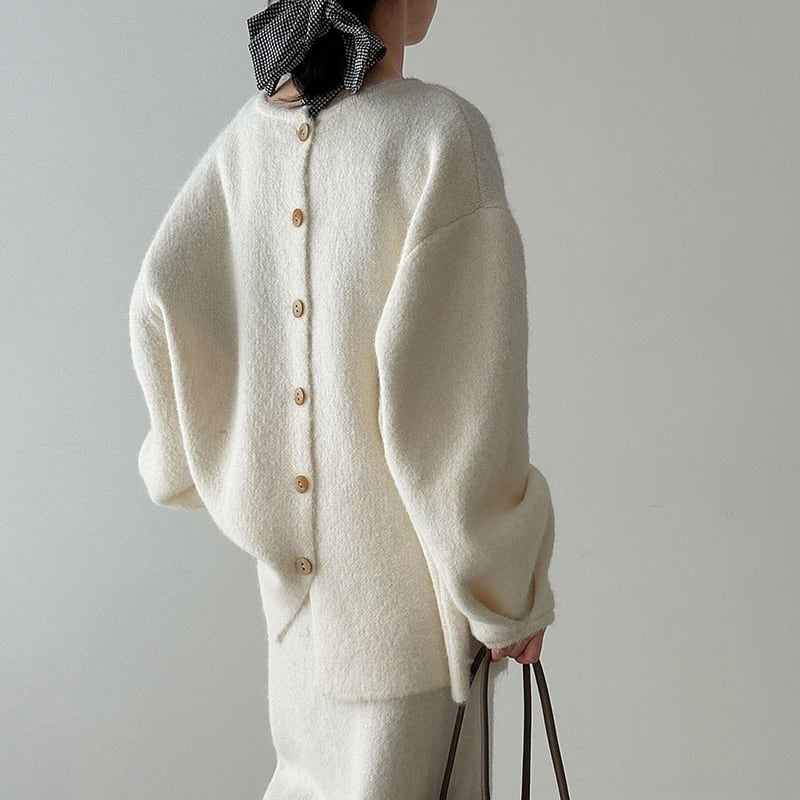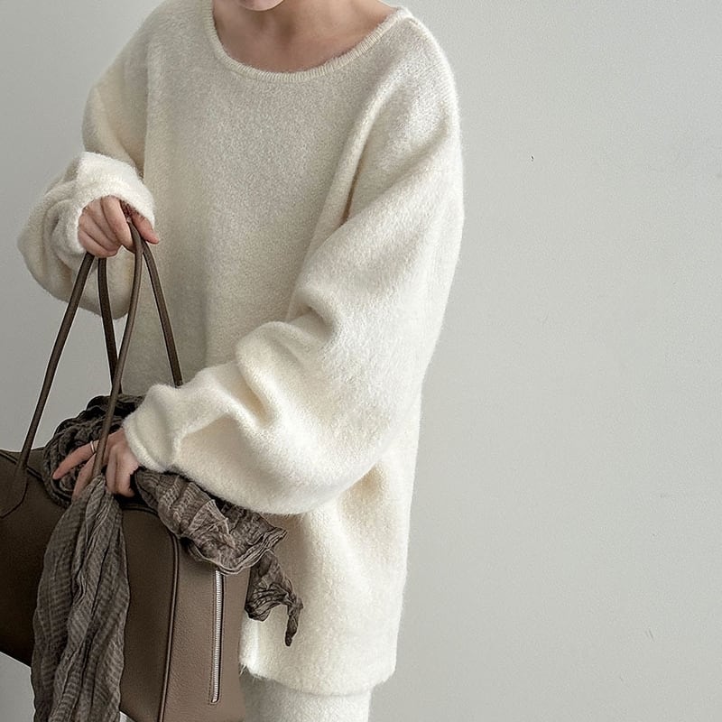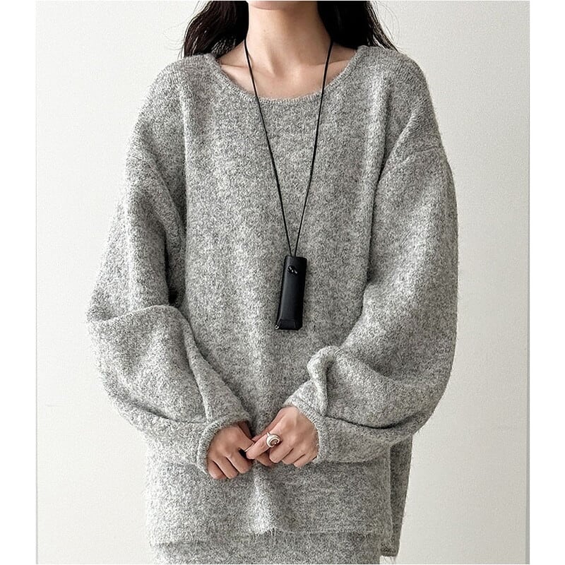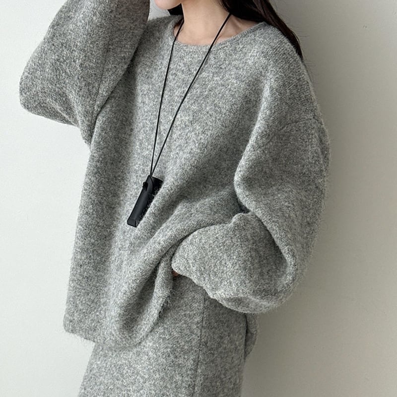 ゆったりとしたシルエットが魅力的なニットトップスとペンシルスカートのセットアップです。