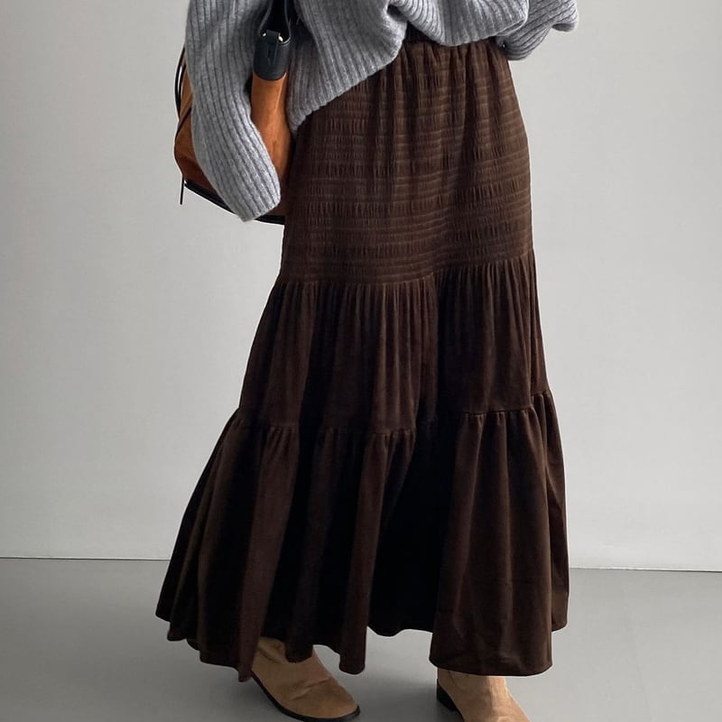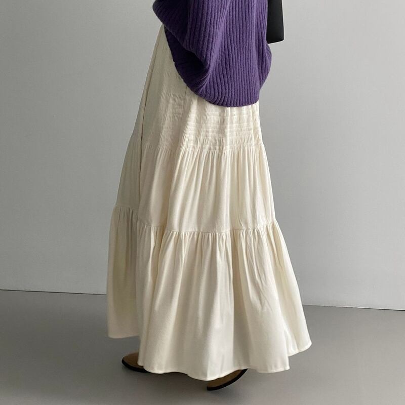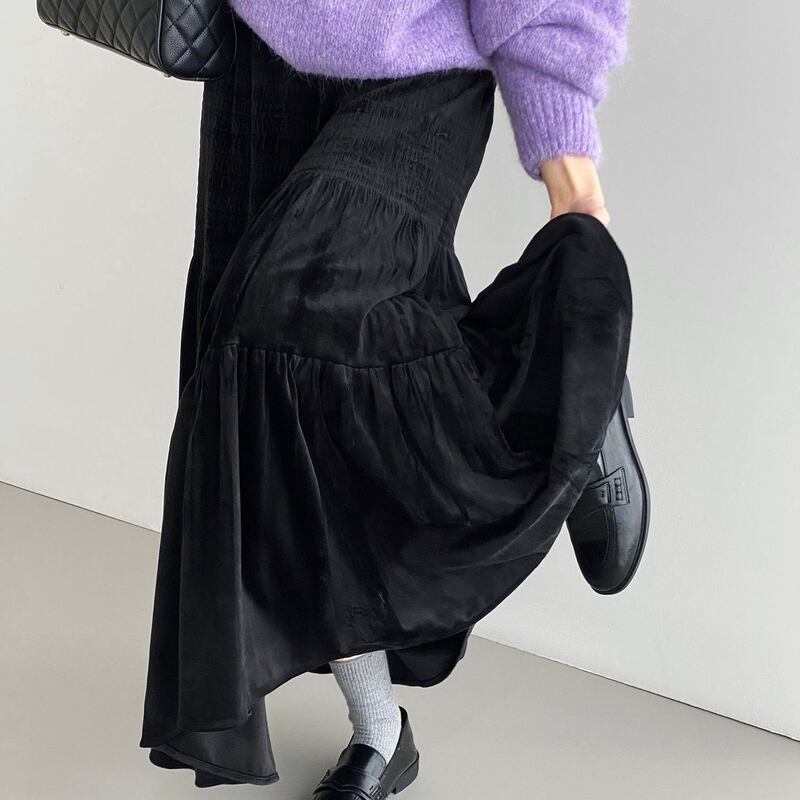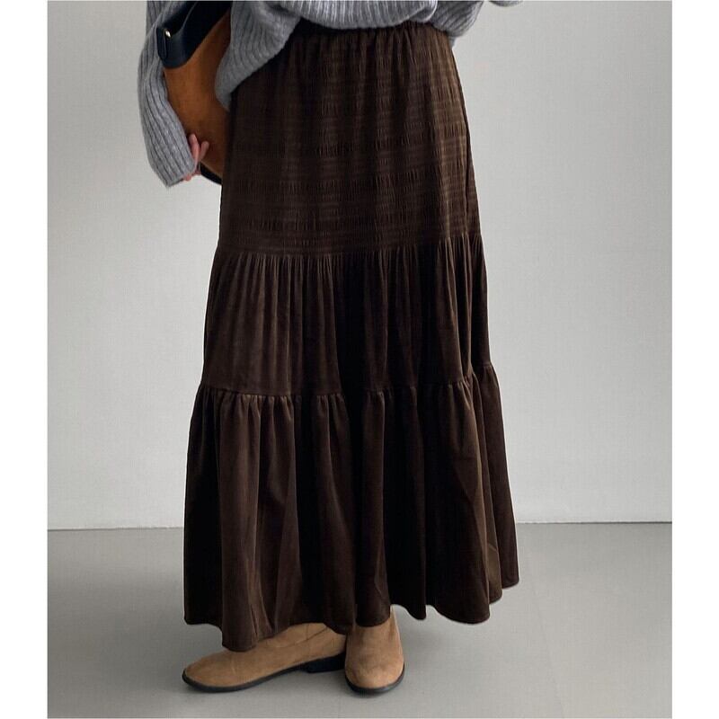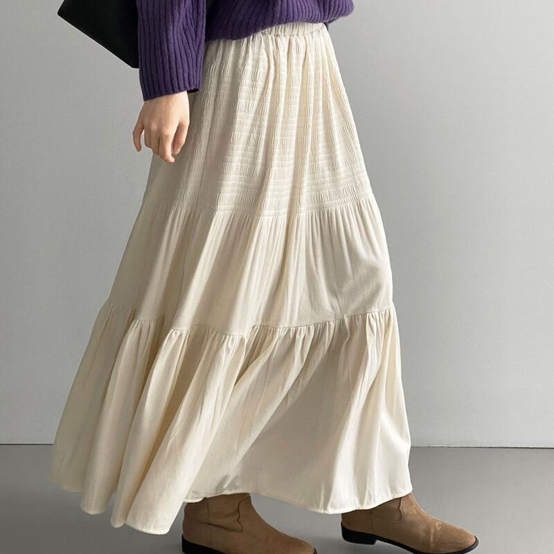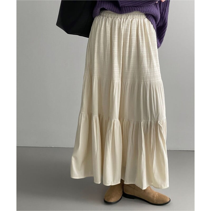 ふんわりと広がるAラインシルエットが魅力的なマキシ丈スカートです。