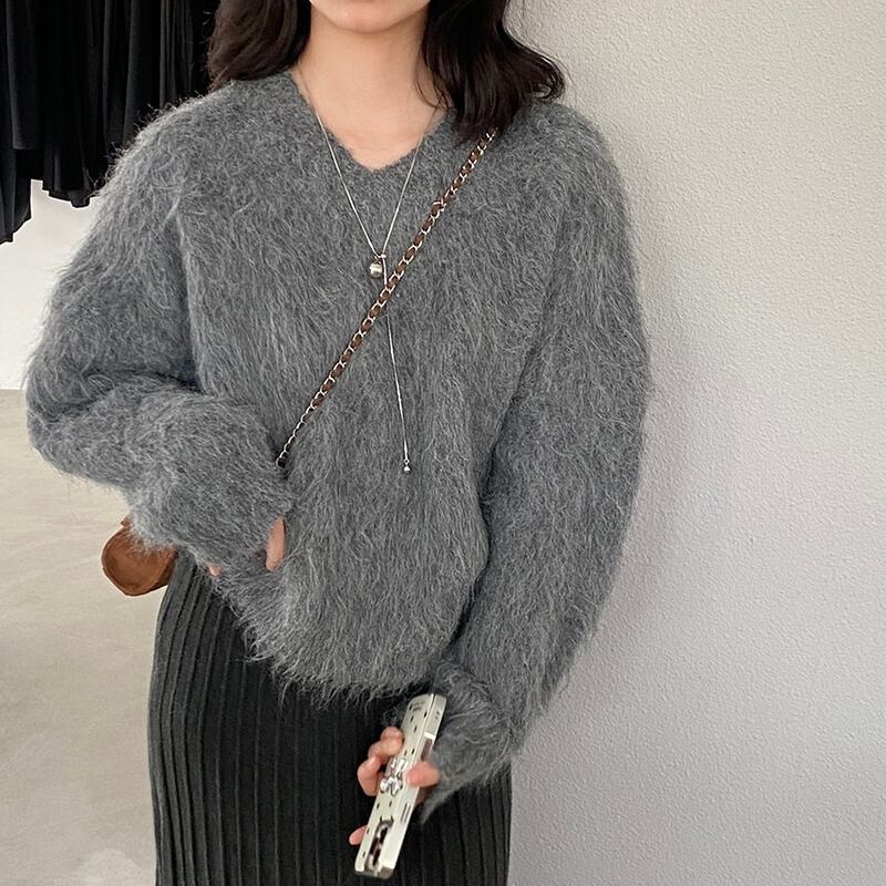 ゆったりとしたシルエットで、こなれ感を演出するVネックのニットトップスです。