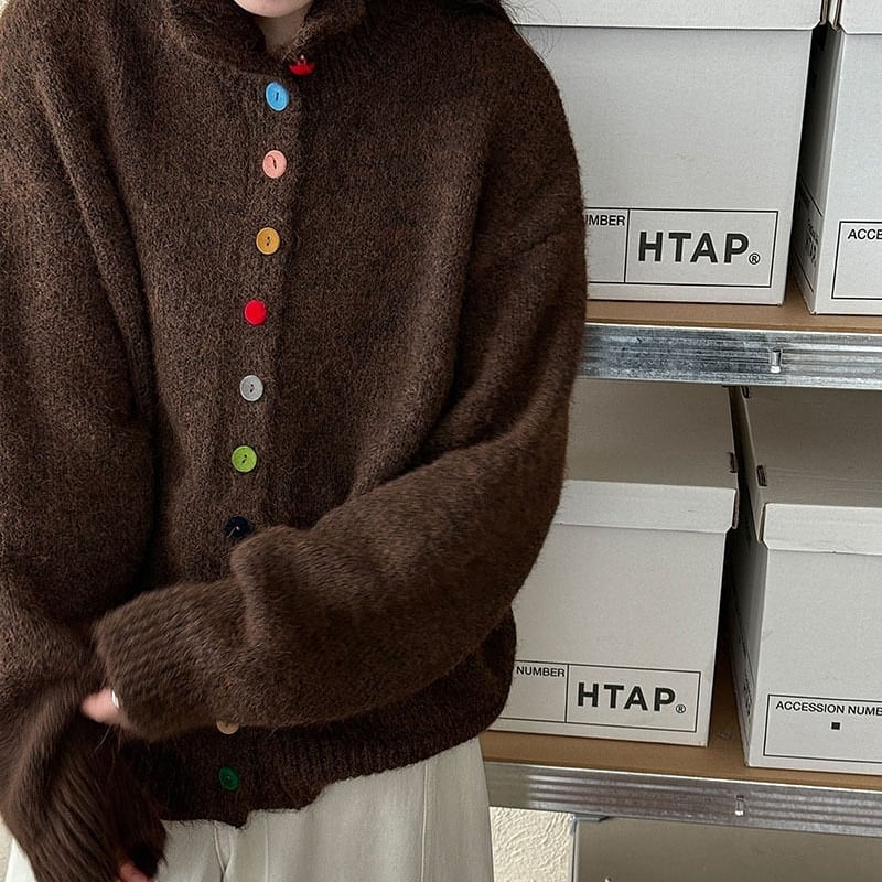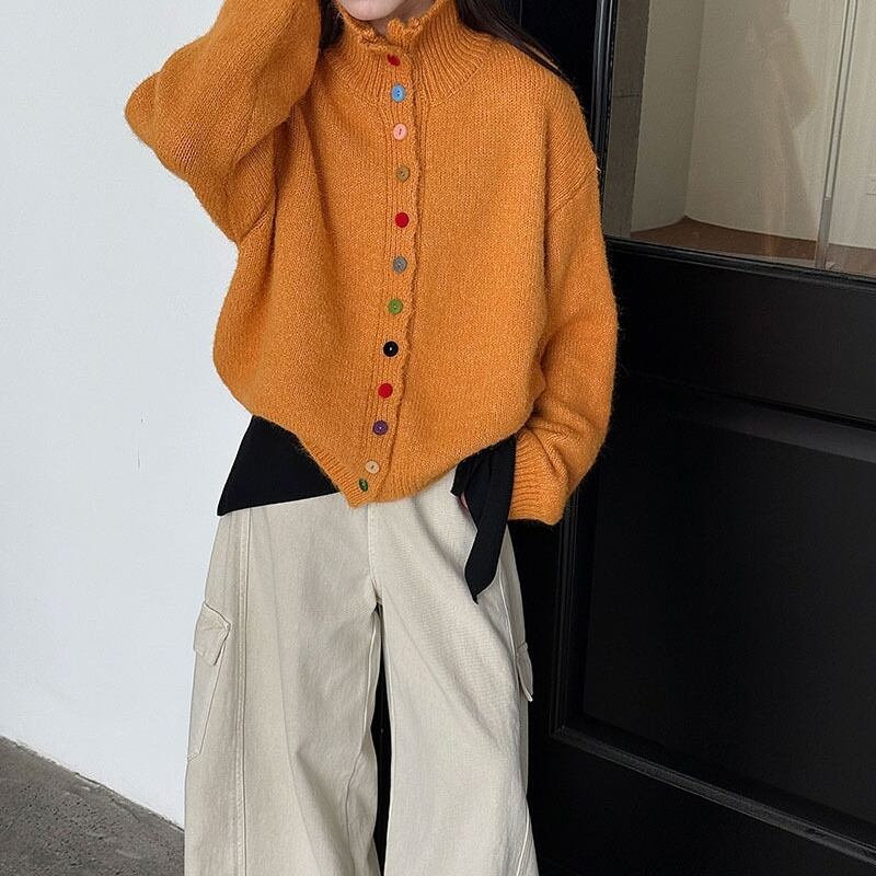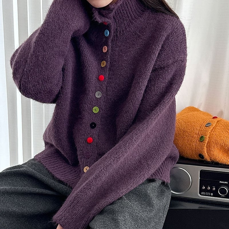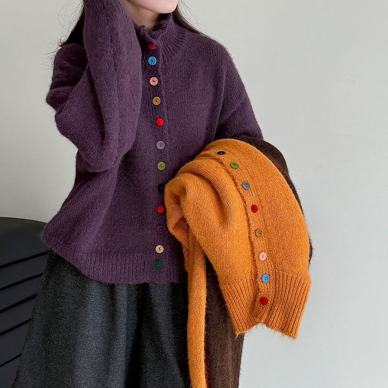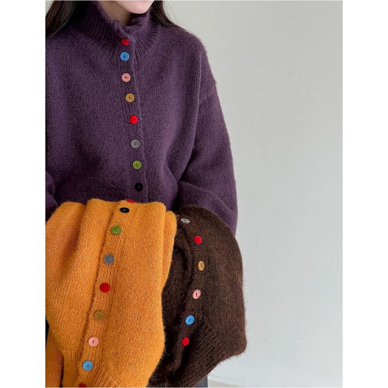 目を引くカラフルなボタンがアクセントになり、コーディネートの主役になること間違いなし。