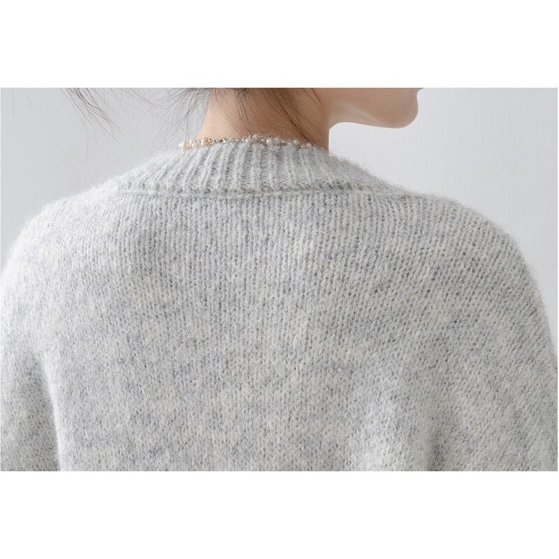 クルーネックのデザインが、上品で落ち着いた印象を与えます。