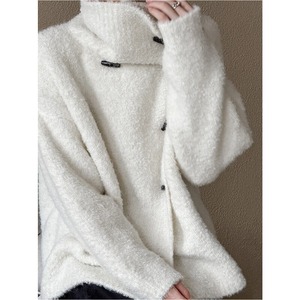 フロントのトグルボタンがアクセントになったヒップ丈のニットカーディガンです。
