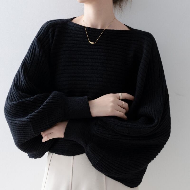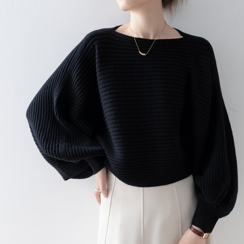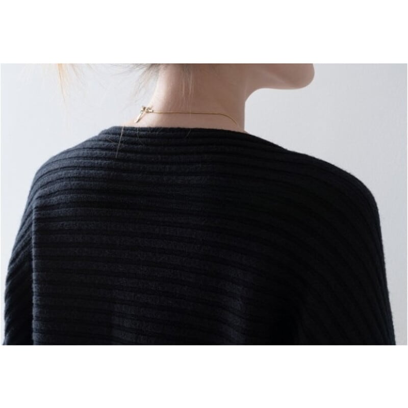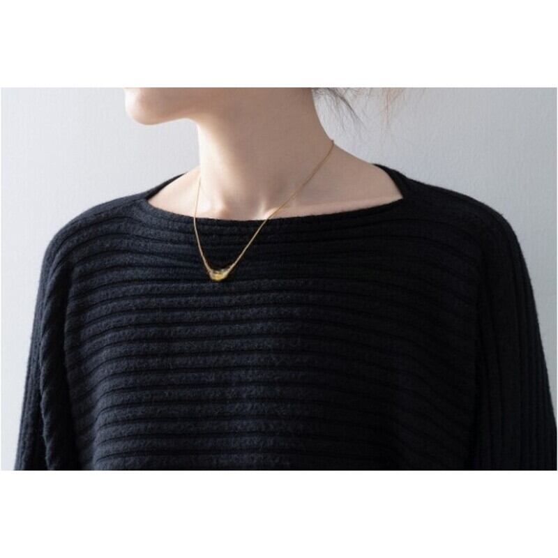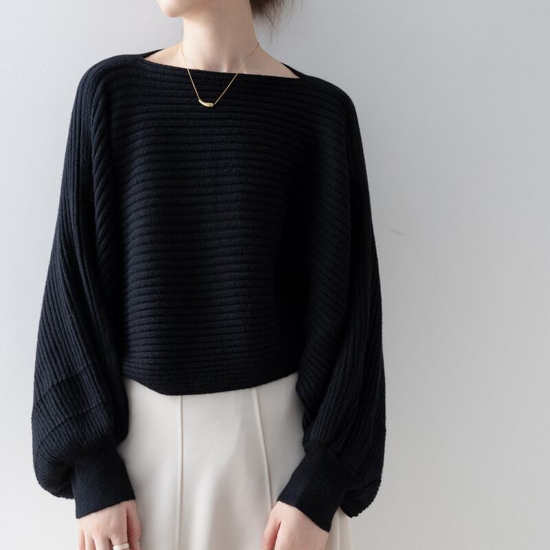 程よい肌見せがヘルシーな印象の、ボートネックのニットトップスです。