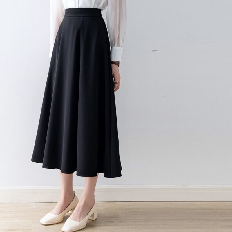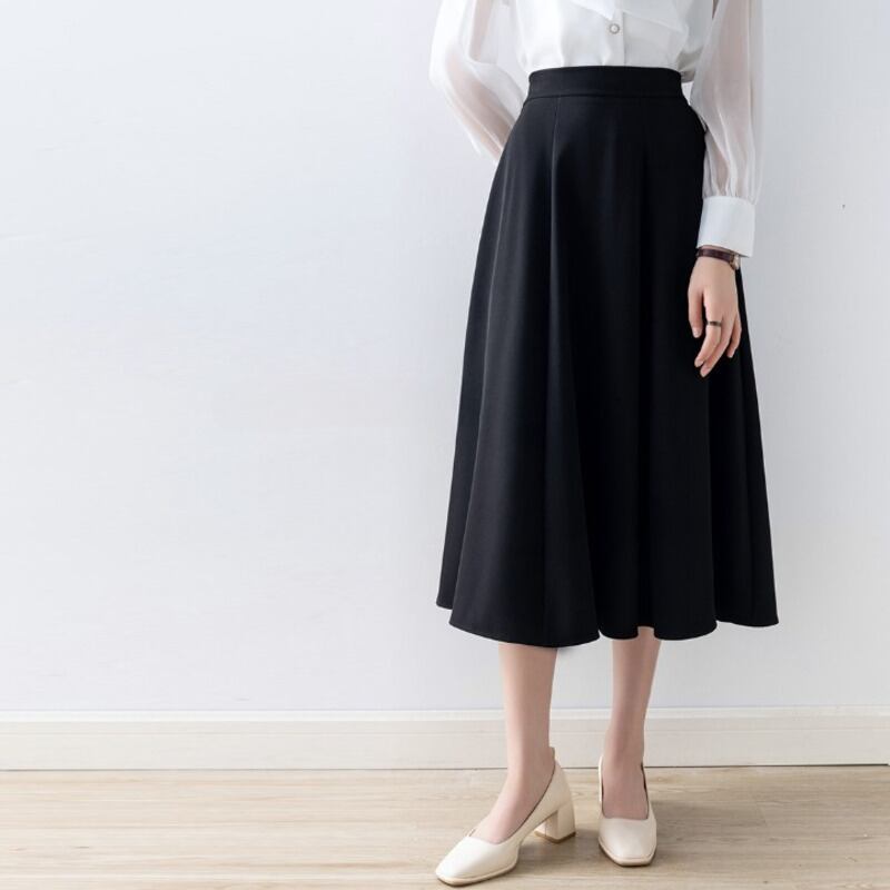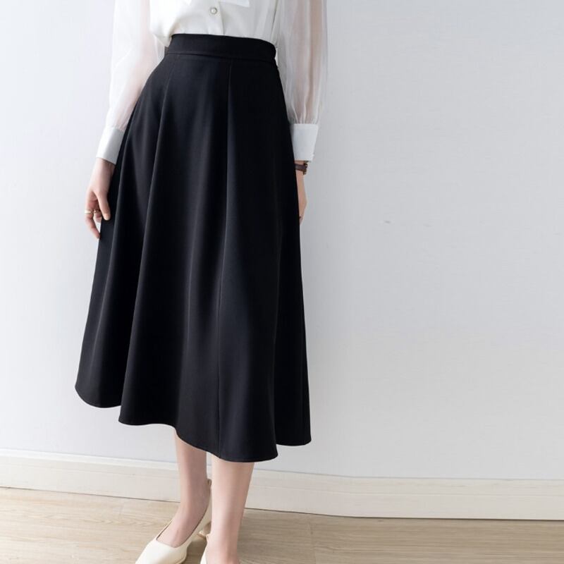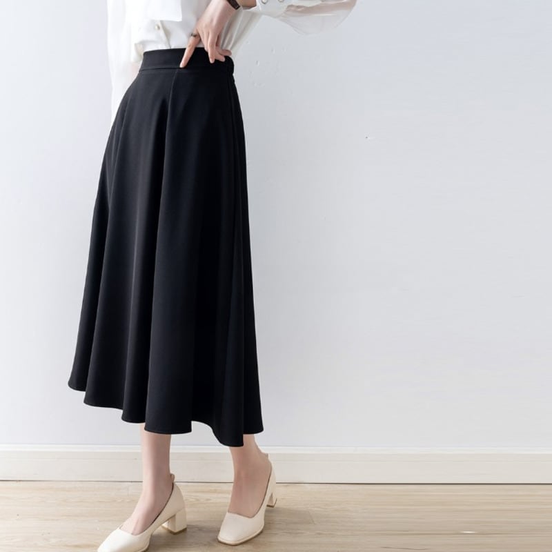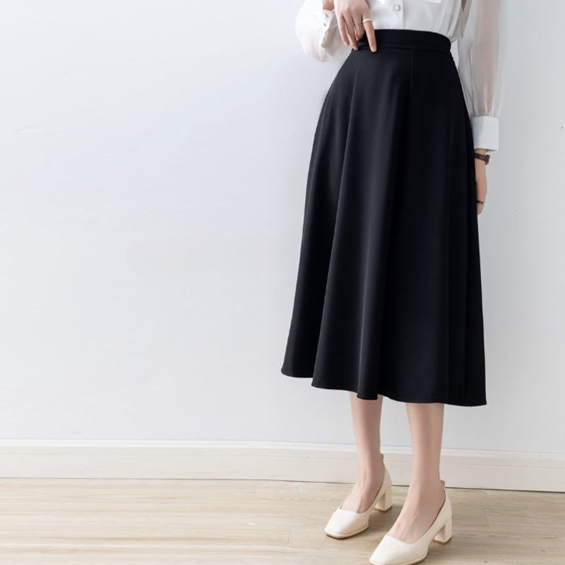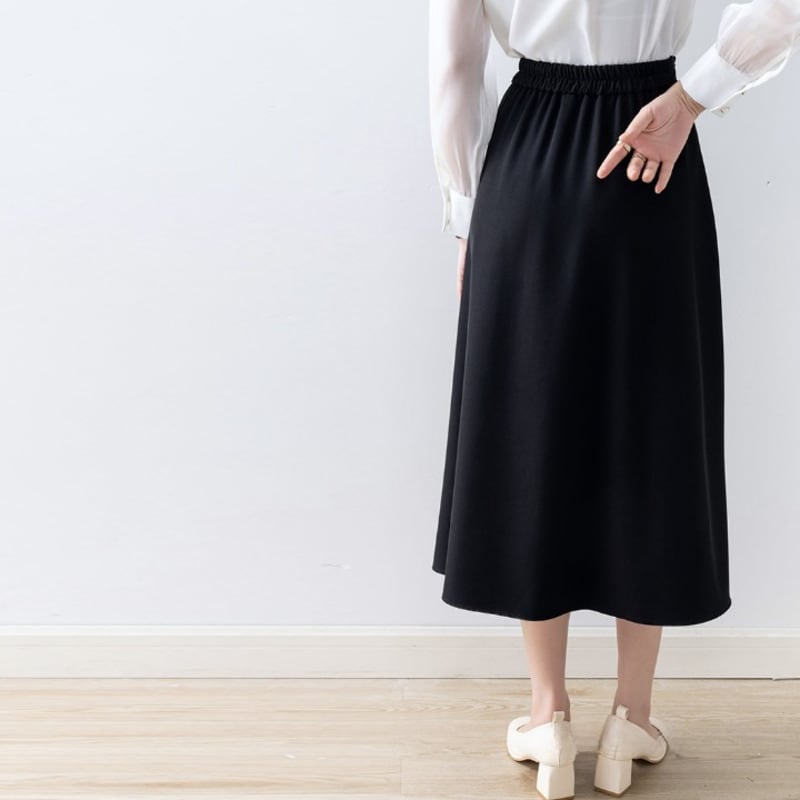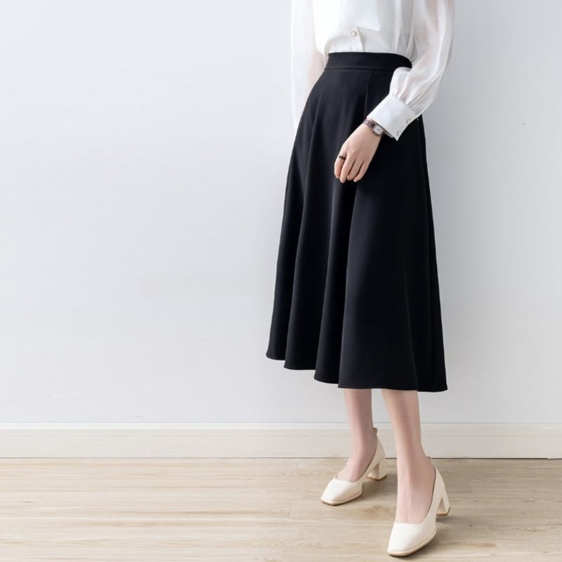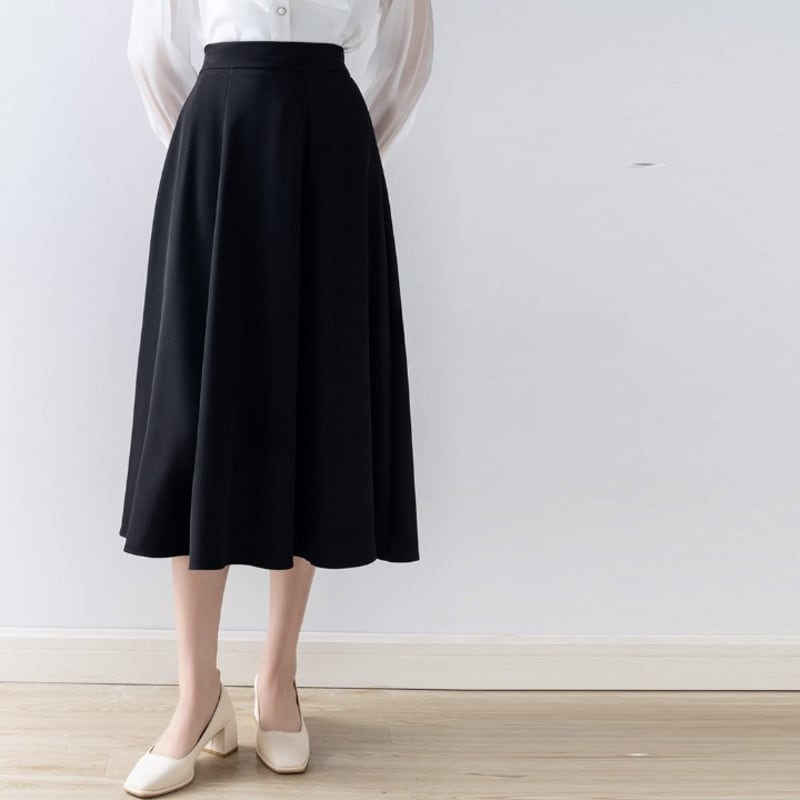 上品なフレアシルエットが魅力的なミモレ丈スカートです。