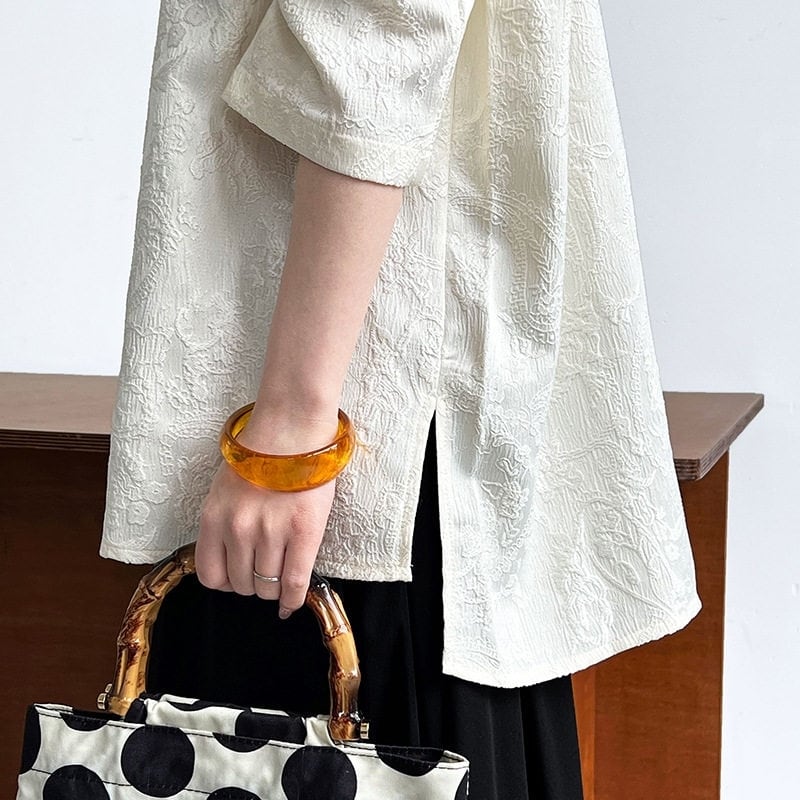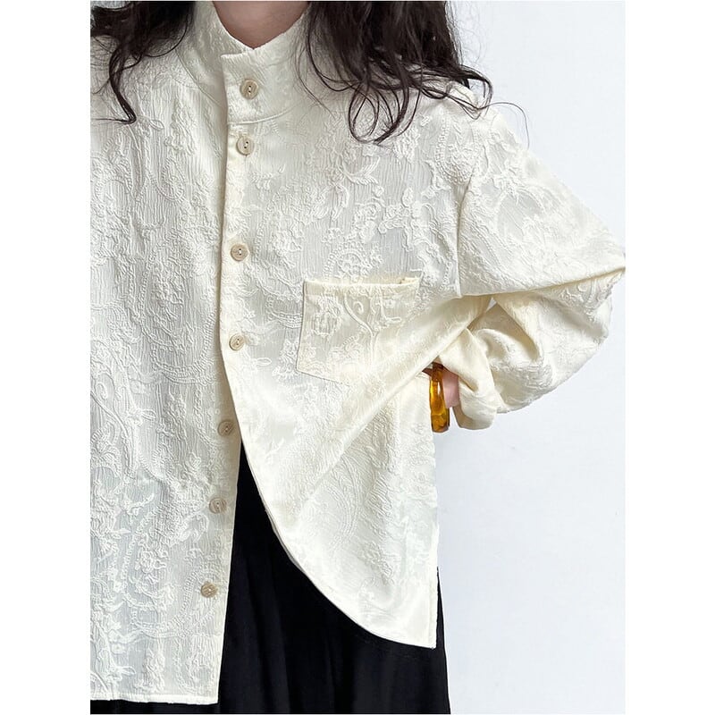 花柄レースパターンが上品で、チャイナテイストの仕立てがこなれた一着。