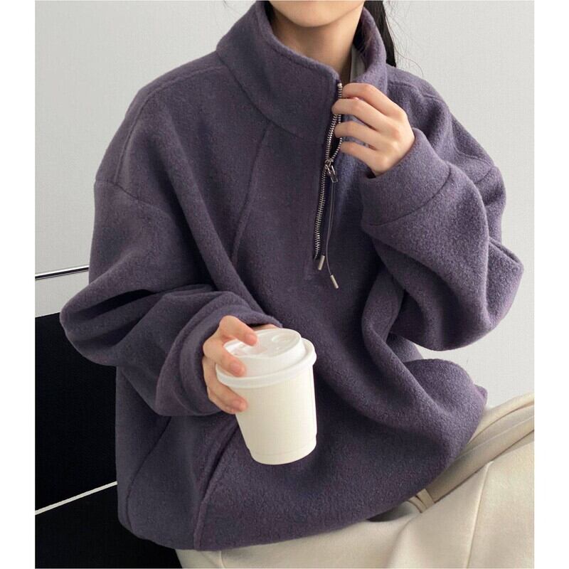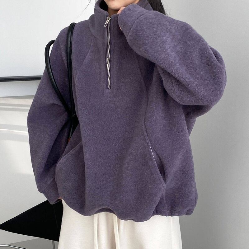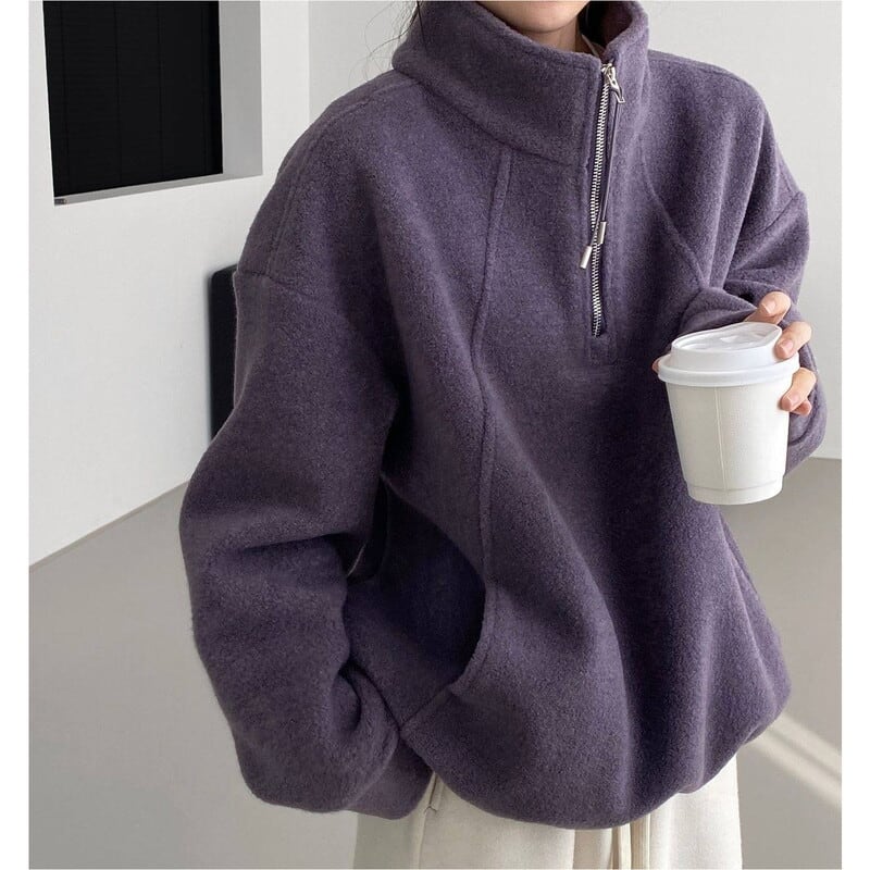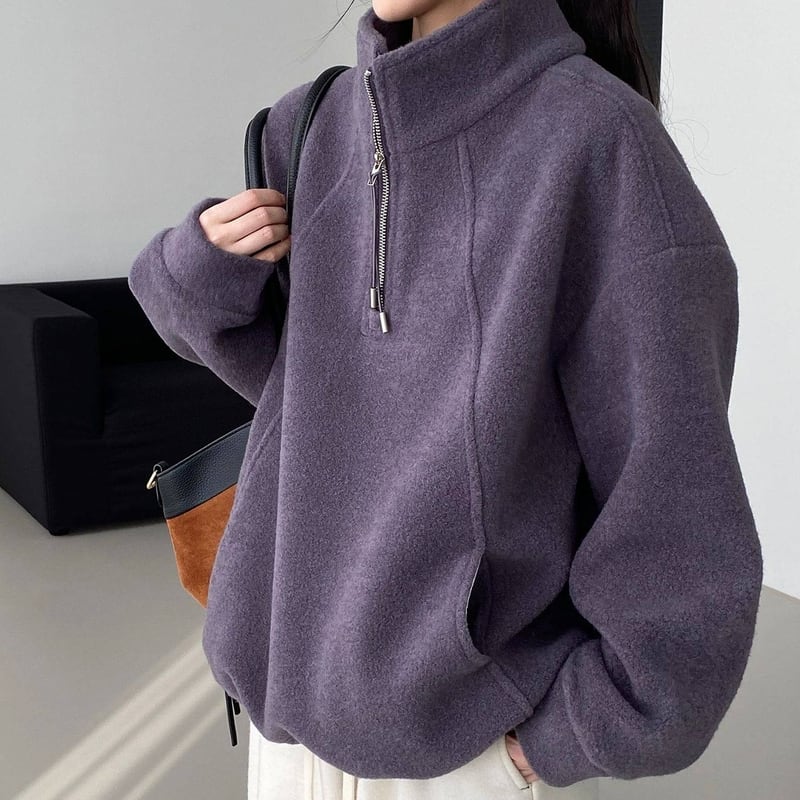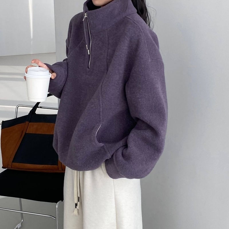 ハーフジップがポイントでハンサムなテイストのスタンドカラープルオーバー。