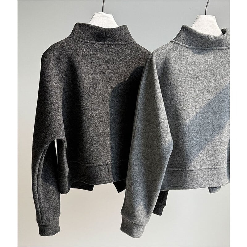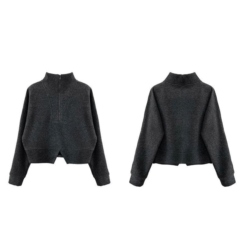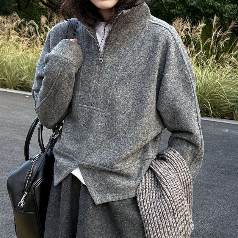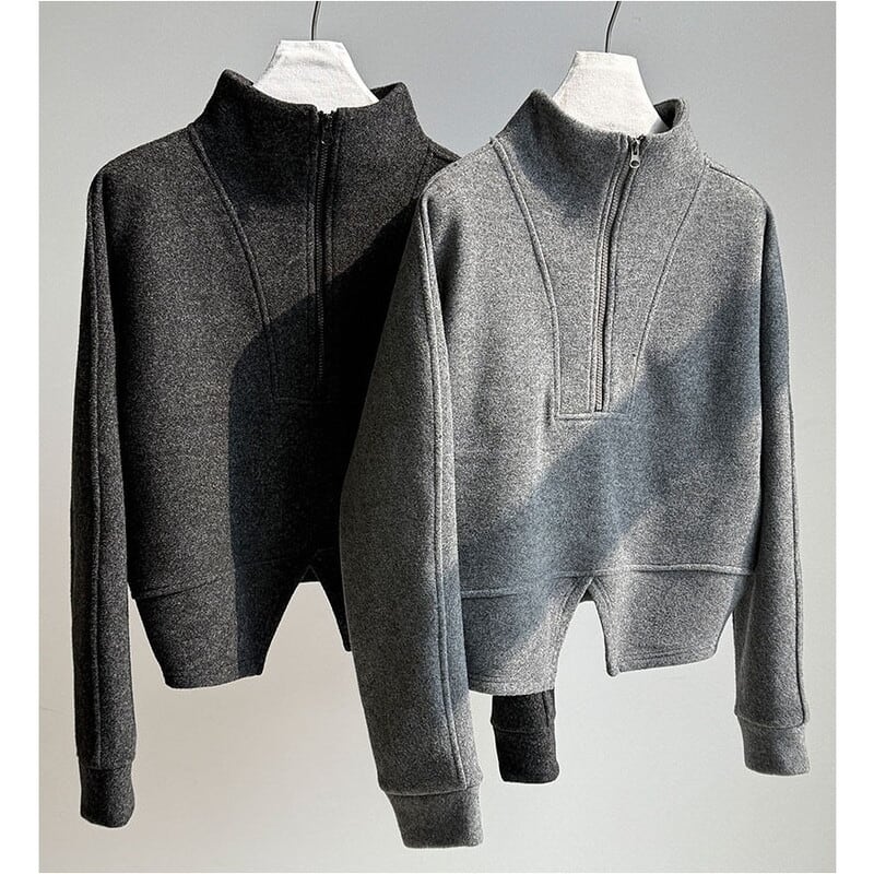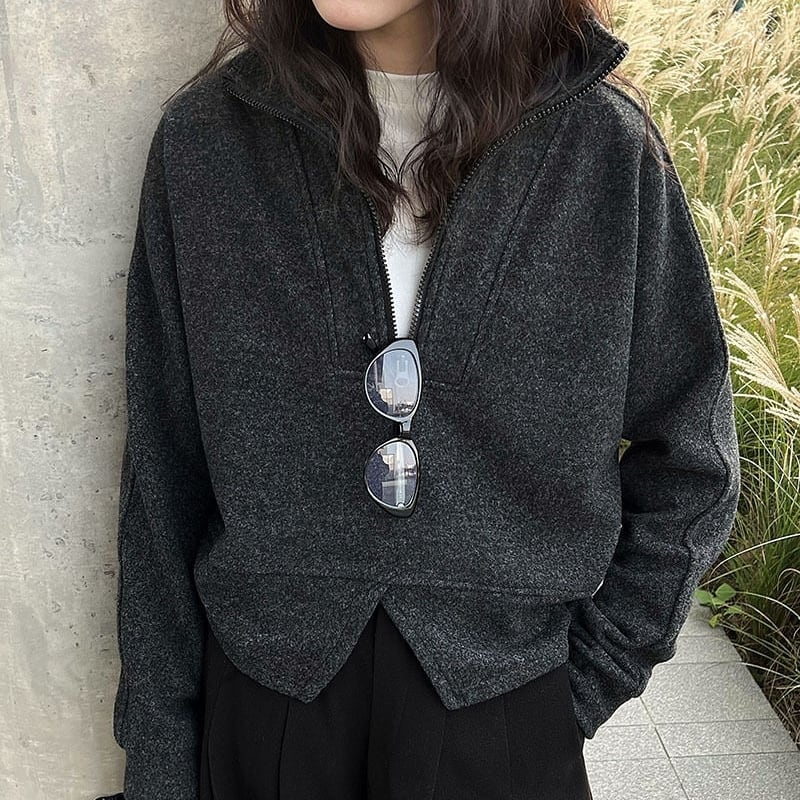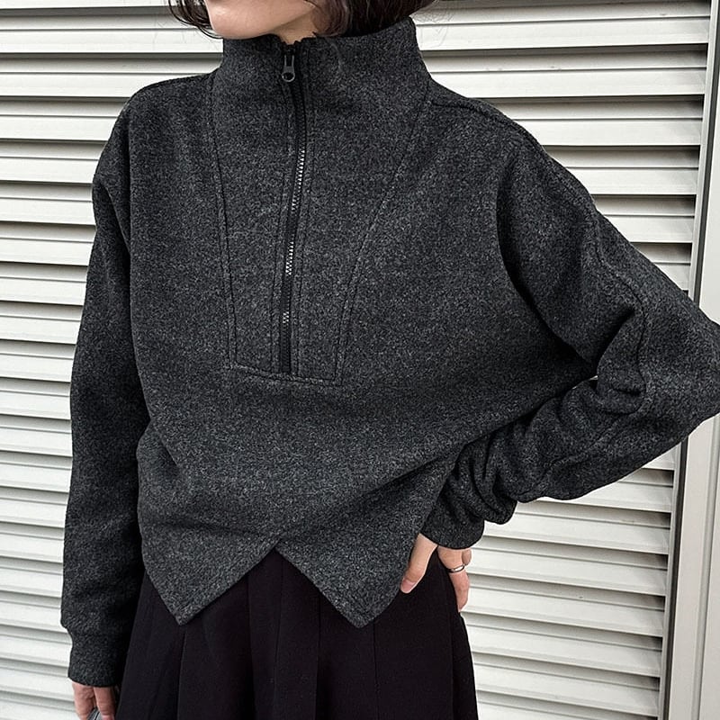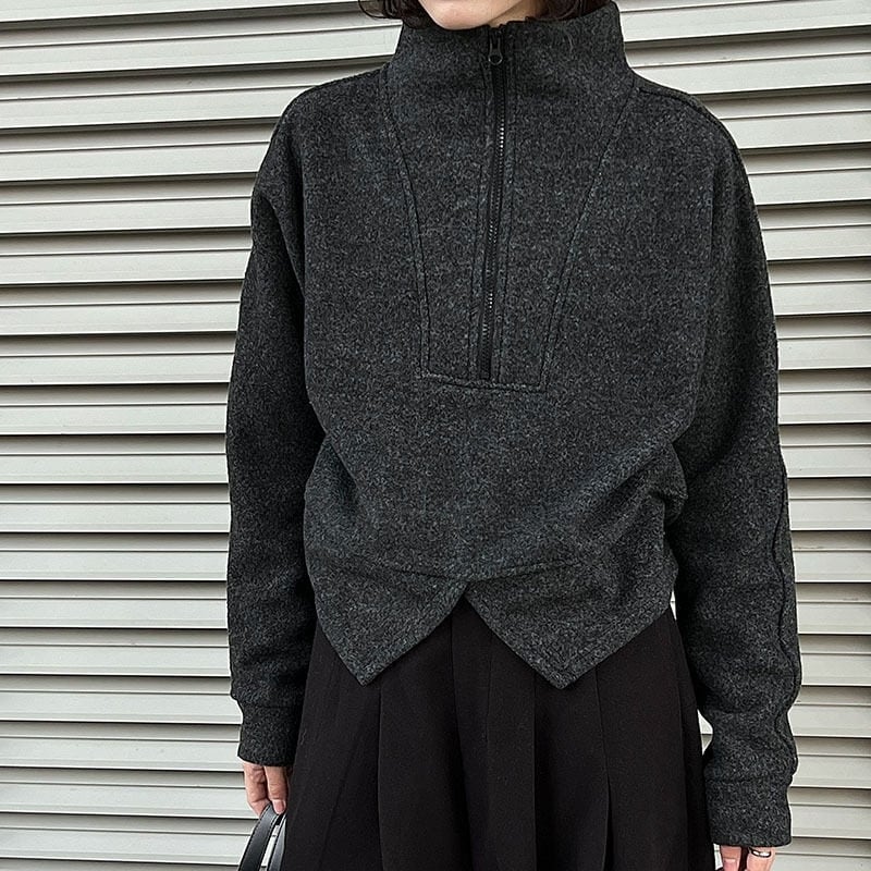 ハーフジップのデザインが特徴的な、カジュアルに着こなせるトップスです。