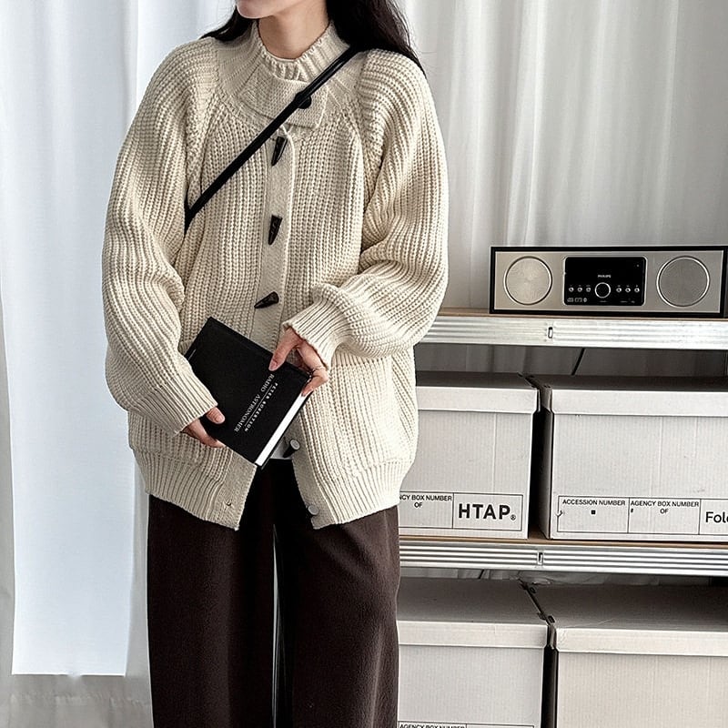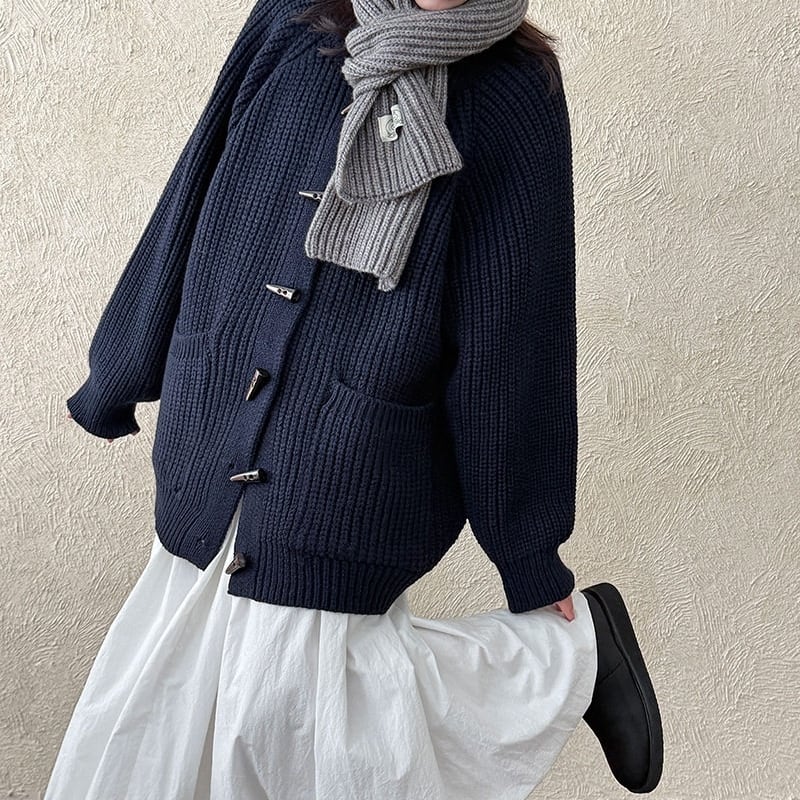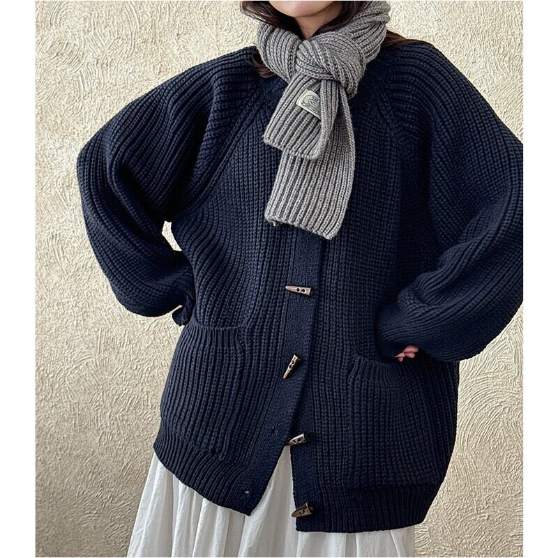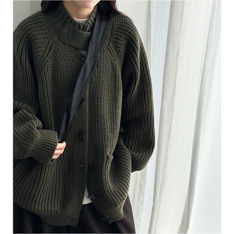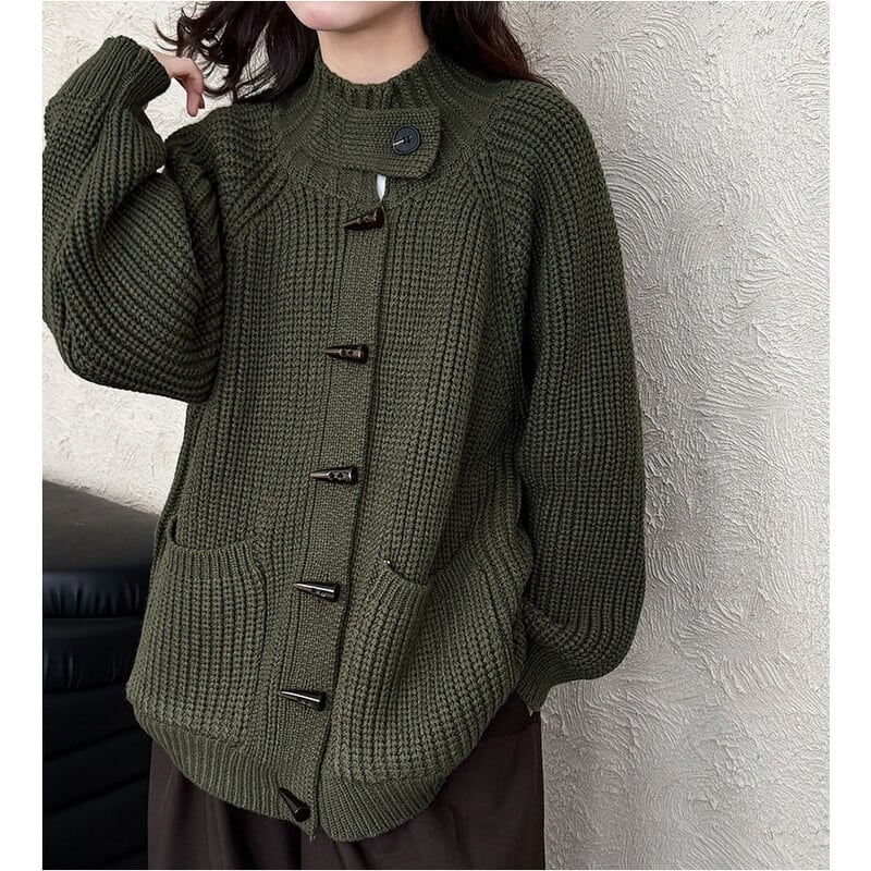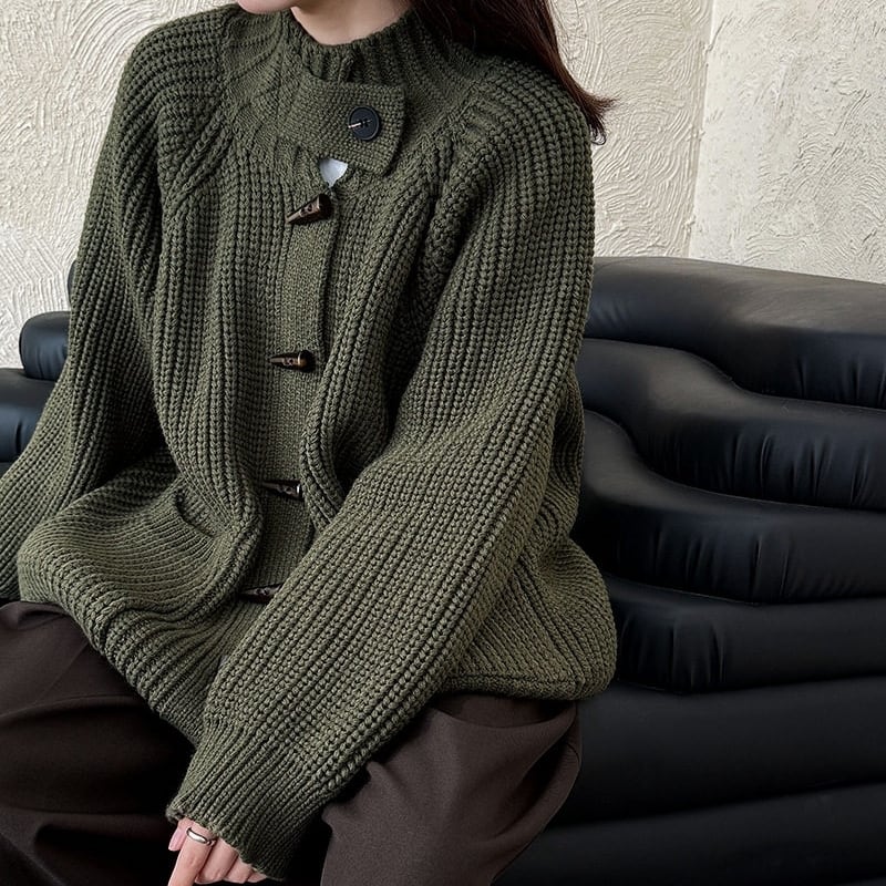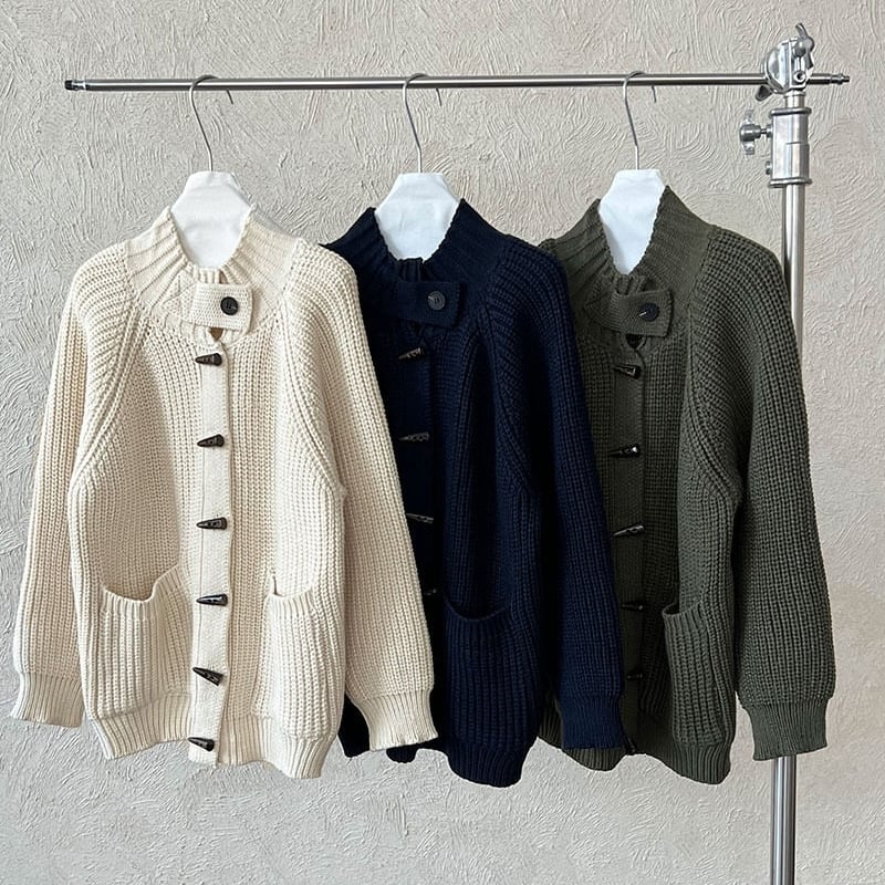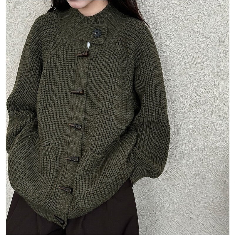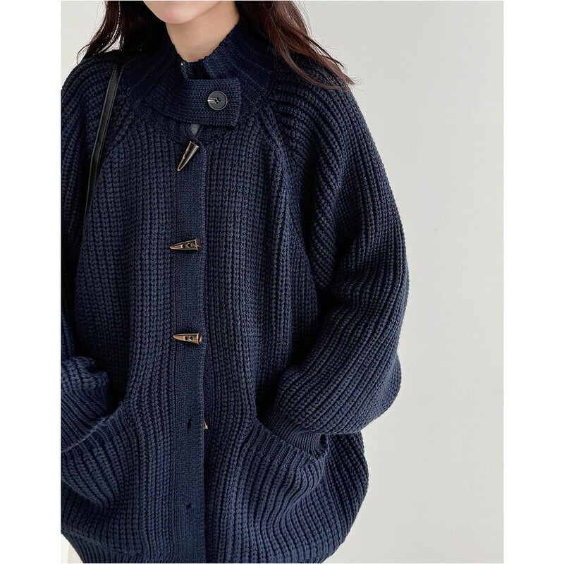 フロントのトグルボタンがアクセントになったニットカーディガンです。
