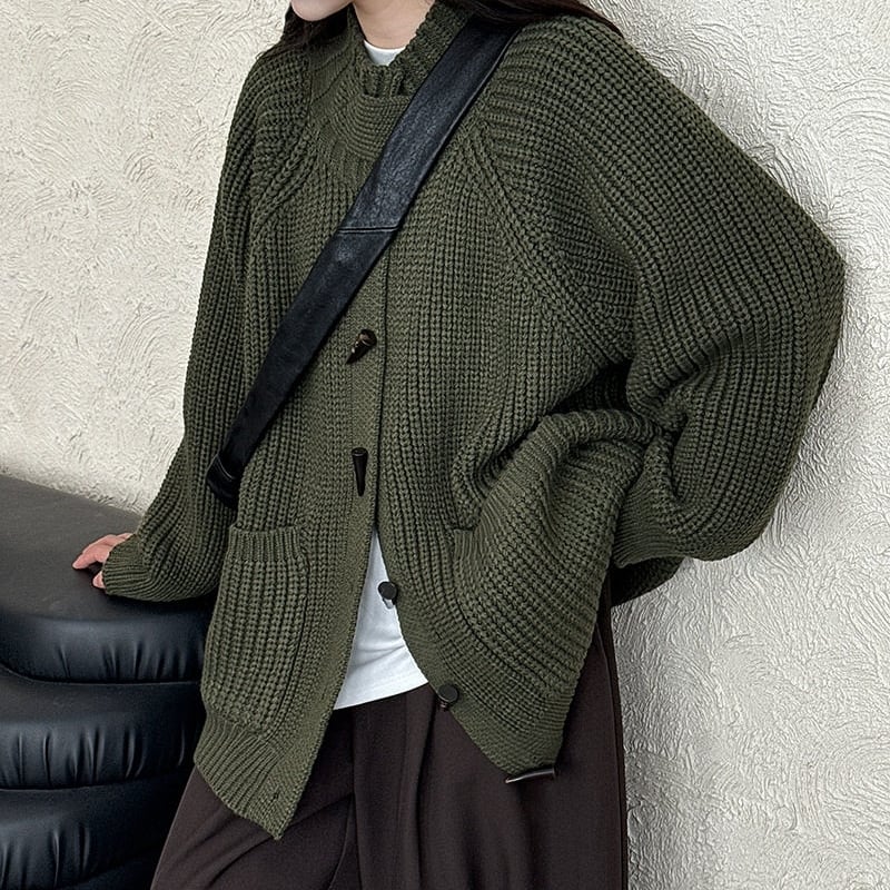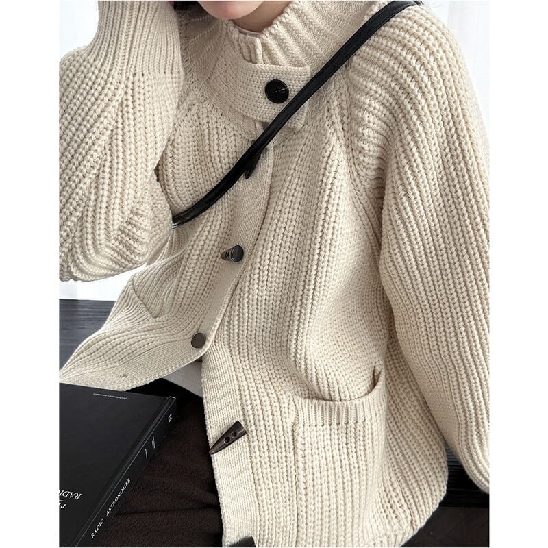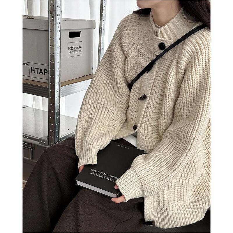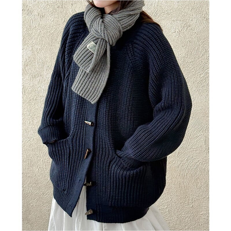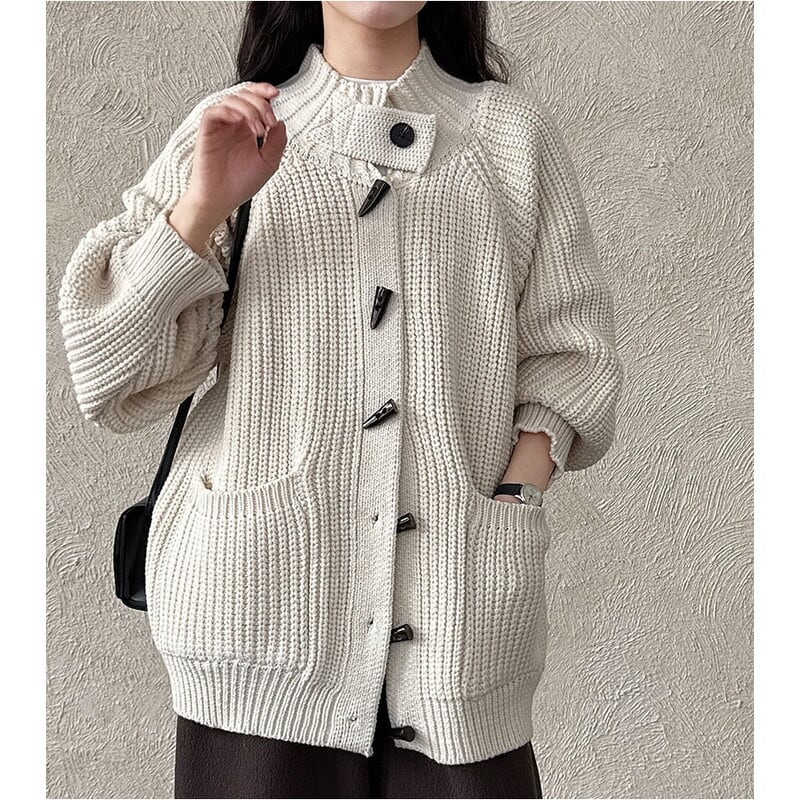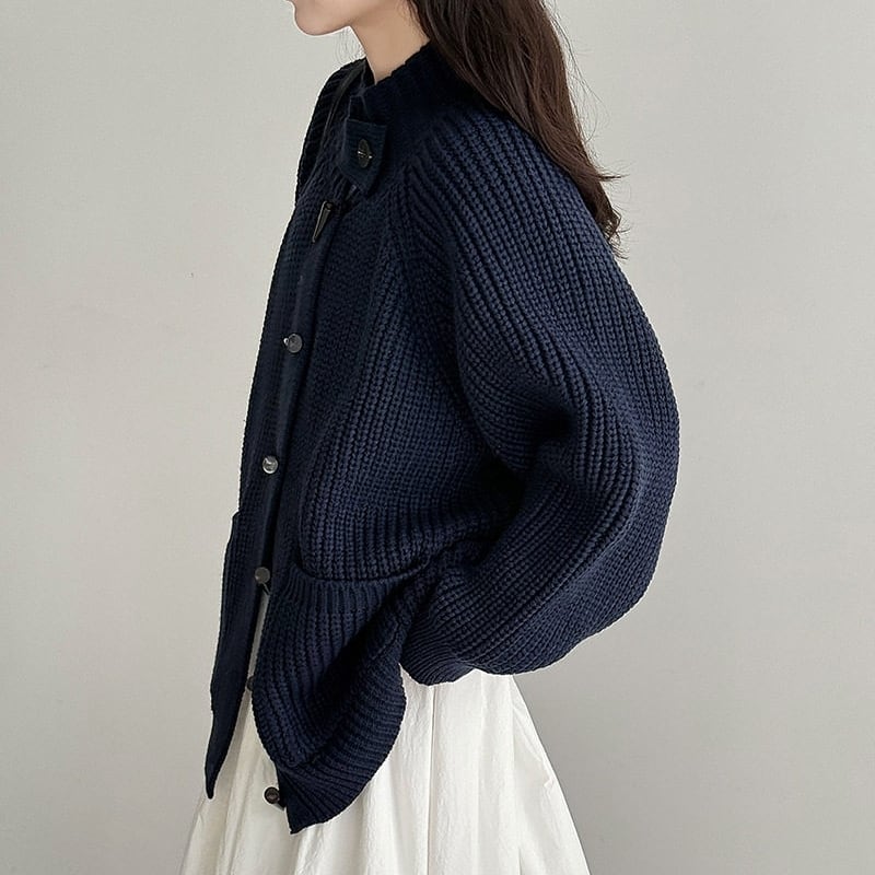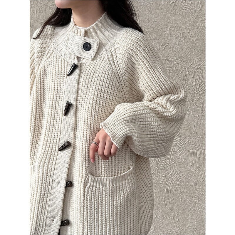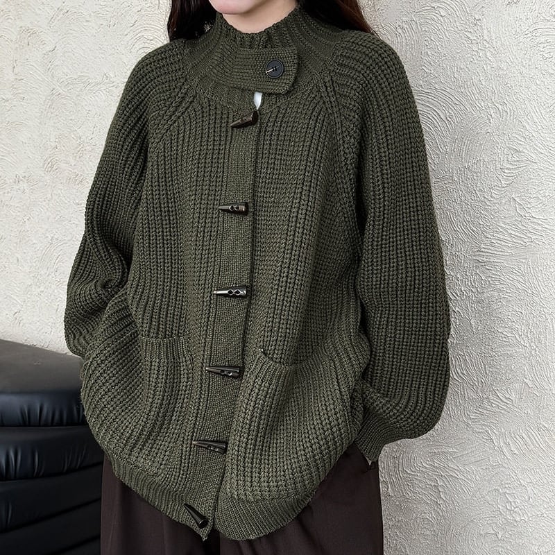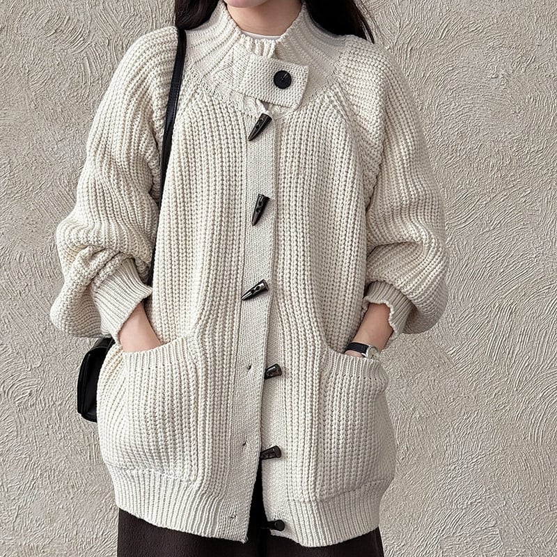 フロントのトグルボタンがアクセントになったニットカーディガンです。