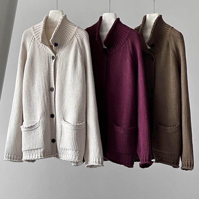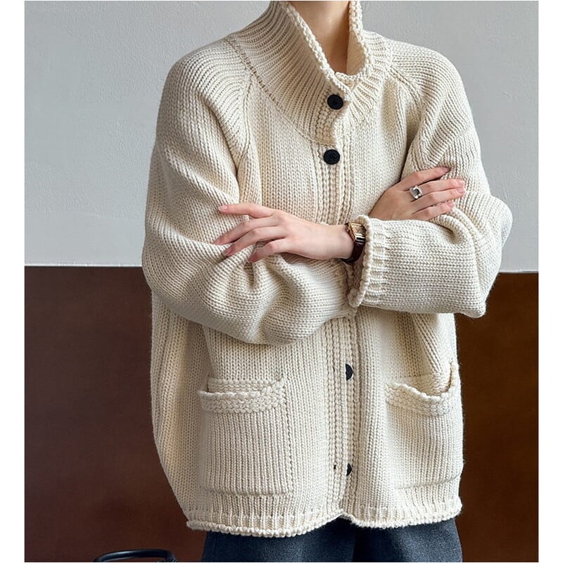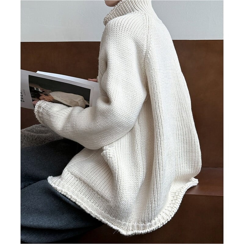 ざっくりした編み目がこなれた雰囲気を演出し存在感のある一枚。