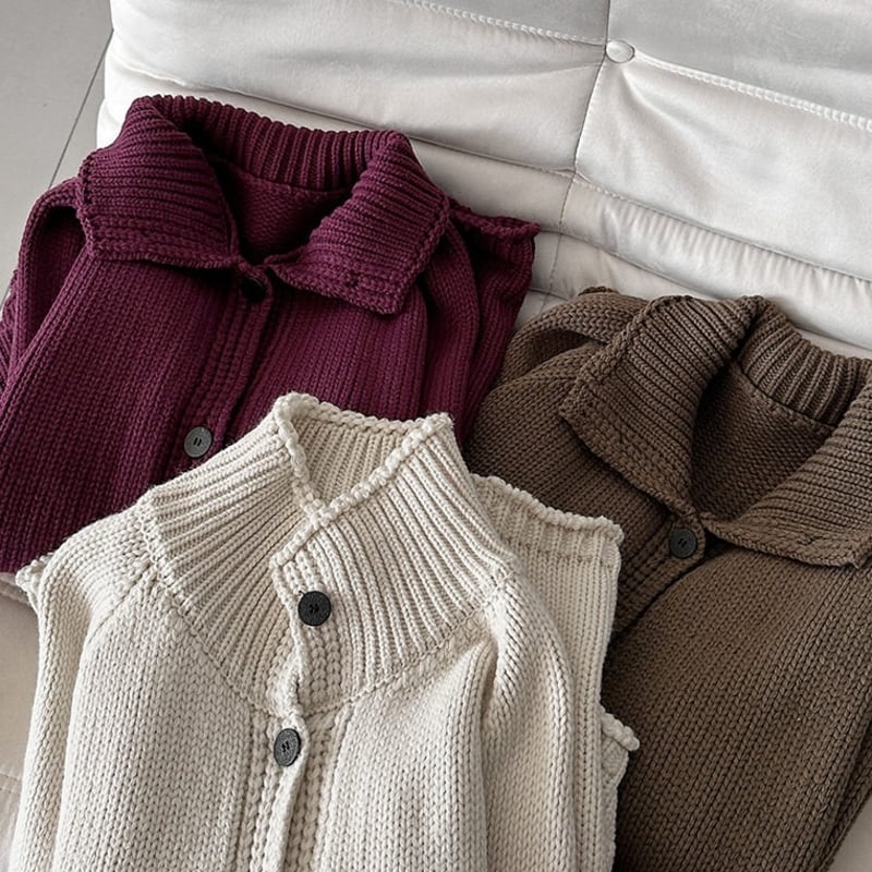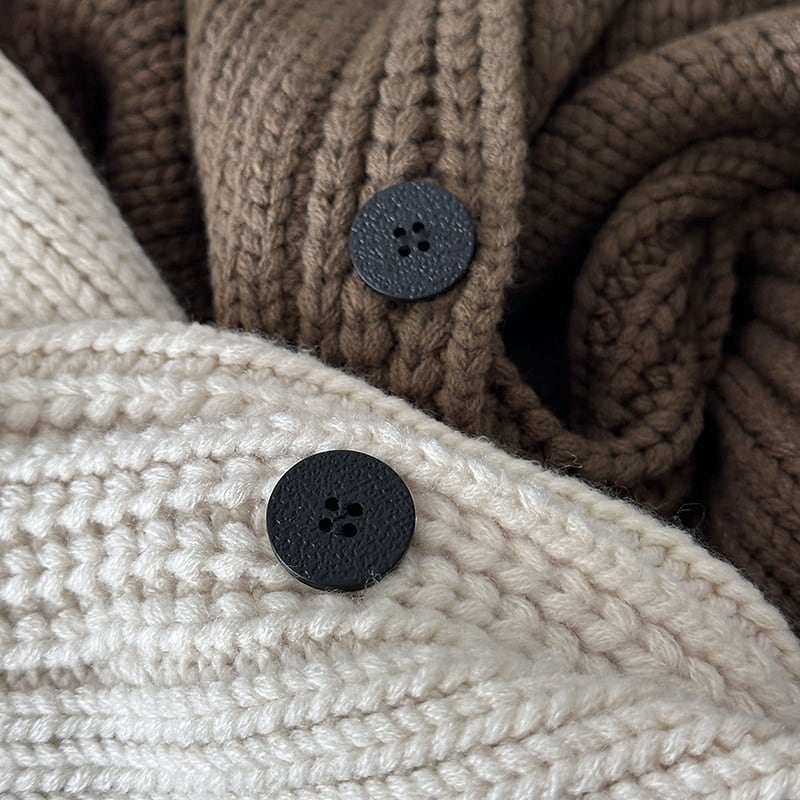 ボタンがアクセントになった、普段使いしやすいニットカーディガンです。