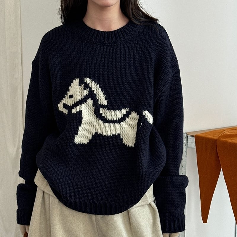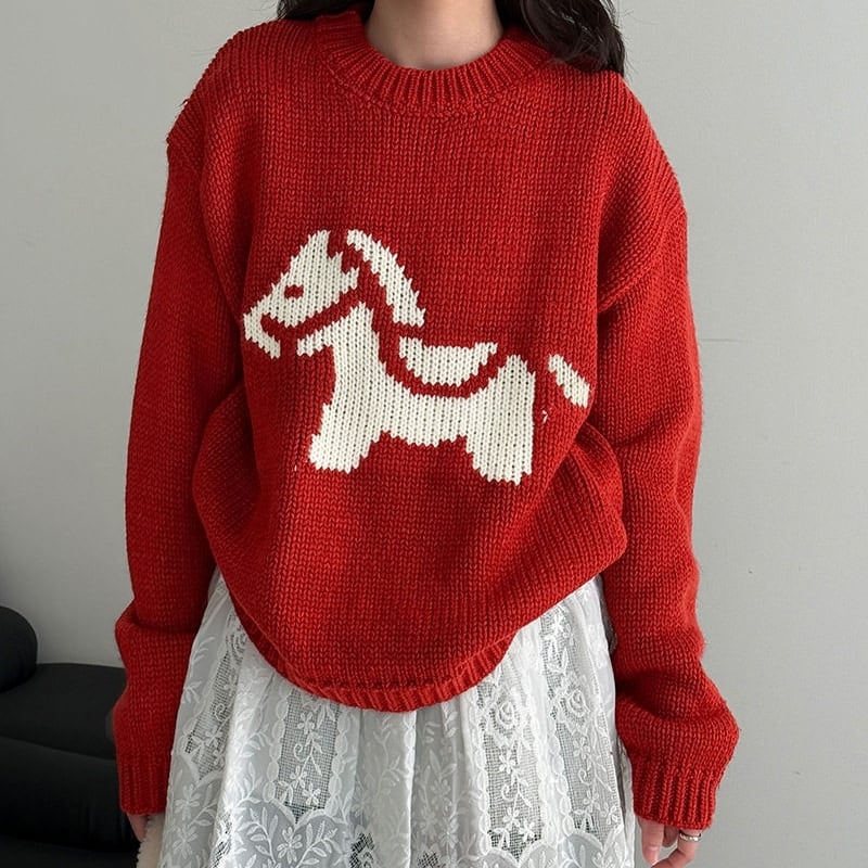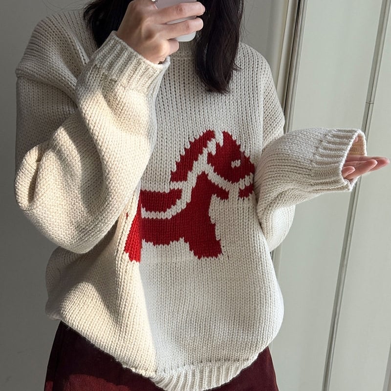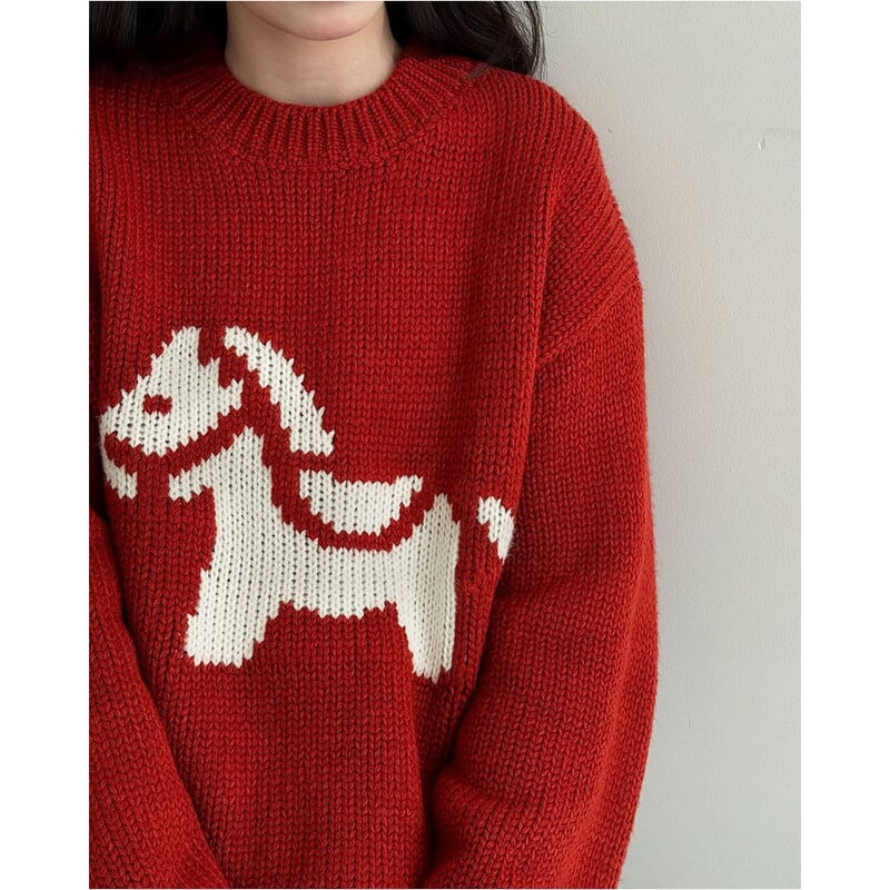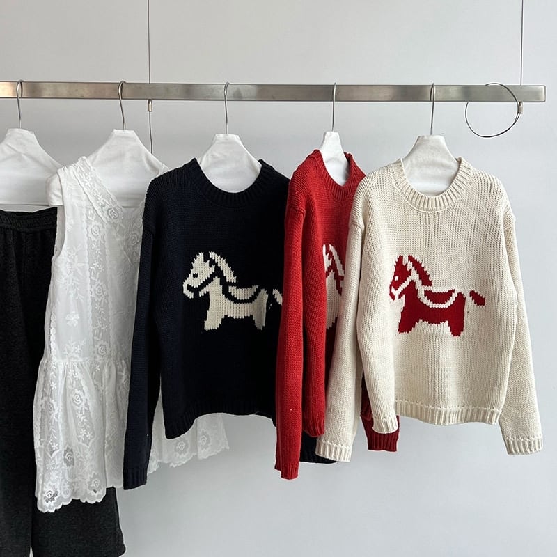 ホースパターンが目を惹く、着回し力抜群のニットトップスです。