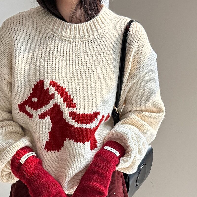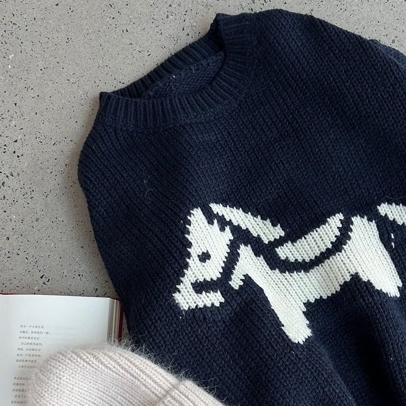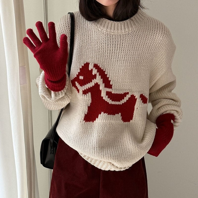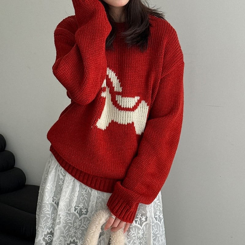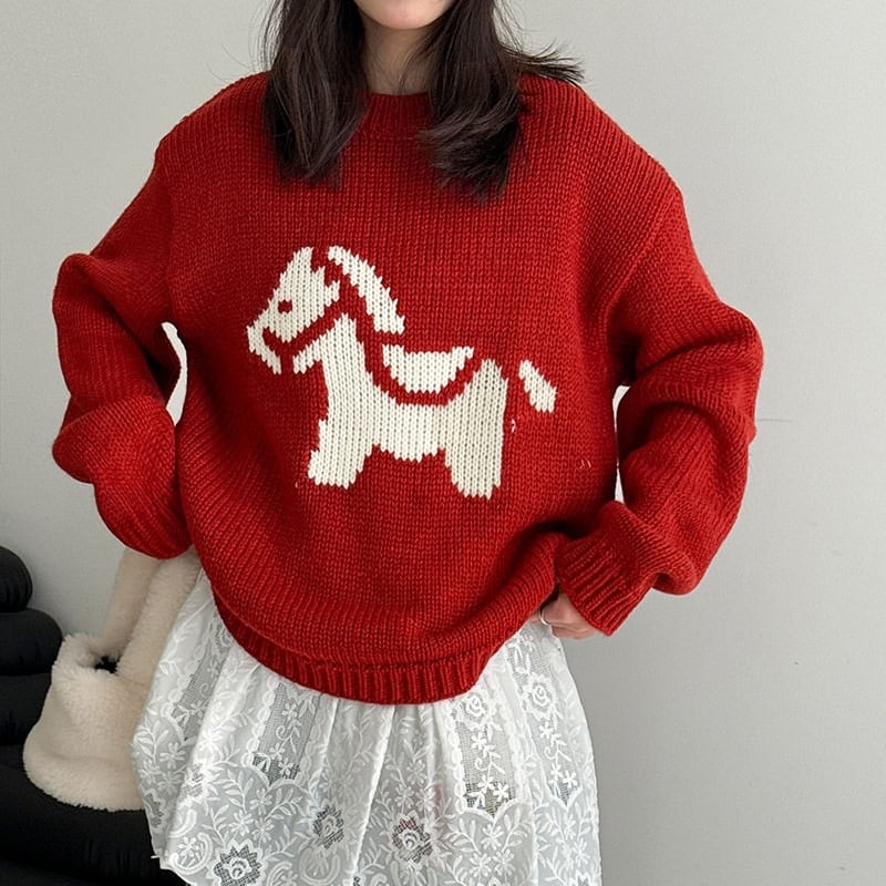 ホースパターンが目を惹く、着回し力抜群のニットトップスです。