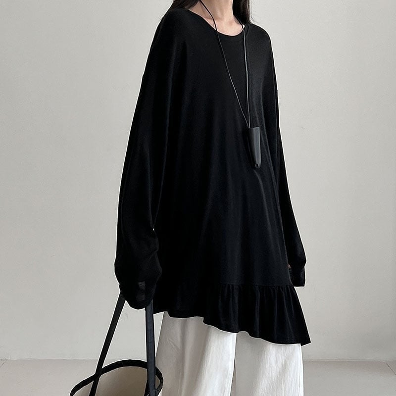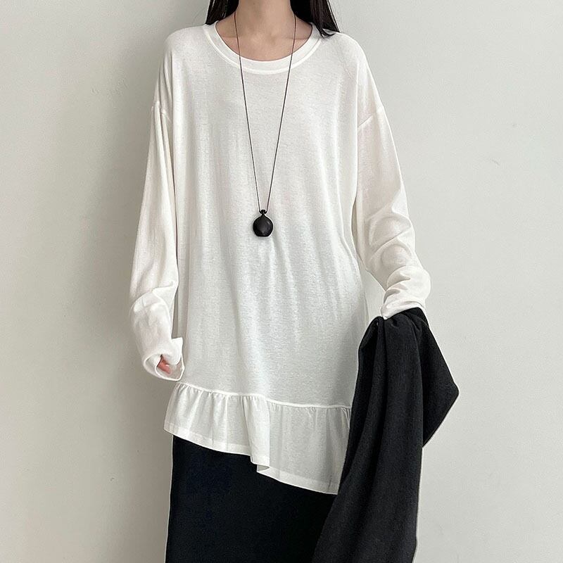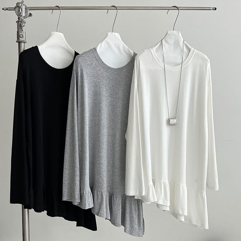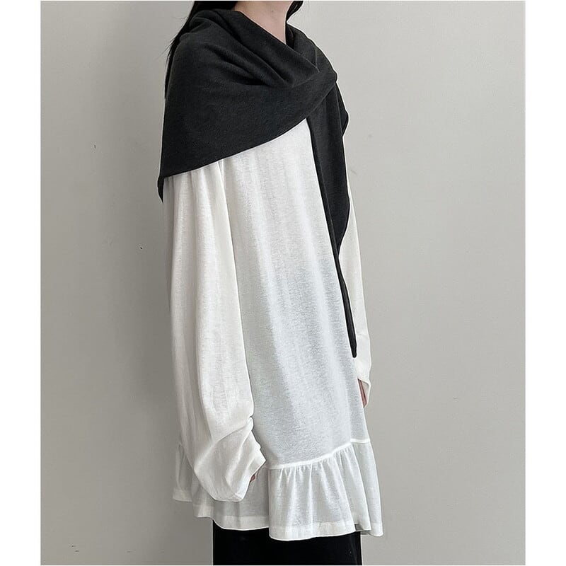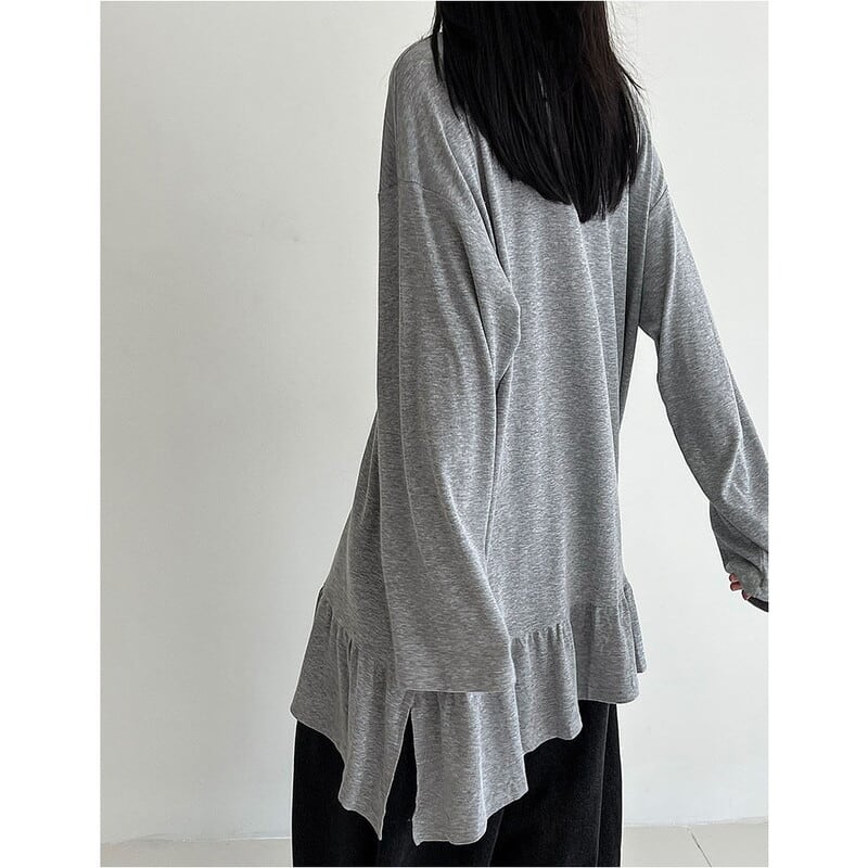 スリット入りのフリルがさりげない抜け感を演出するトップスです。
