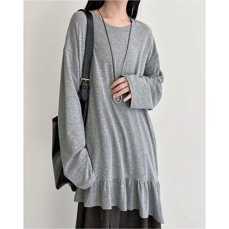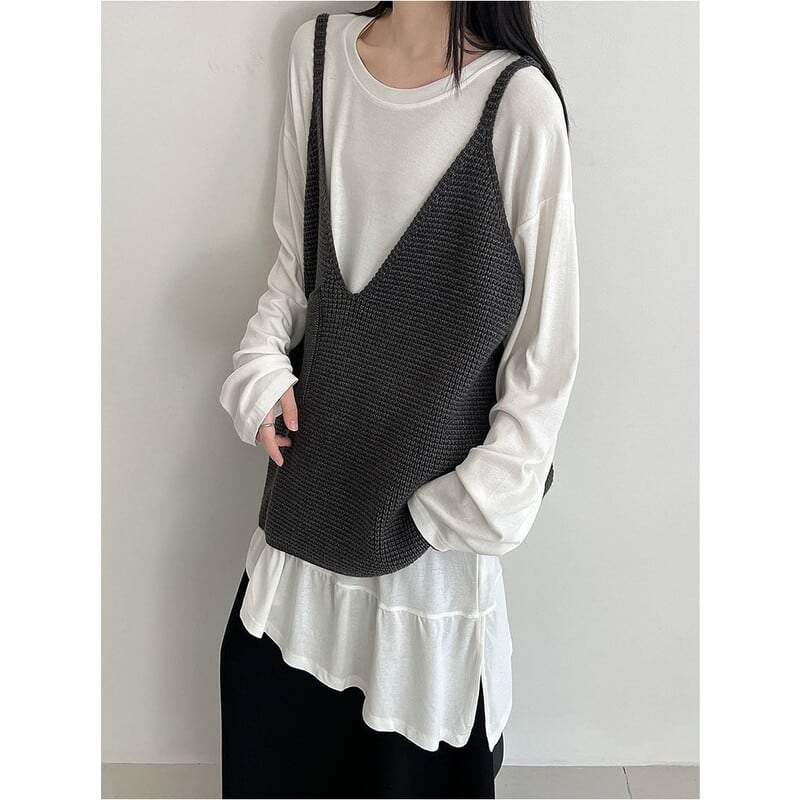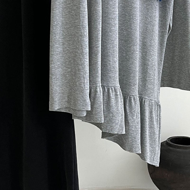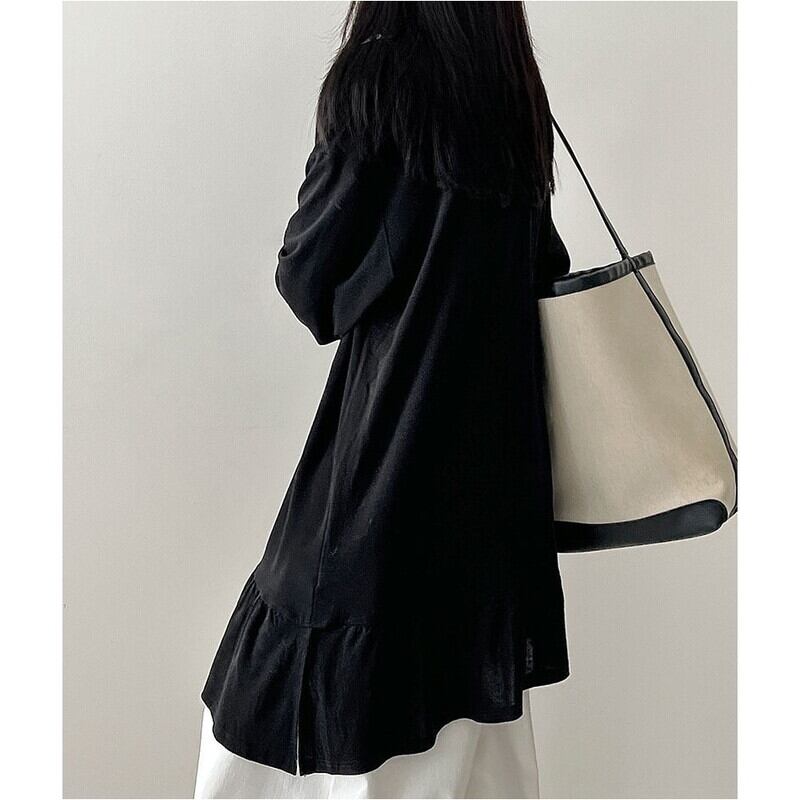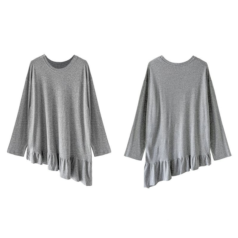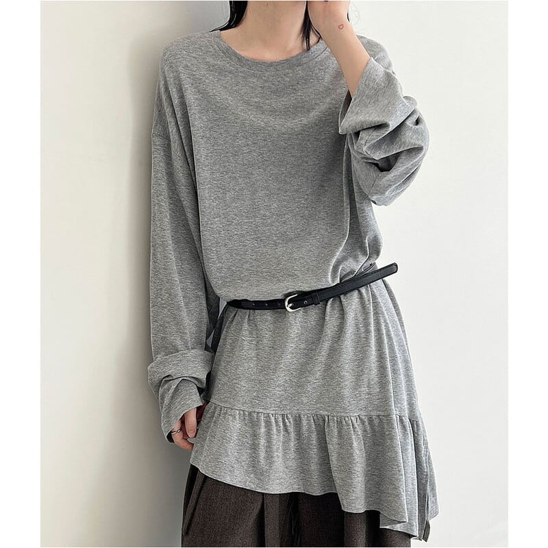 スリット入りのフリルがさりげない抜け感を演出するトップスです。