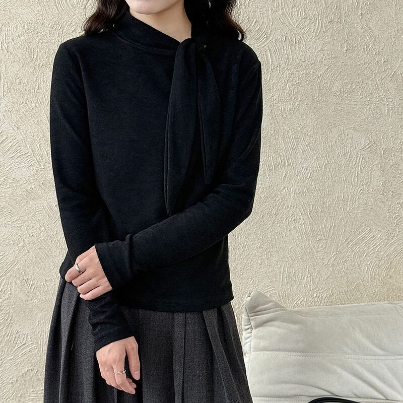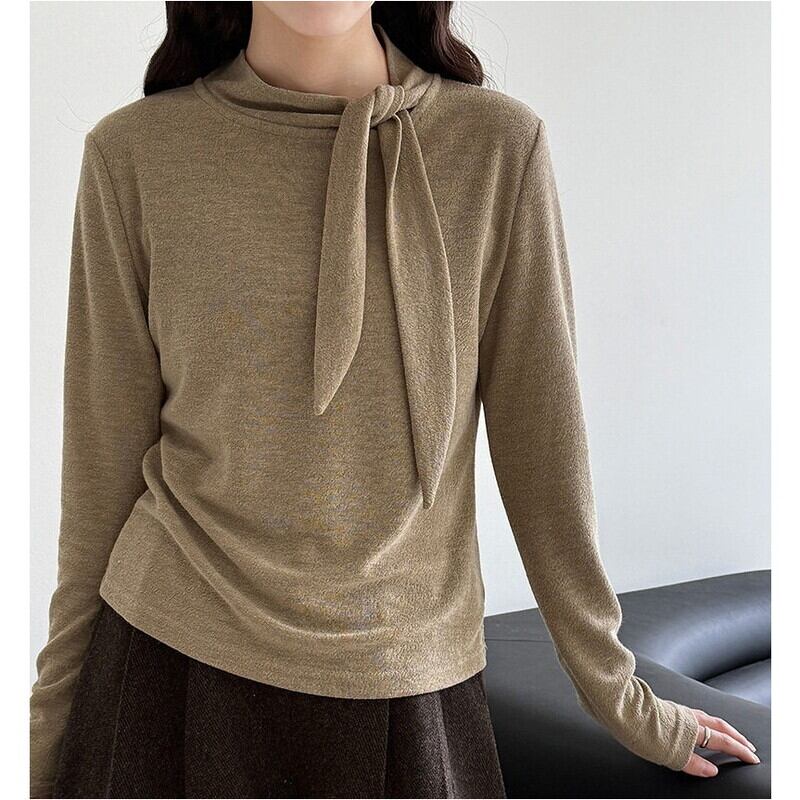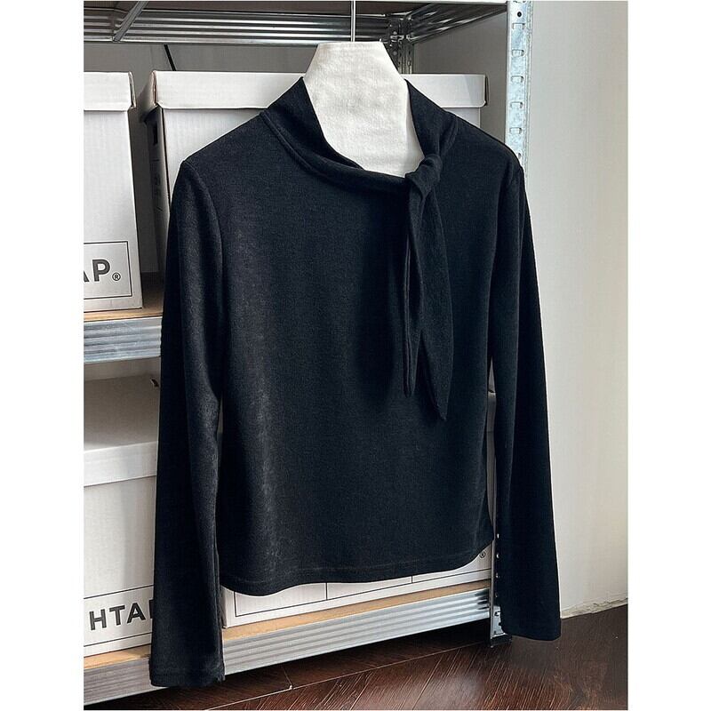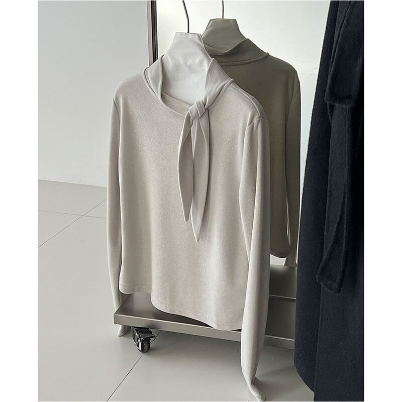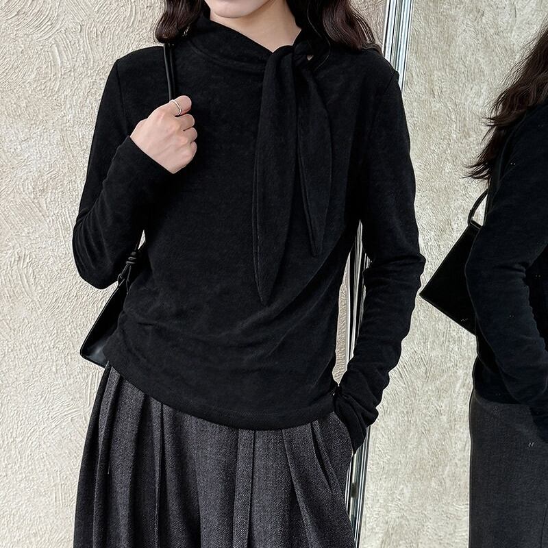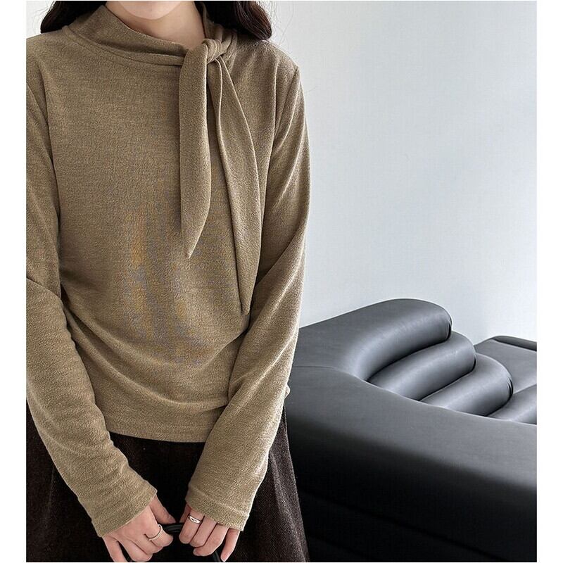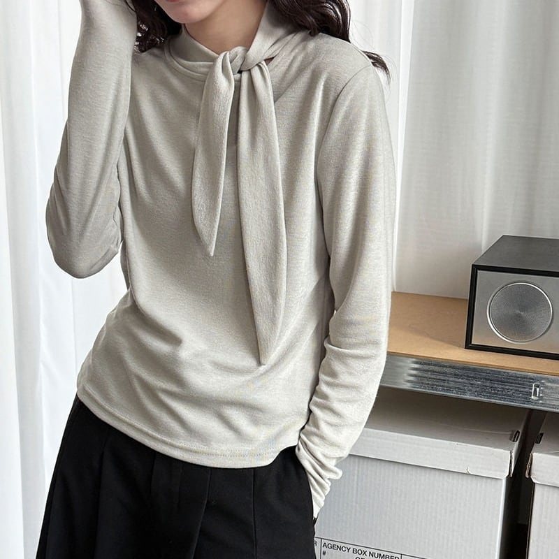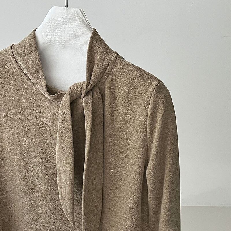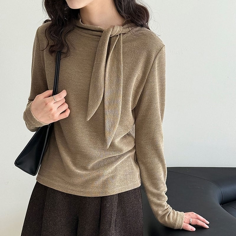 首元のリボンがアクセントになる長袖トップスです。