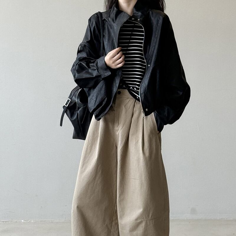 カジュアルなパンツスタイルから、ワンピースなどのフェミニンなアイテムまで、幅広いコーディネートに合わせやすい一着です。