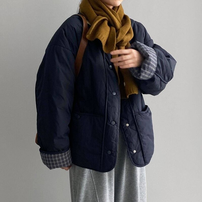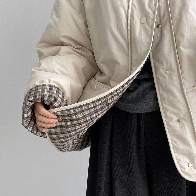 袖口のチェック柄がさりげないアクセントになり、おしゃれ度をアップ。