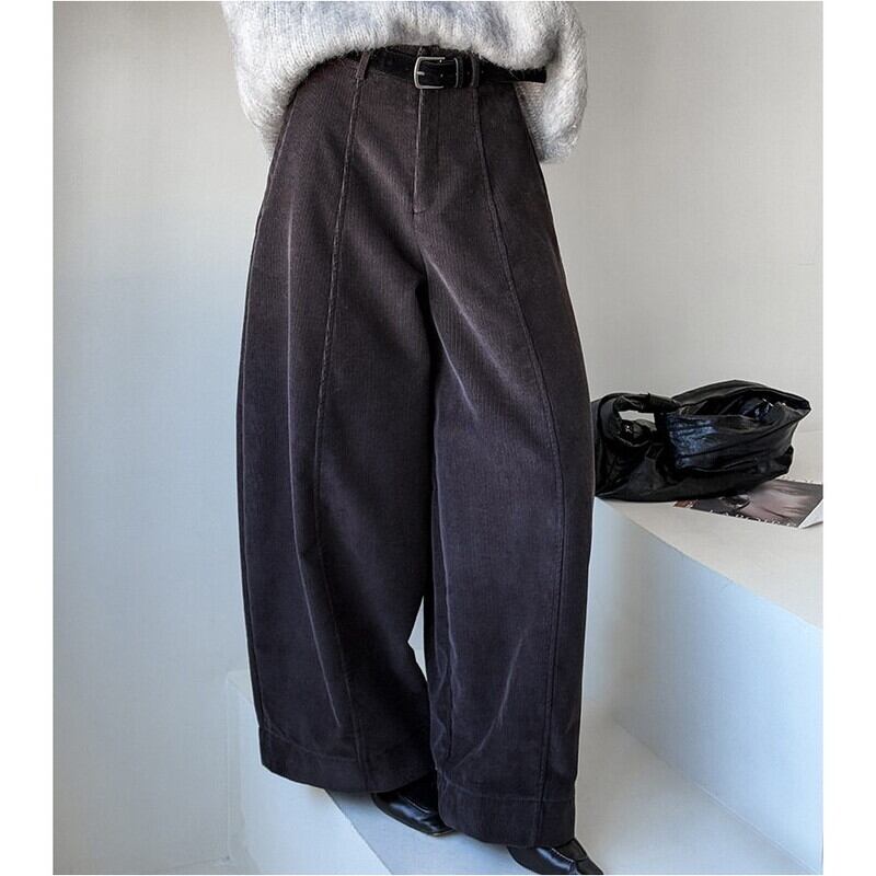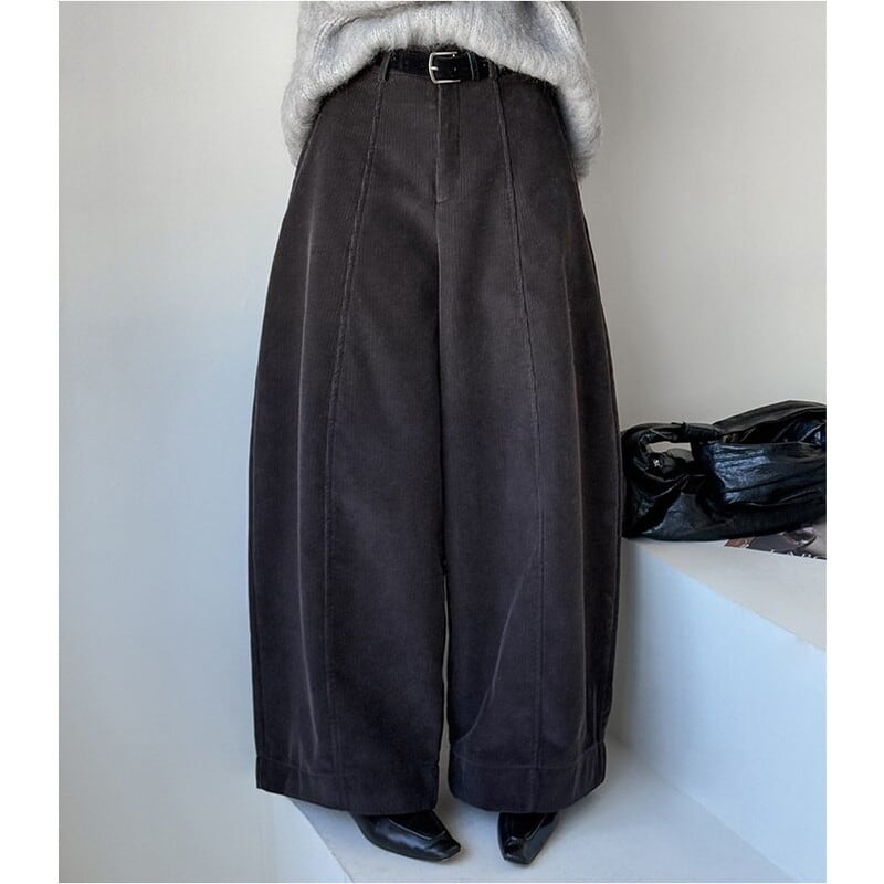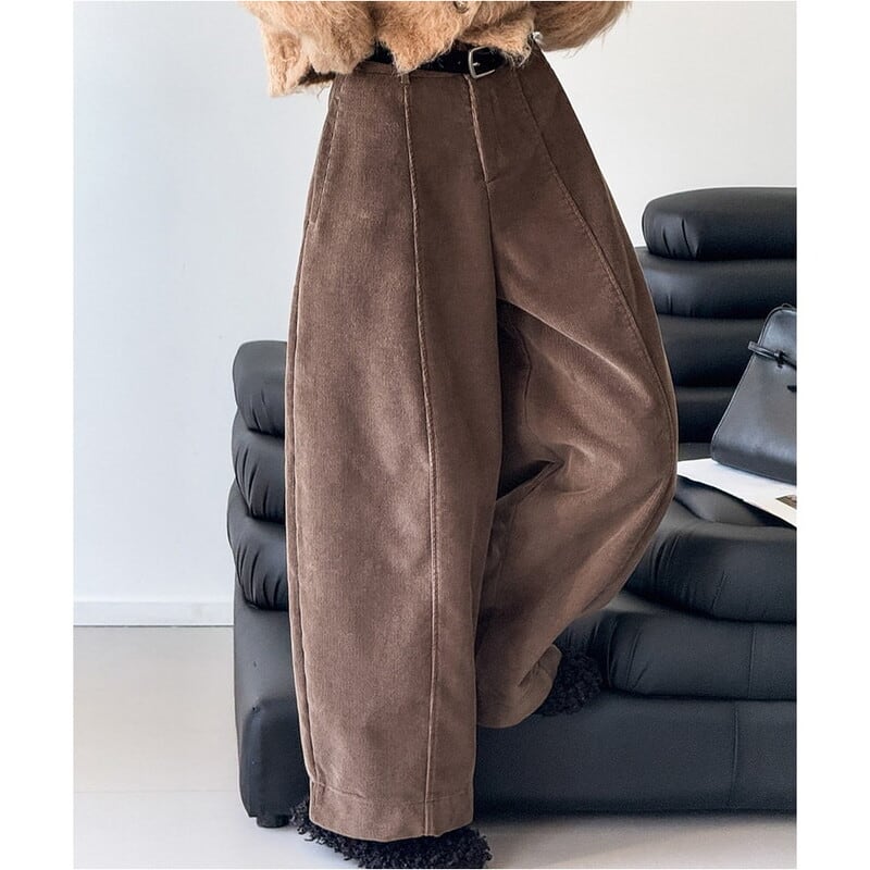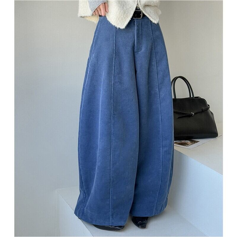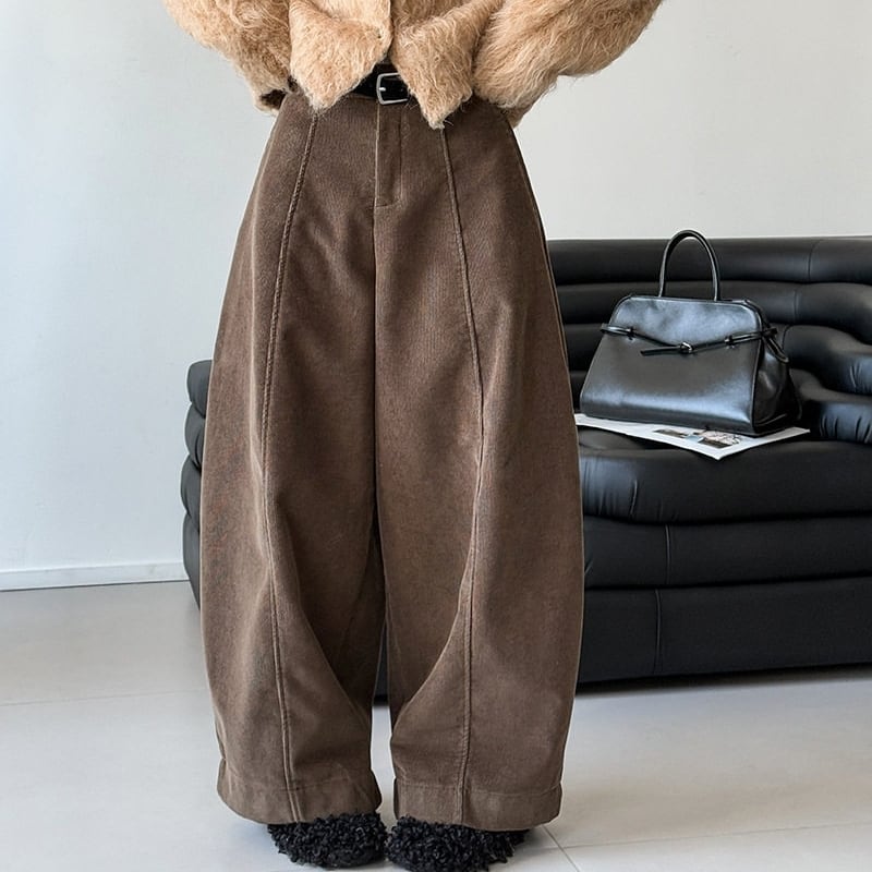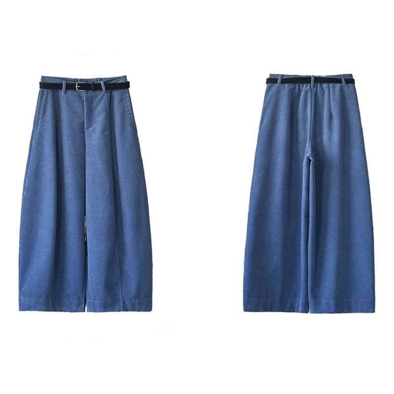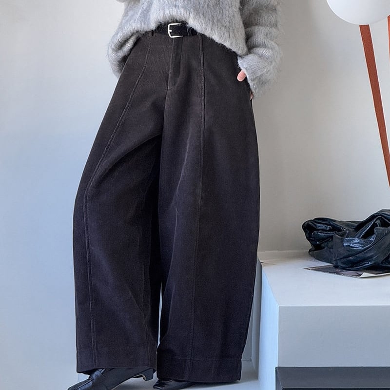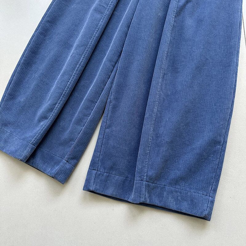 さり気ないセンターラインがアクセントになった、フルレングスのワイドパンツです。