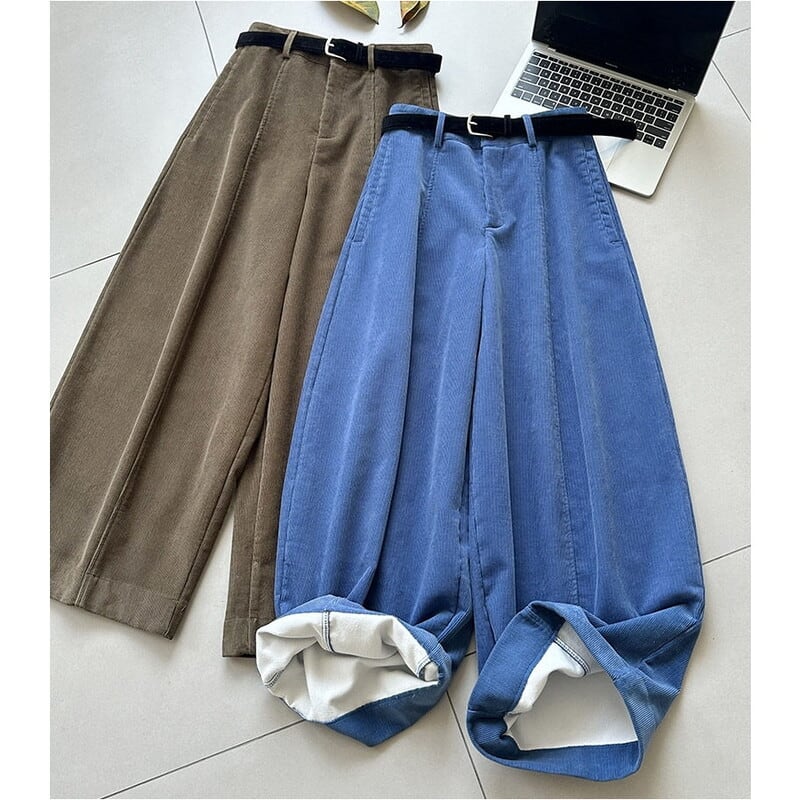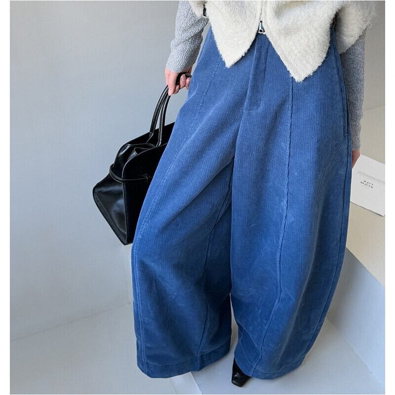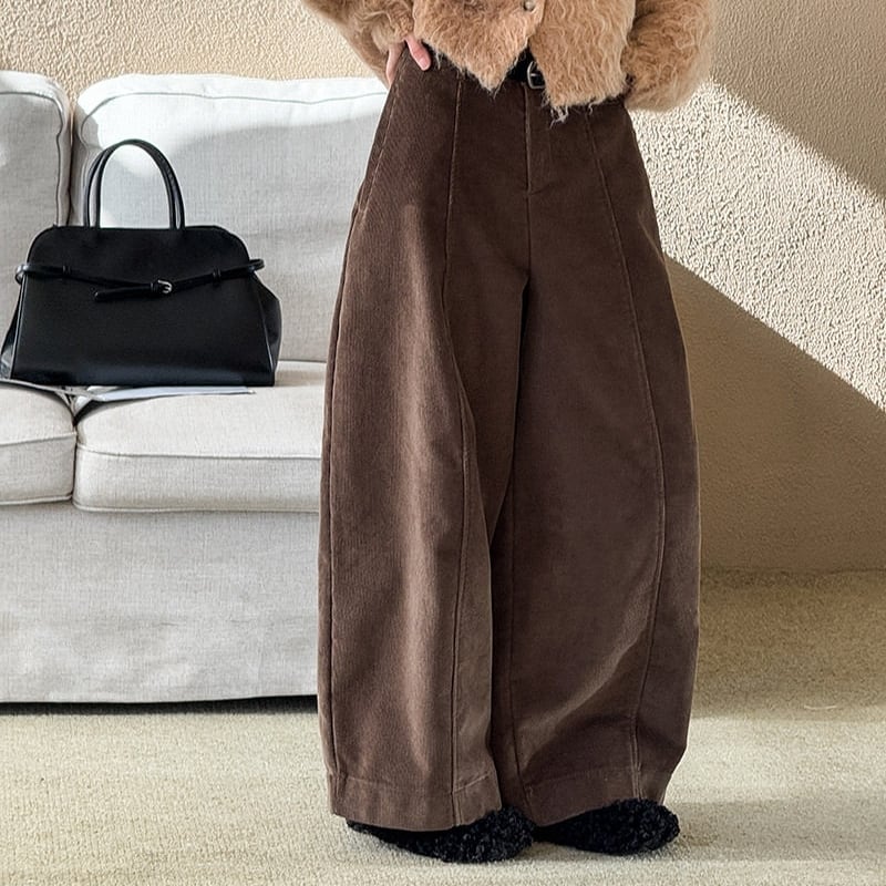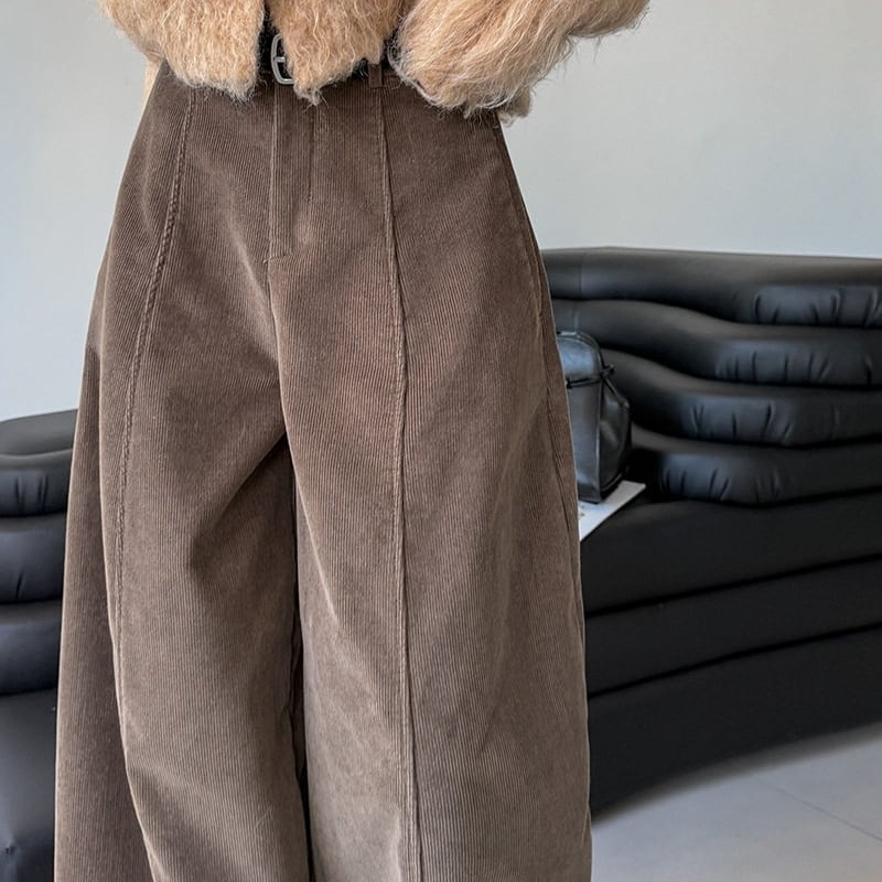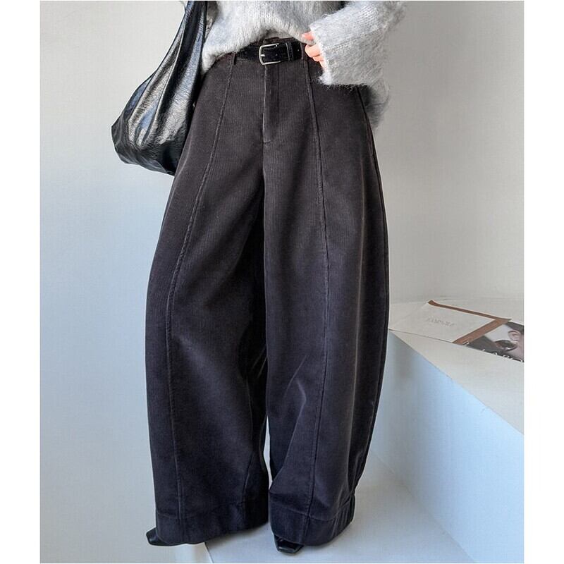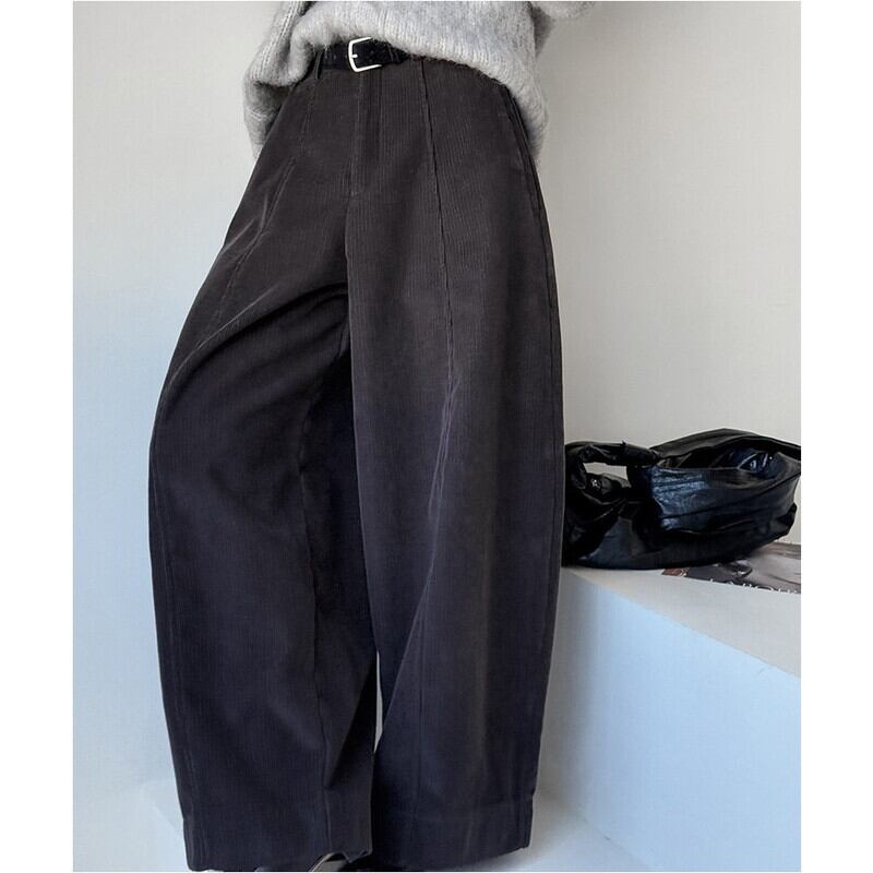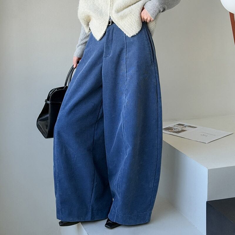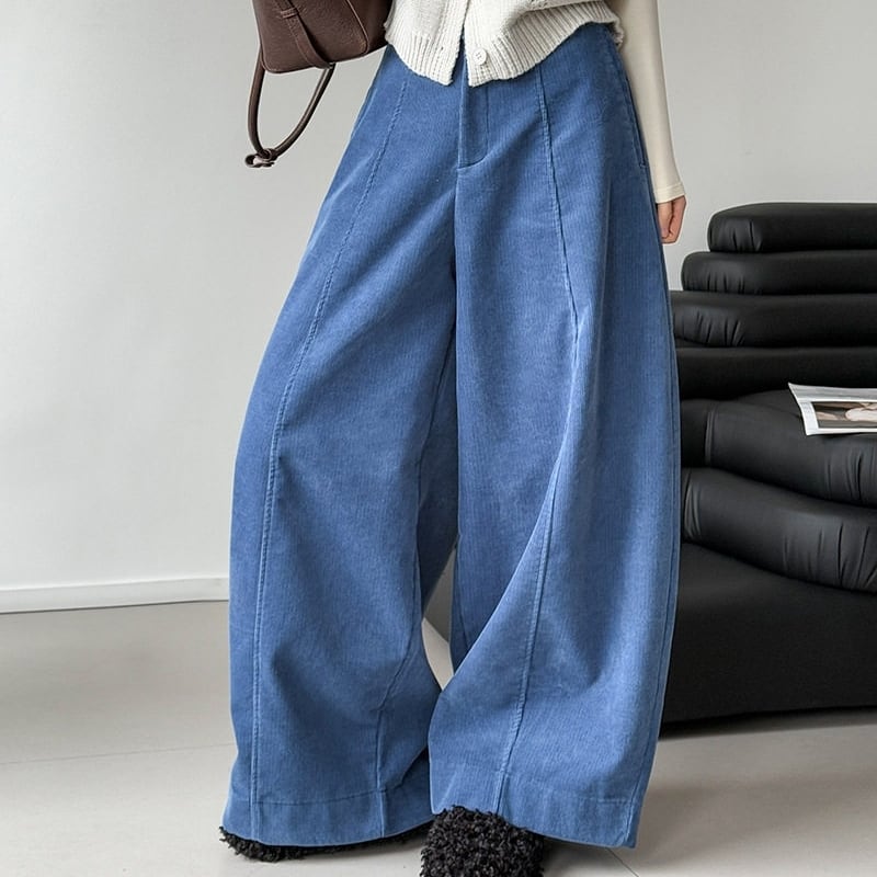 さり気ないセンターラインがアクセントになった、フルレングスのワイドパンツです。