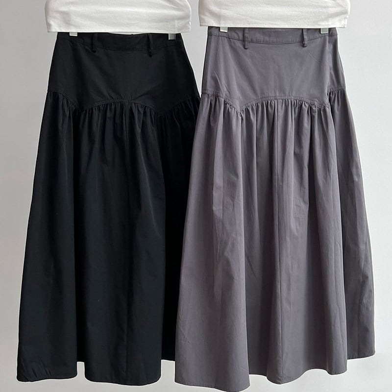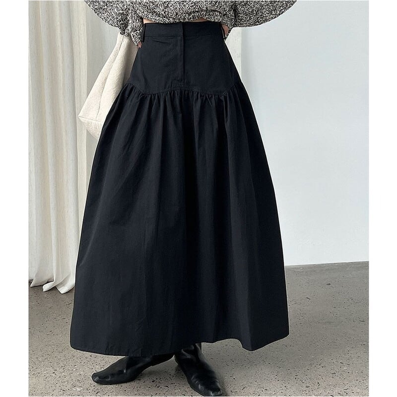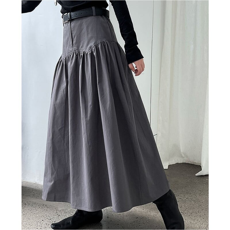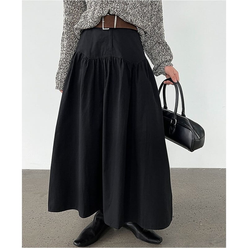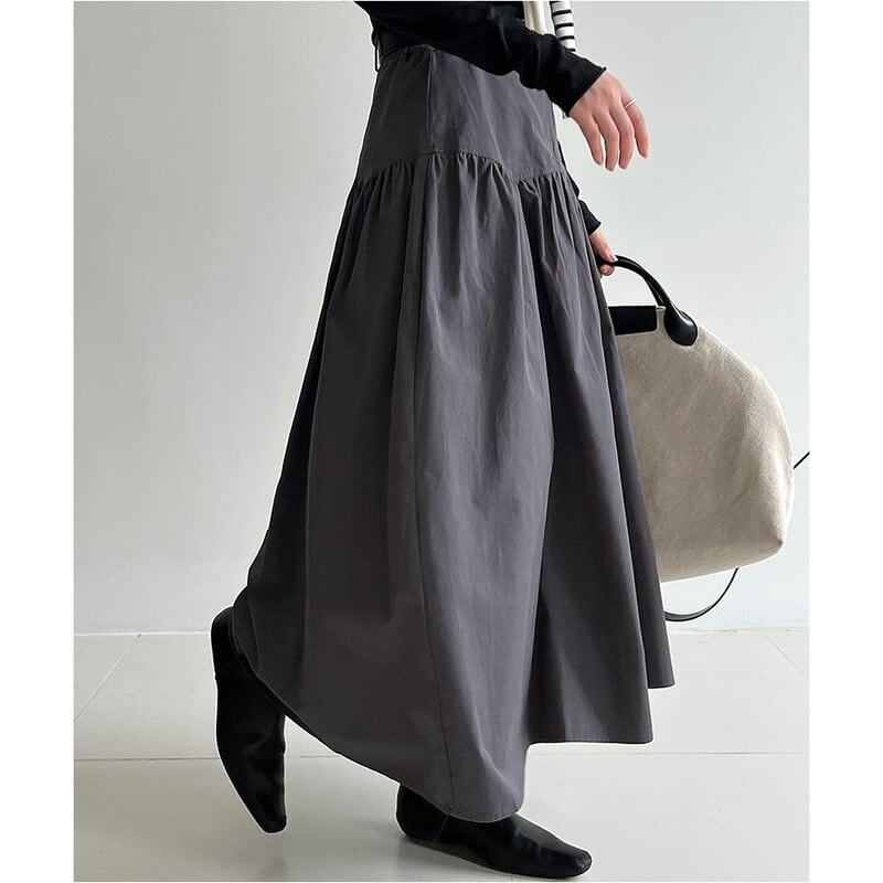 ふんわりと広がるフレアシルエットが、女性らしさを引き立てるロングスカートです。