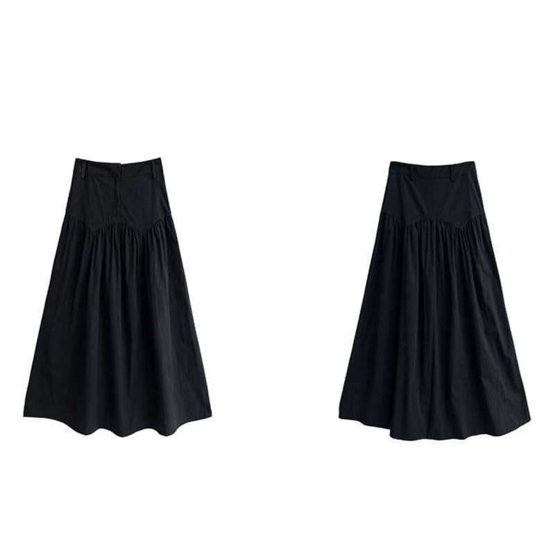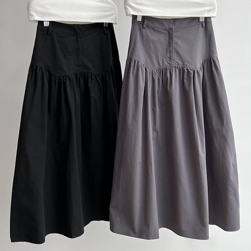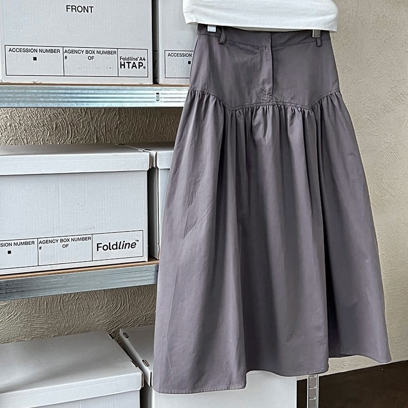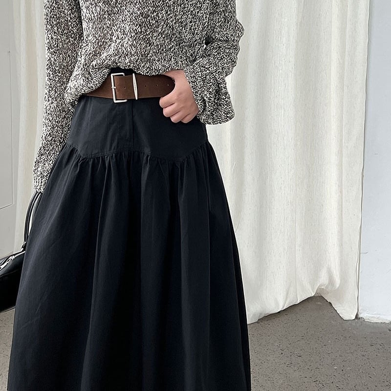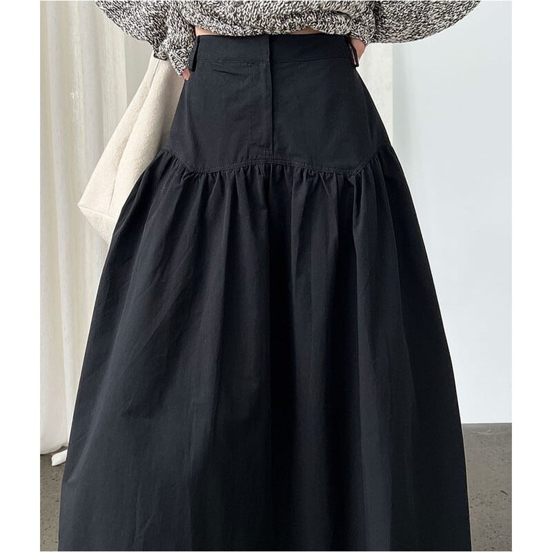 ふんわりと広がるフレアシルエットが、女性らしさを引き立てるロングスカートです。