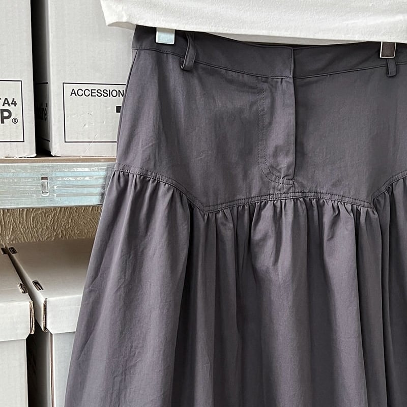 ヒップまわりにギャザーが施されたデザインで、程よいボリューム感が魅力的。