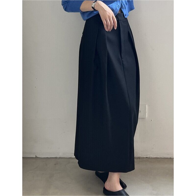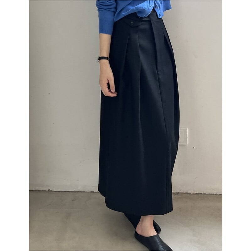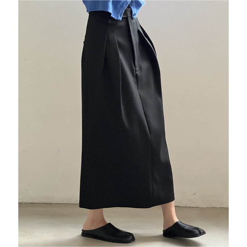 ツータックで広がりすぎないストレートシルエットが、上品で落ち着いた印象を与えます。