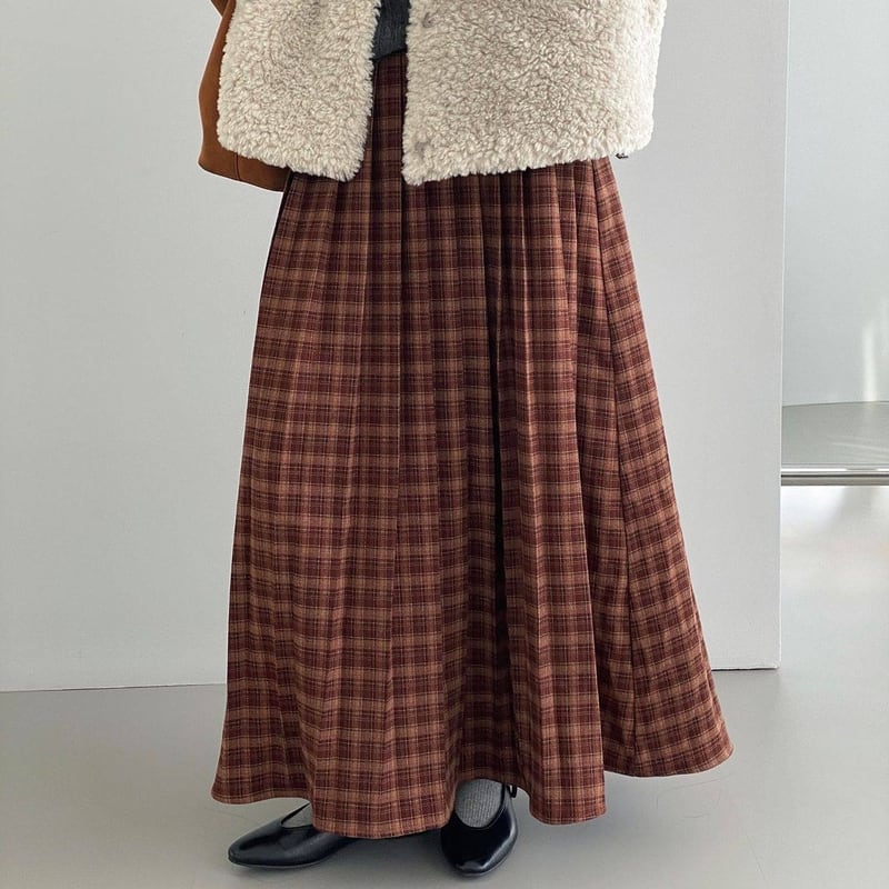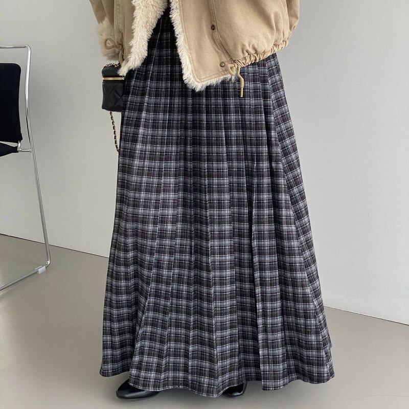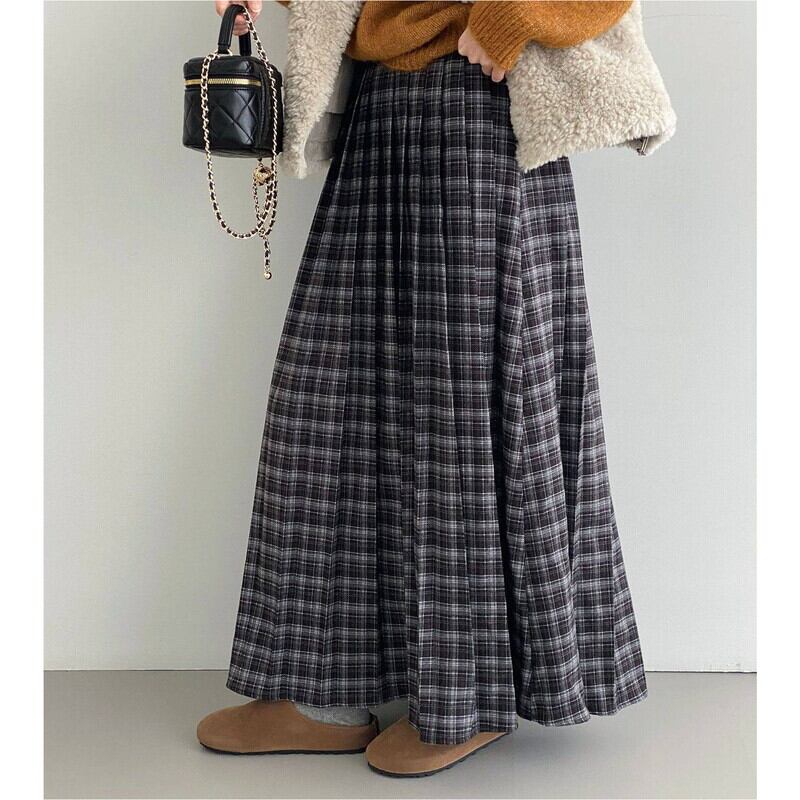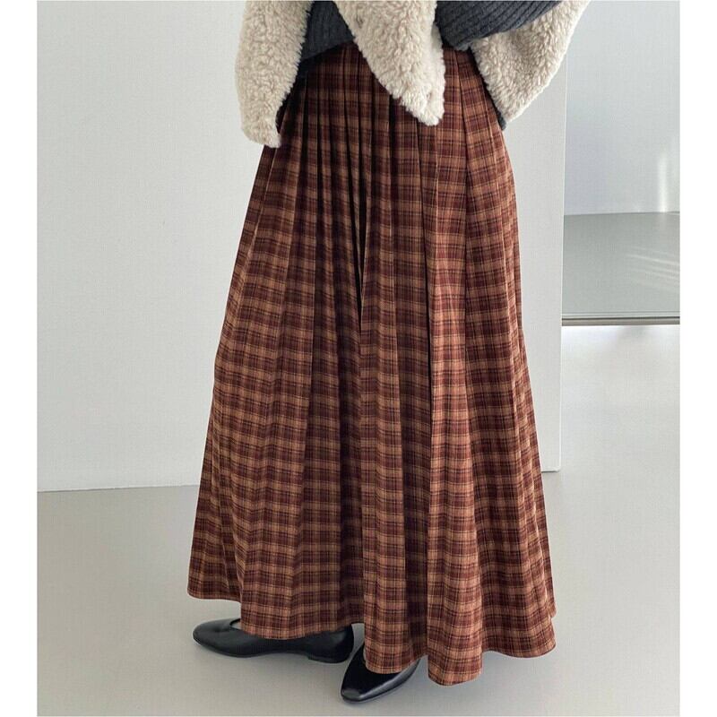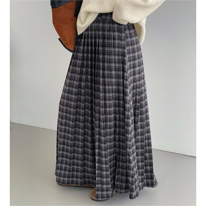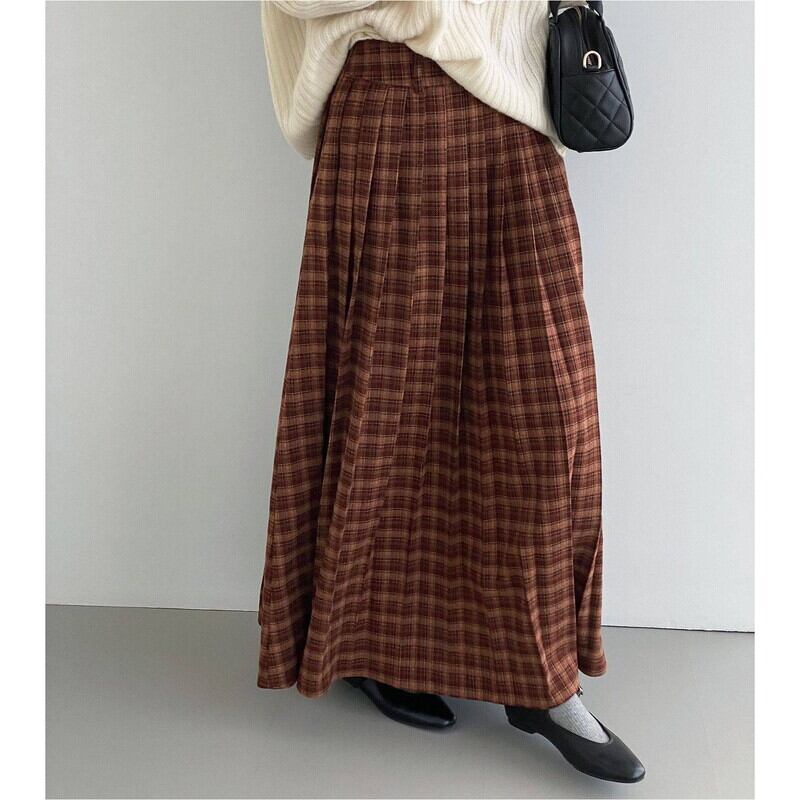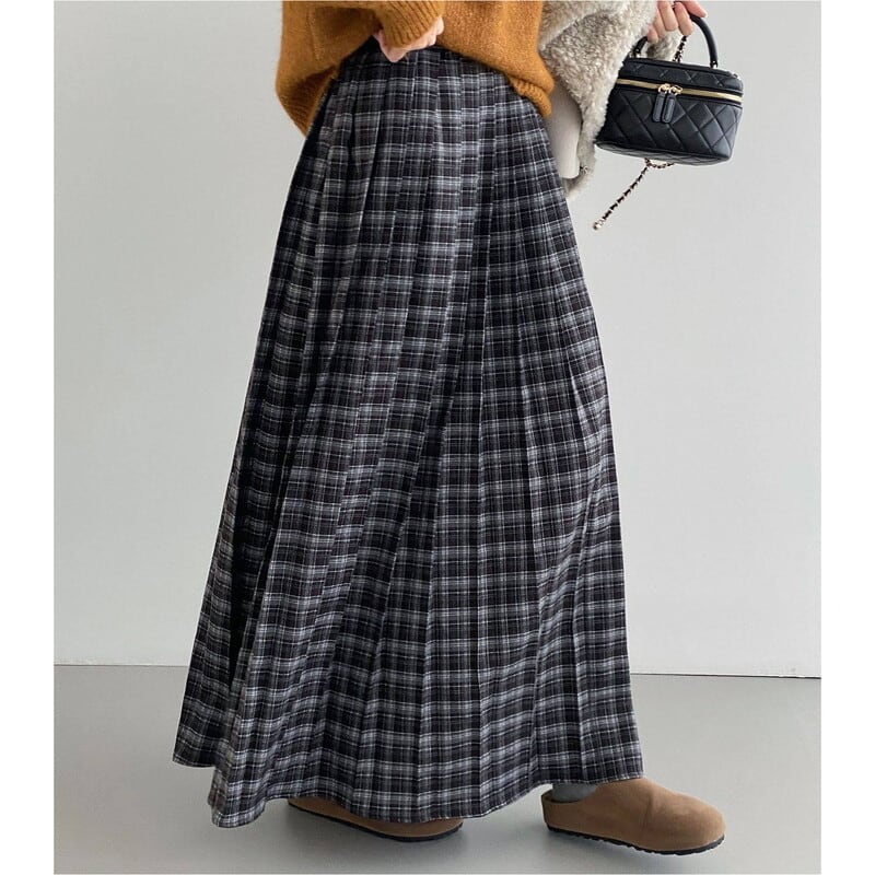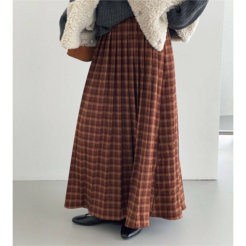 クラシカルな雰囲気漂う絶妙な配色のチェック柄のロングスカートです。