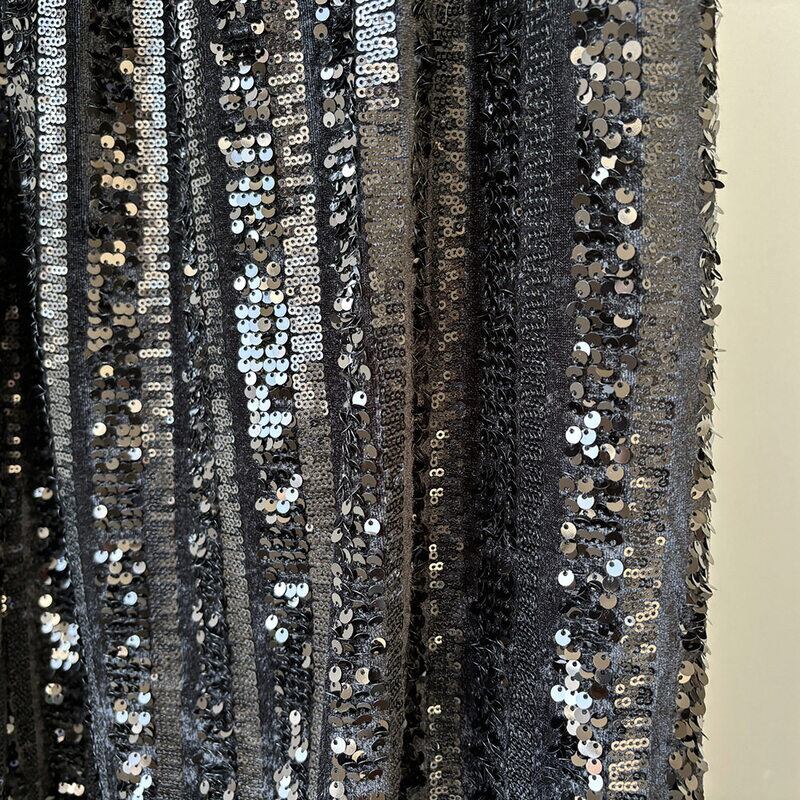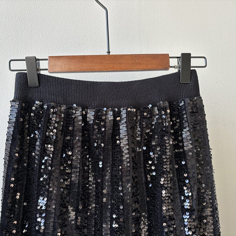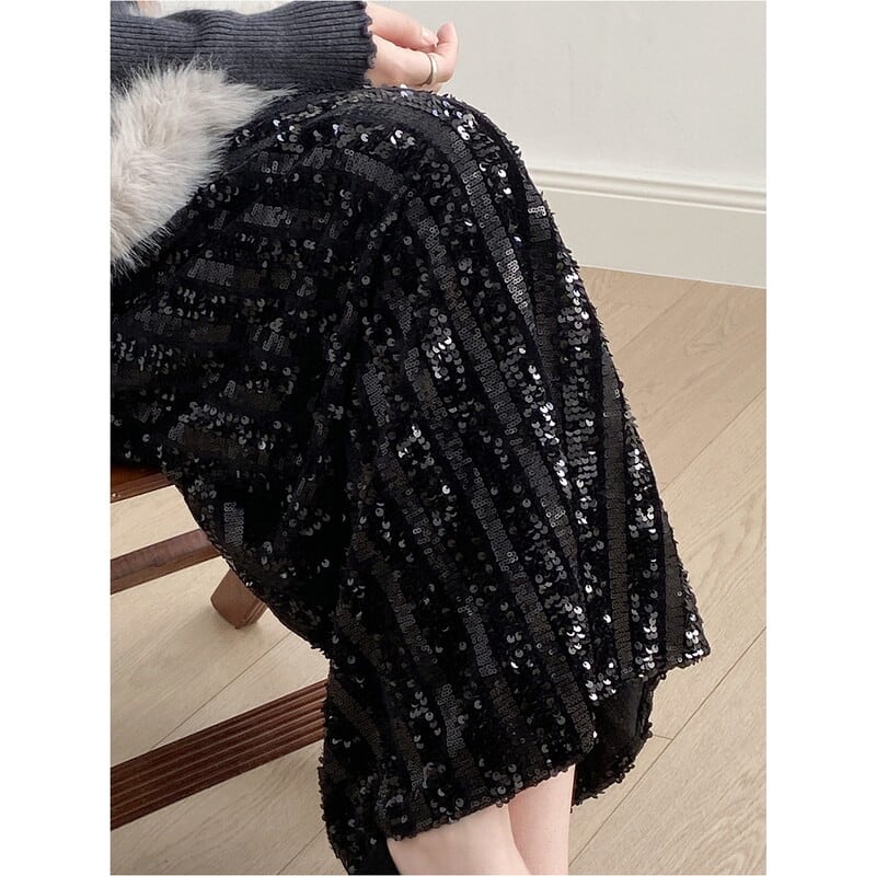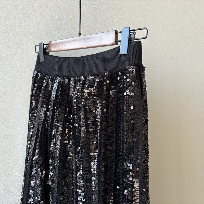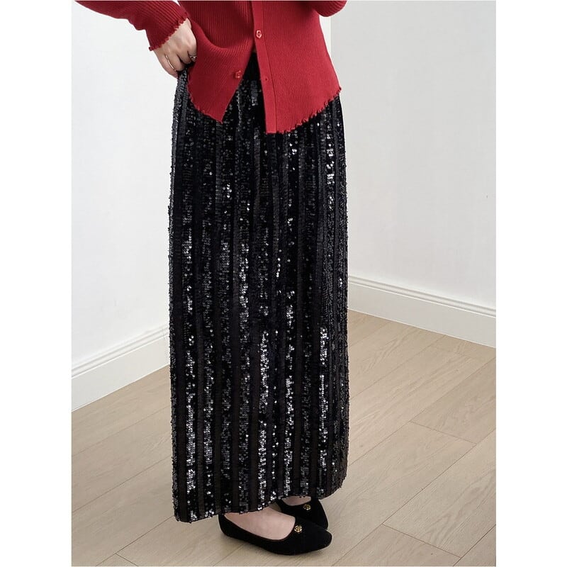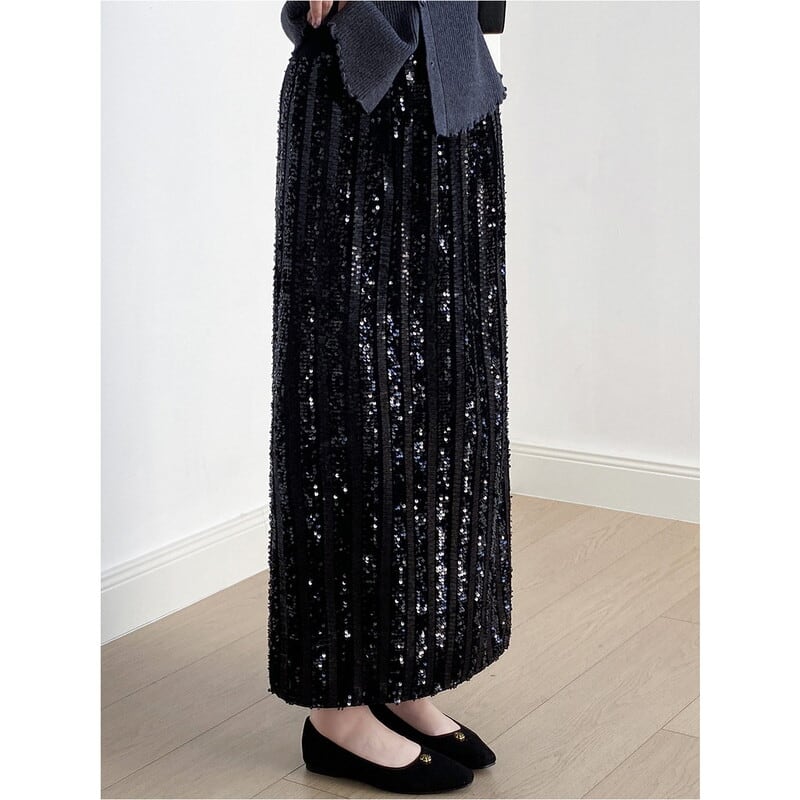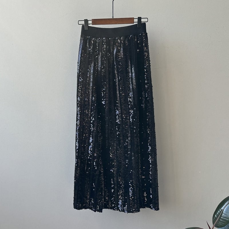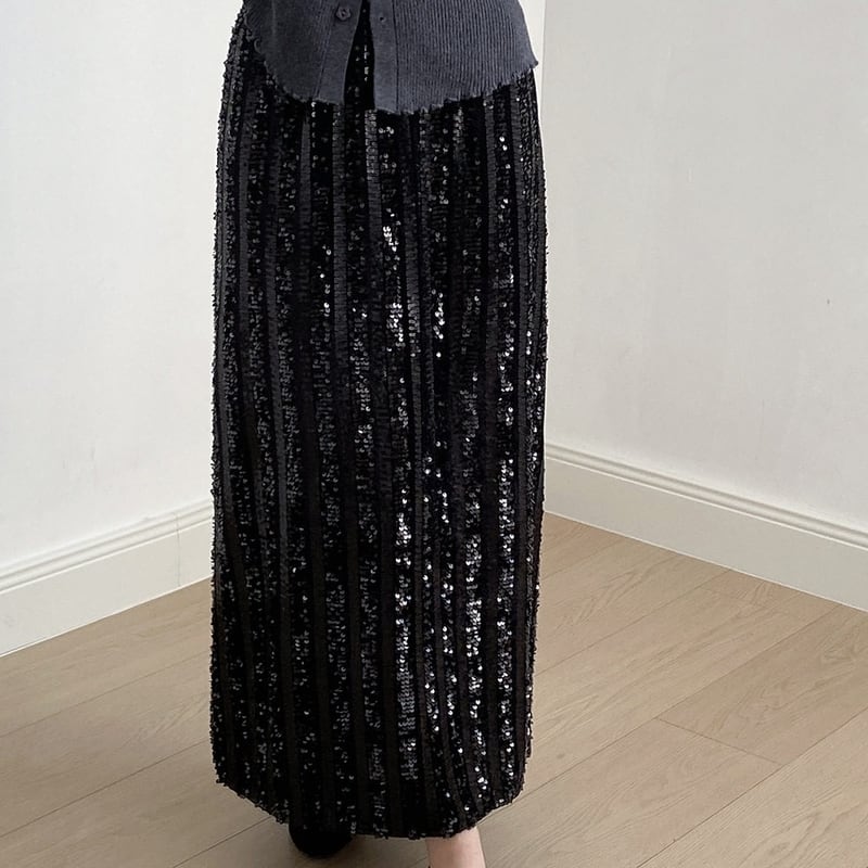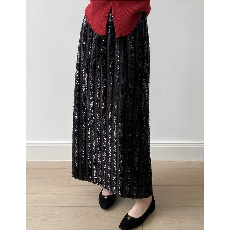 華やかなスパンコールが目を引くロング丈のペンシルスカートです。