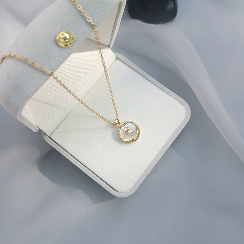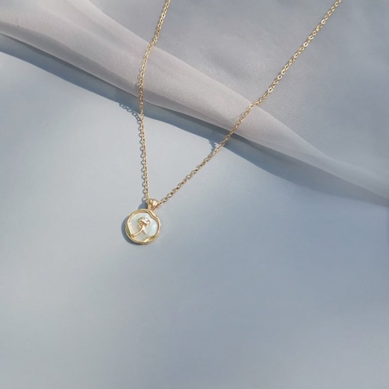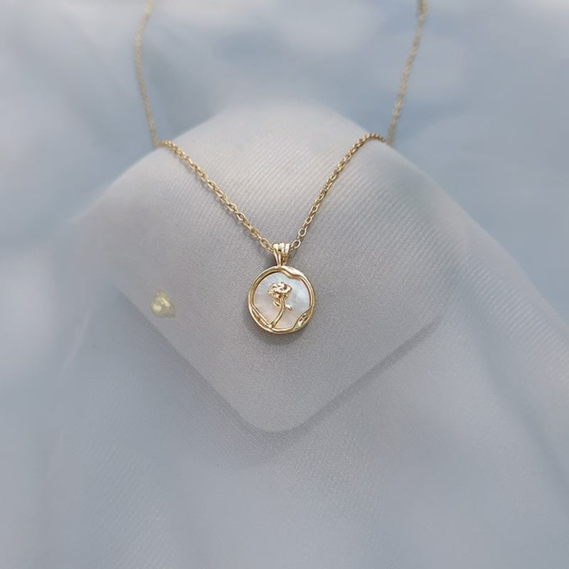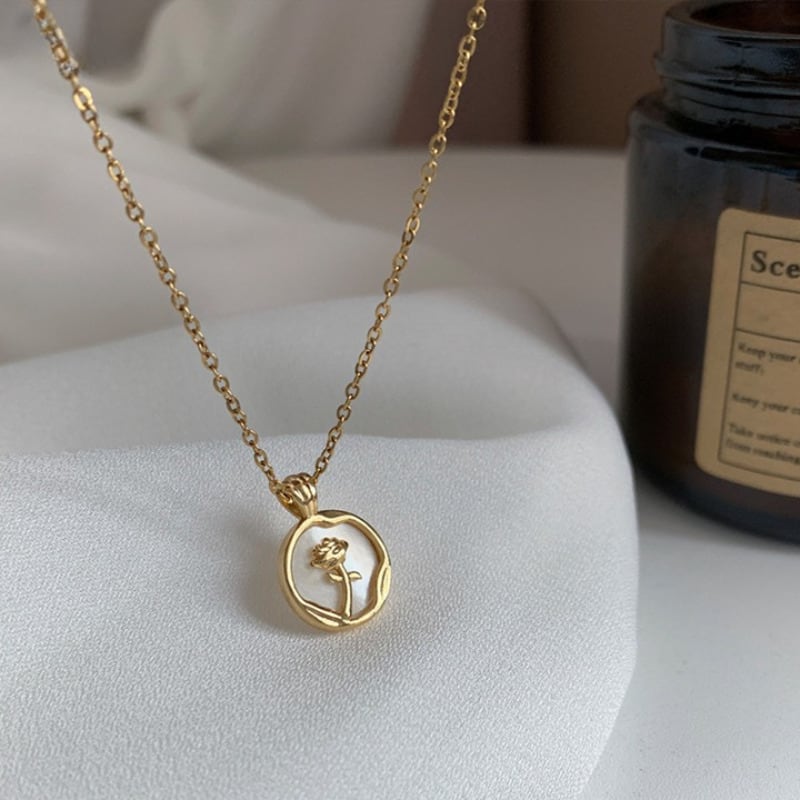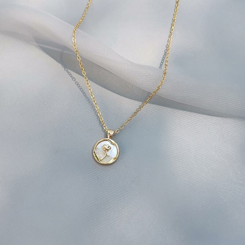 首元を上品に飾るフラワーモチーフのペンダントネックレスです。