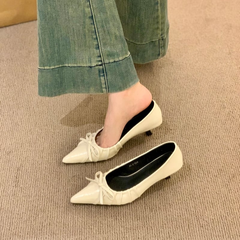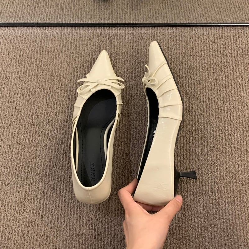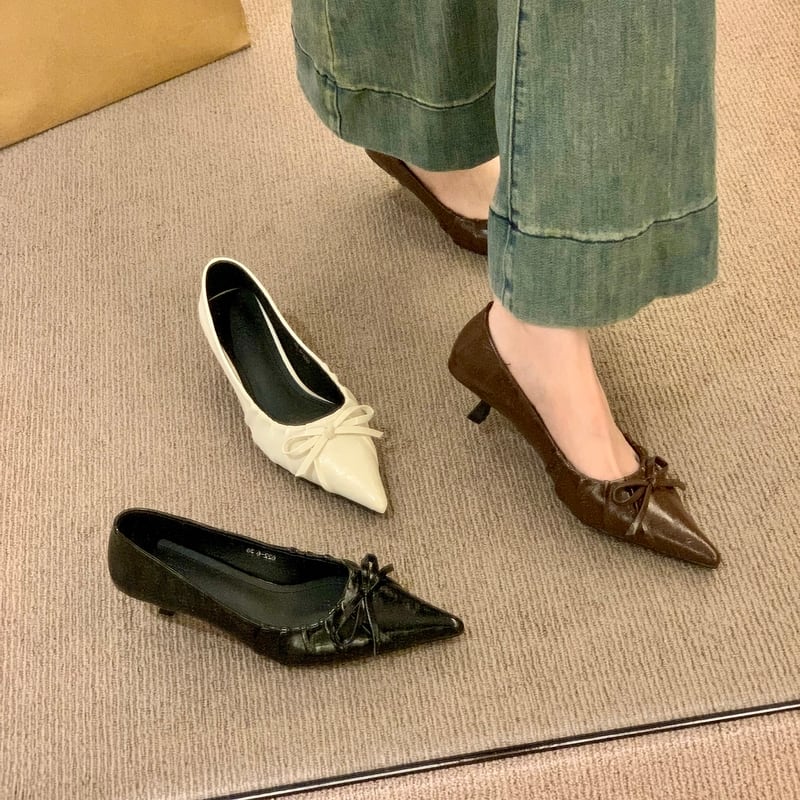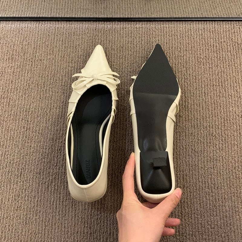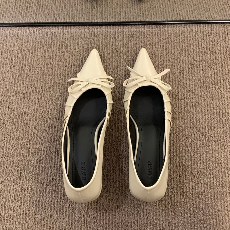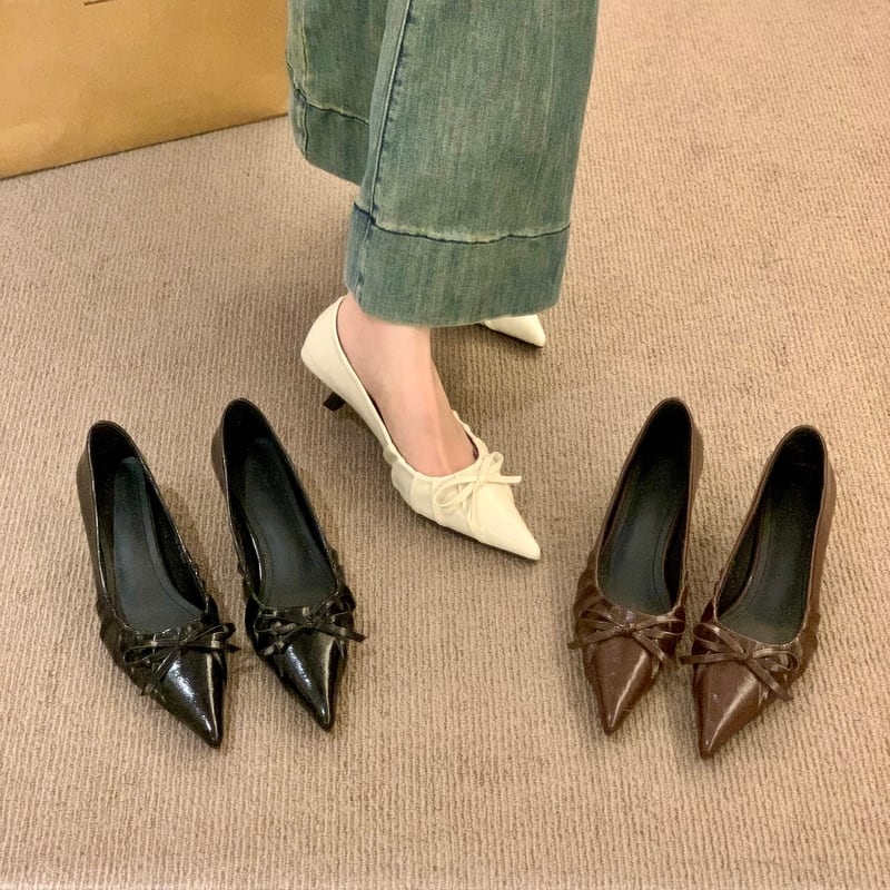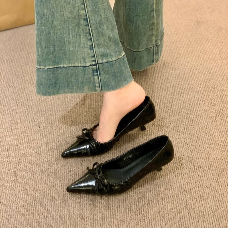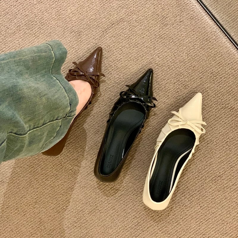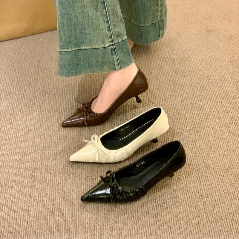足元をすっきりと見せるポインテッドトゥデザインのパンプスです。