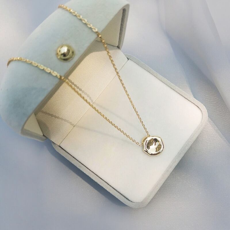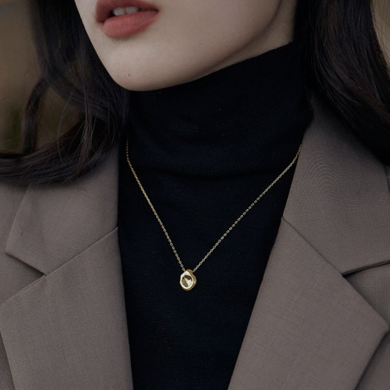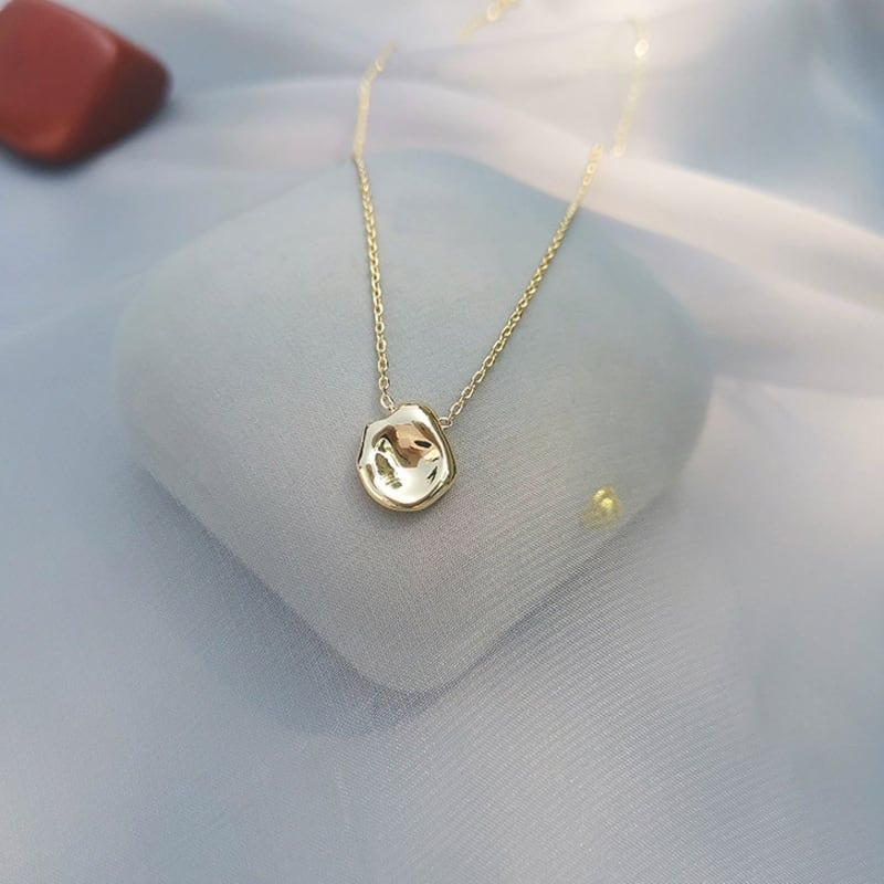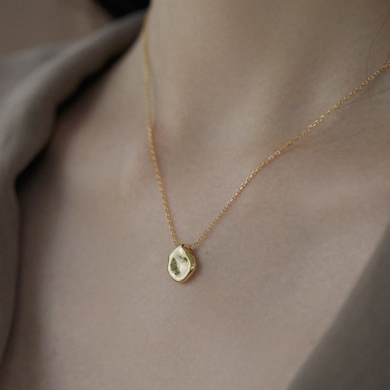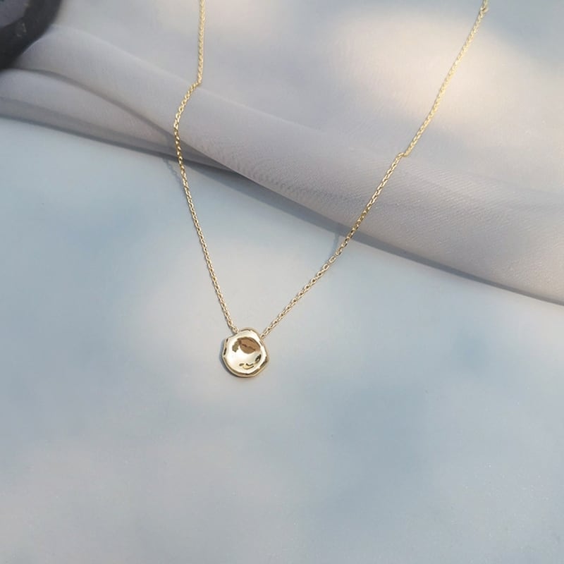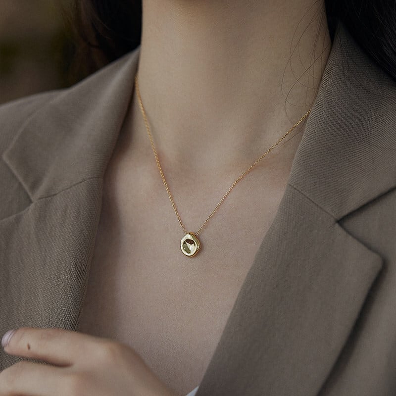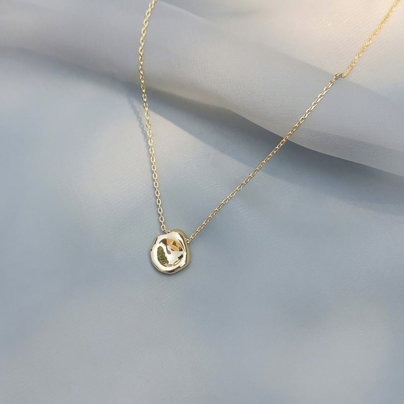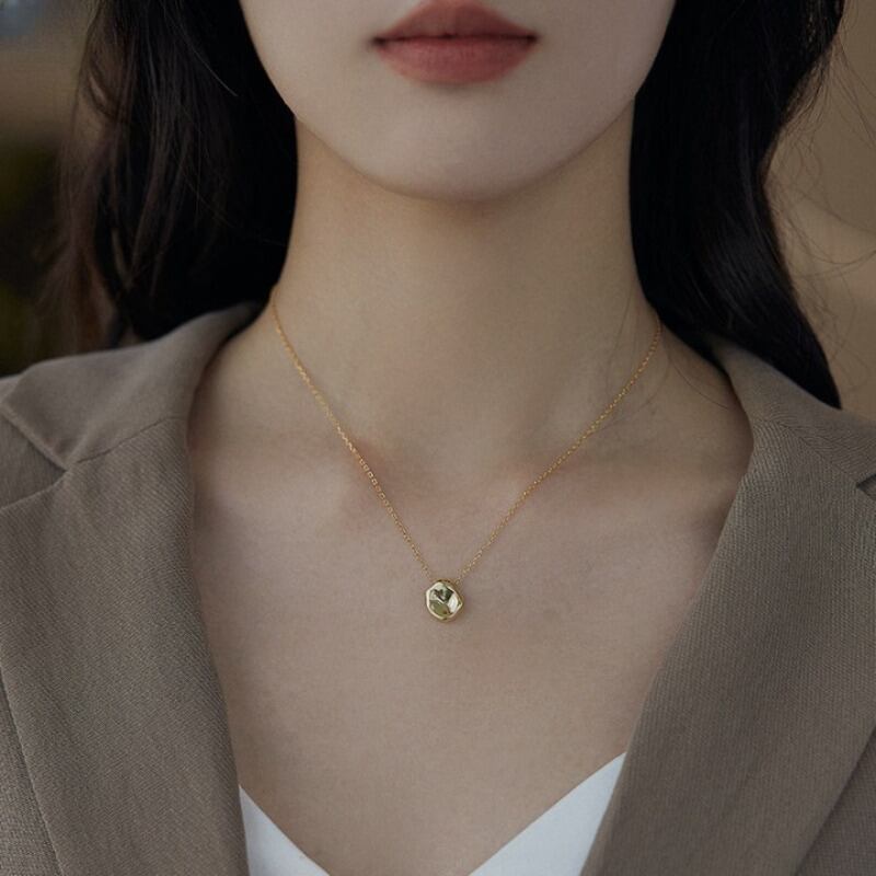 首元にさりげないアクセントを添える、ゴールドのラウンドナゲットネックレスです。