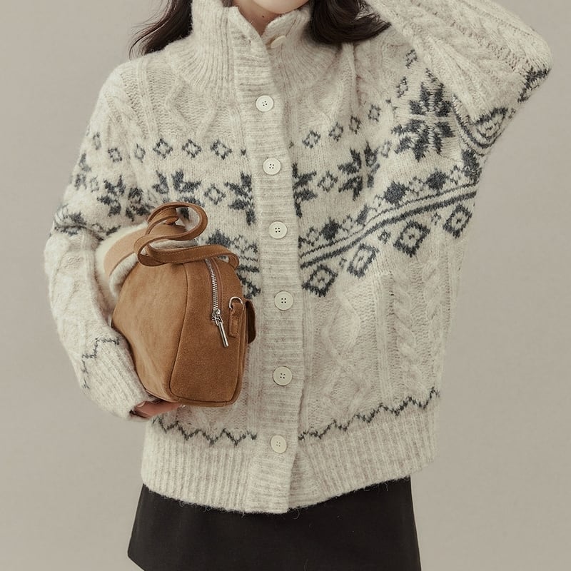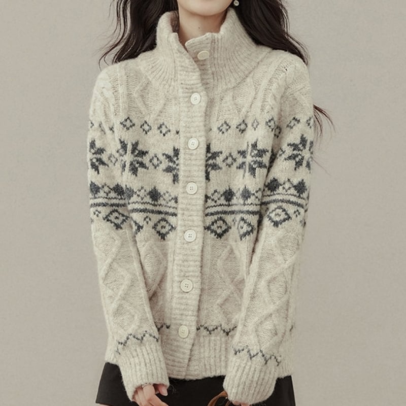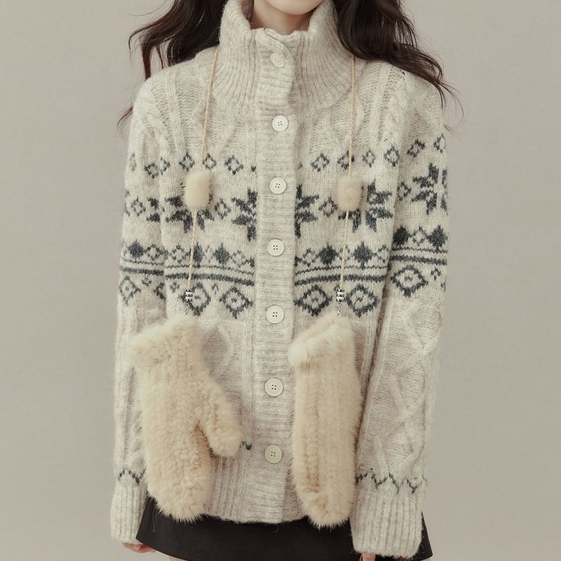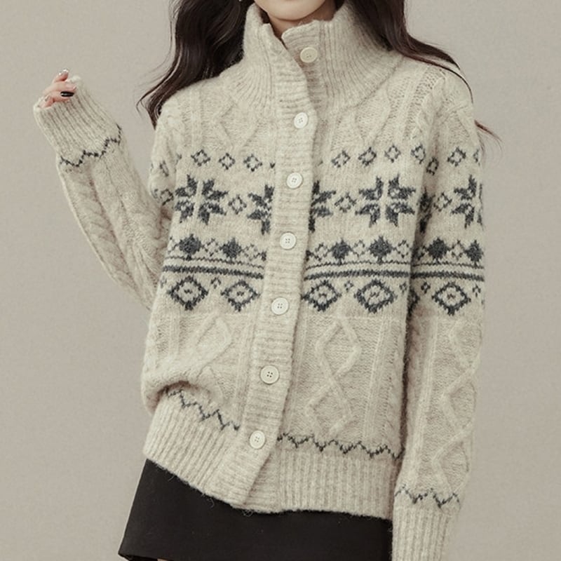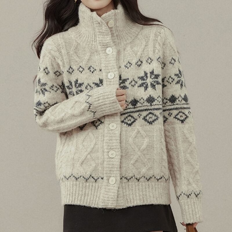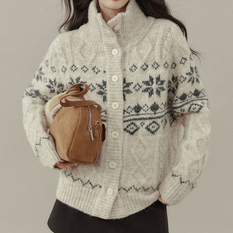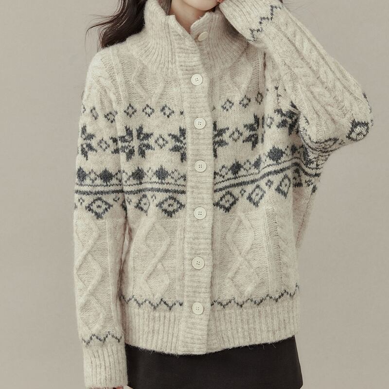 ノルディック柄がフェミニン、普段使いはもちろんオフィススタイルにも合わせやすい一枚です。