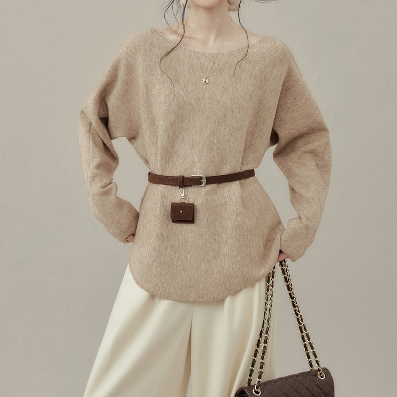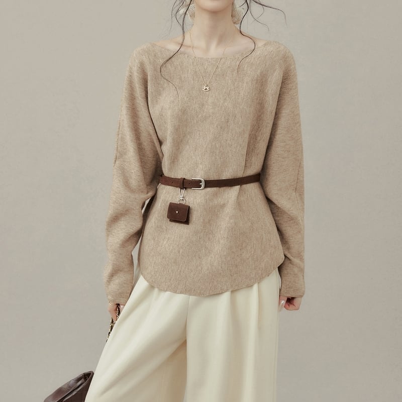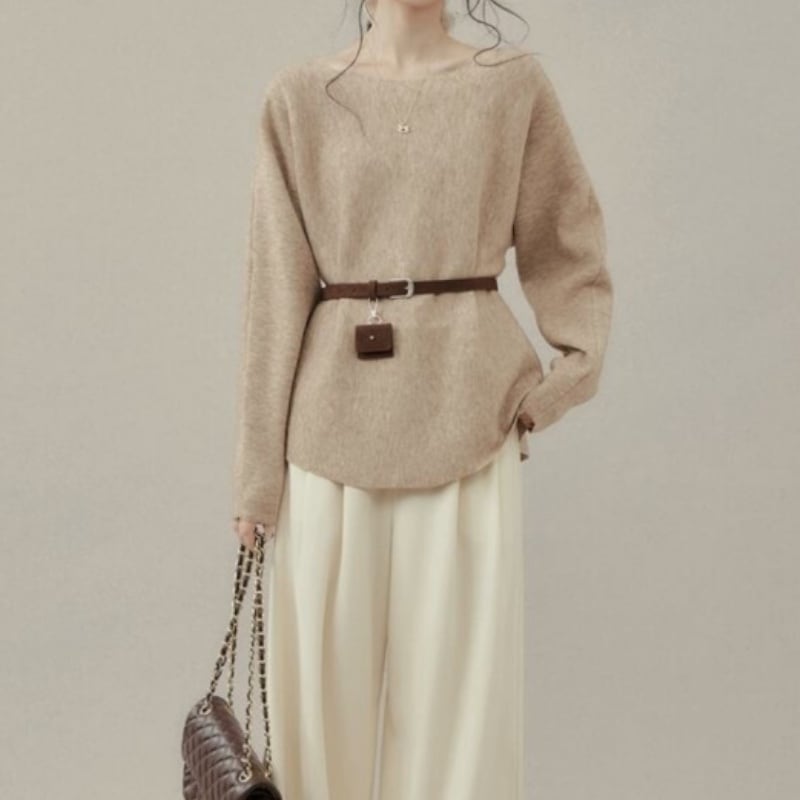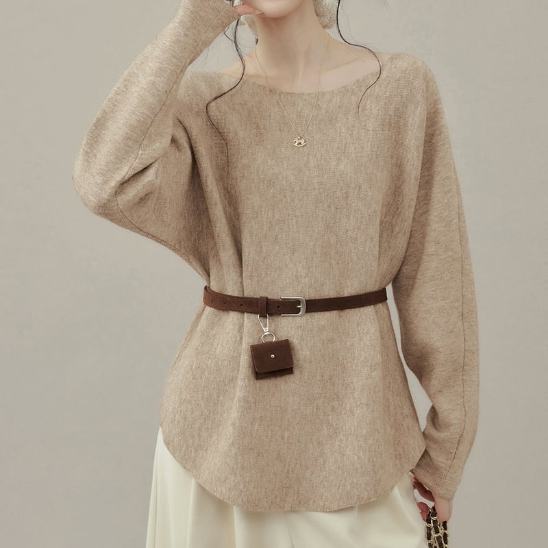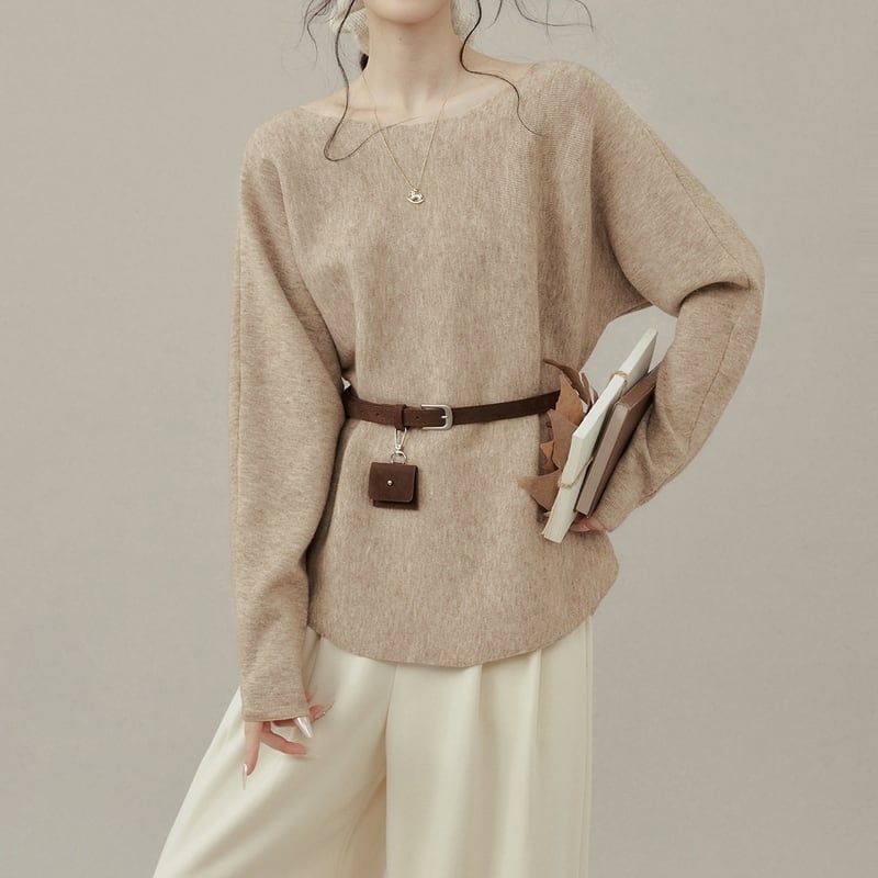 ゆったりとしたシルエットで、こなれ感を演出するボートネックのドルマンスリーブニットです。