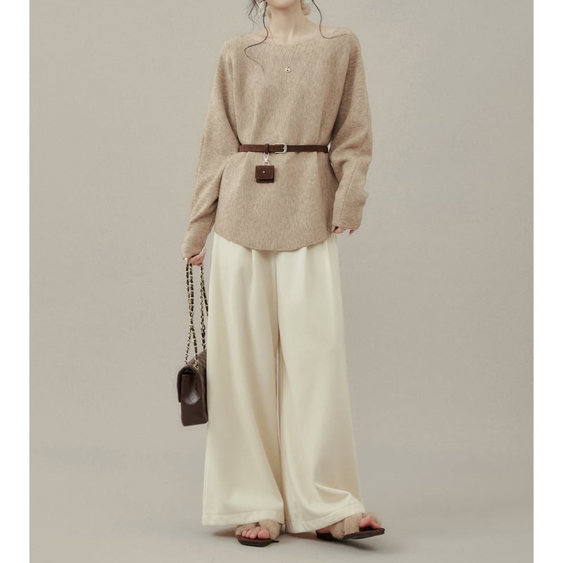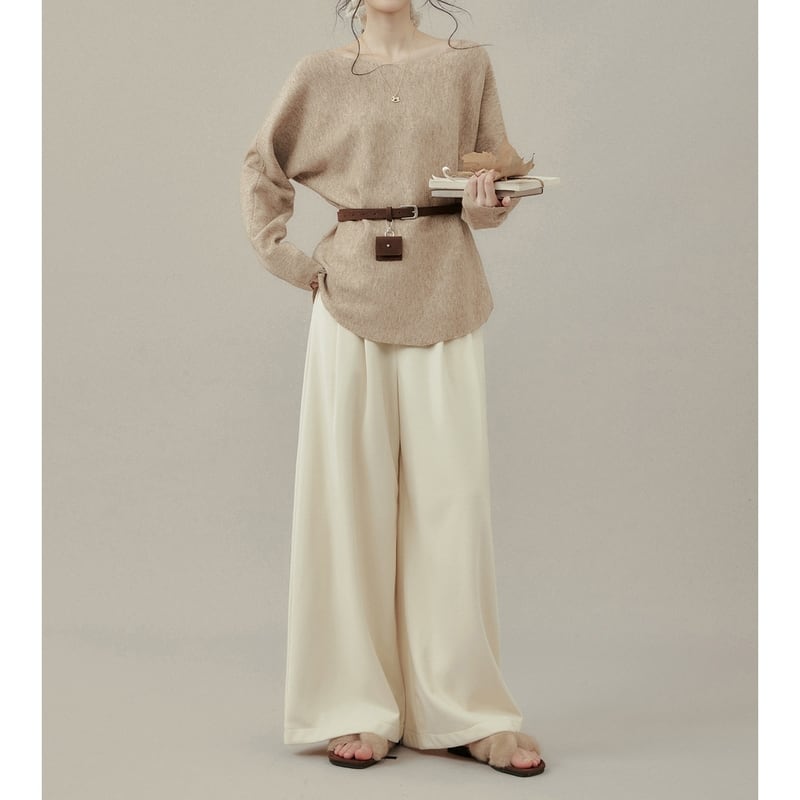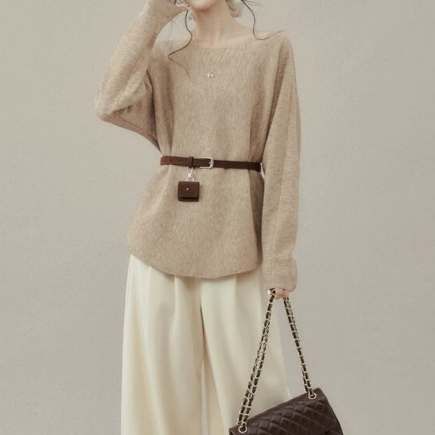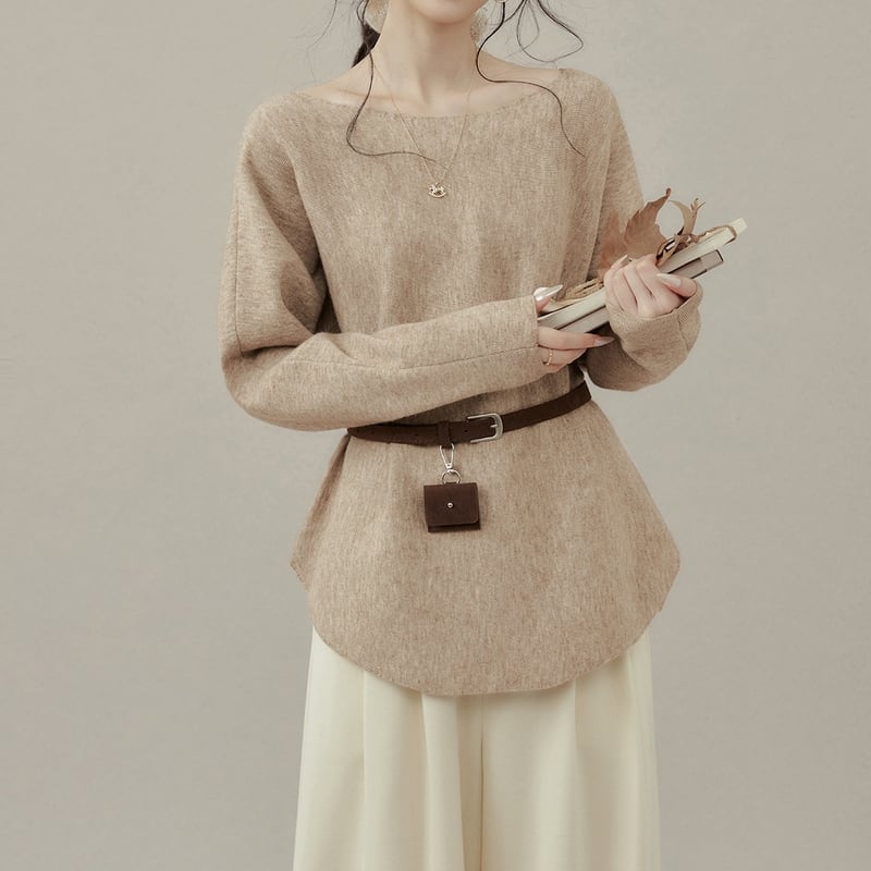 ゆったりとしたシルエットで、こなれ感を演出するボートネックのドルマンスリーブニットです。