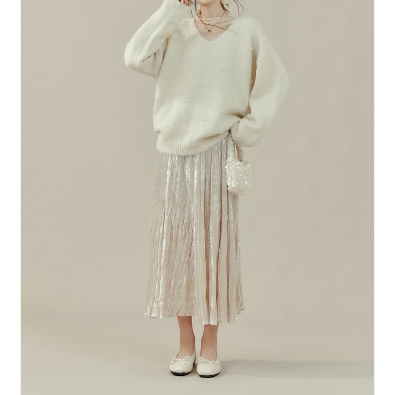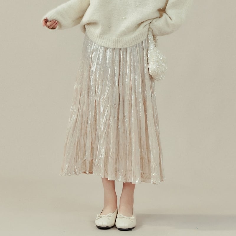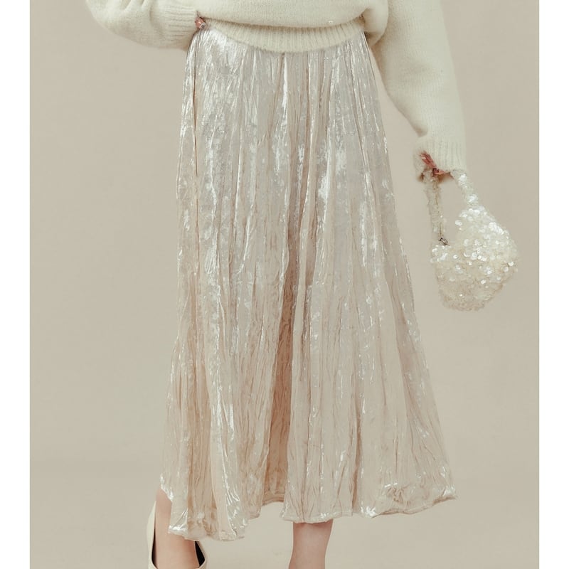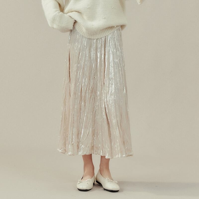 歩くたびに揺れるプリーツが、女性らしい印象を与えます。