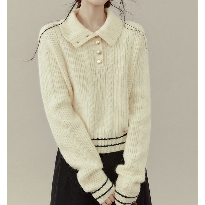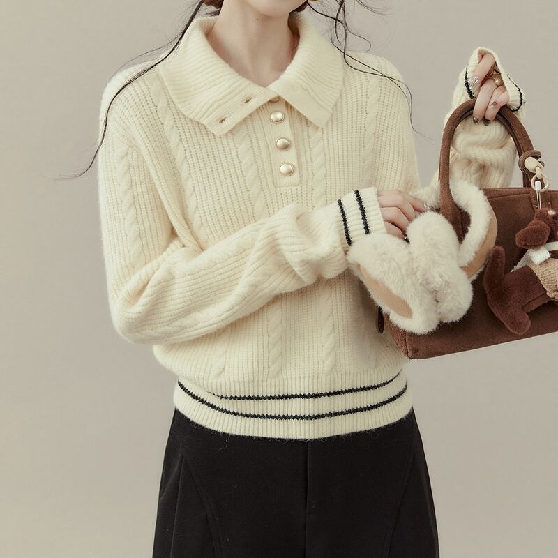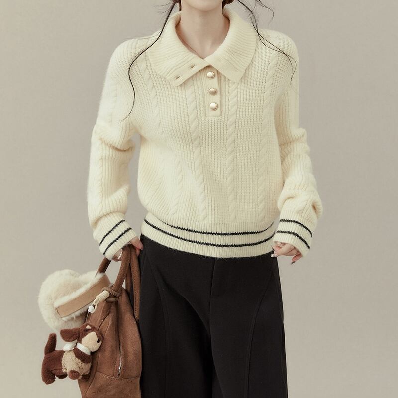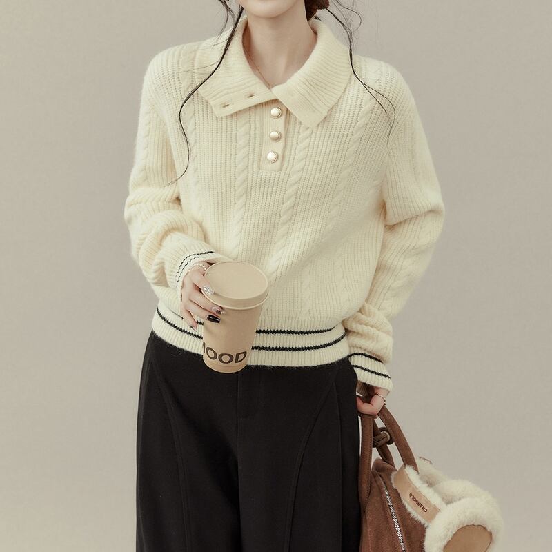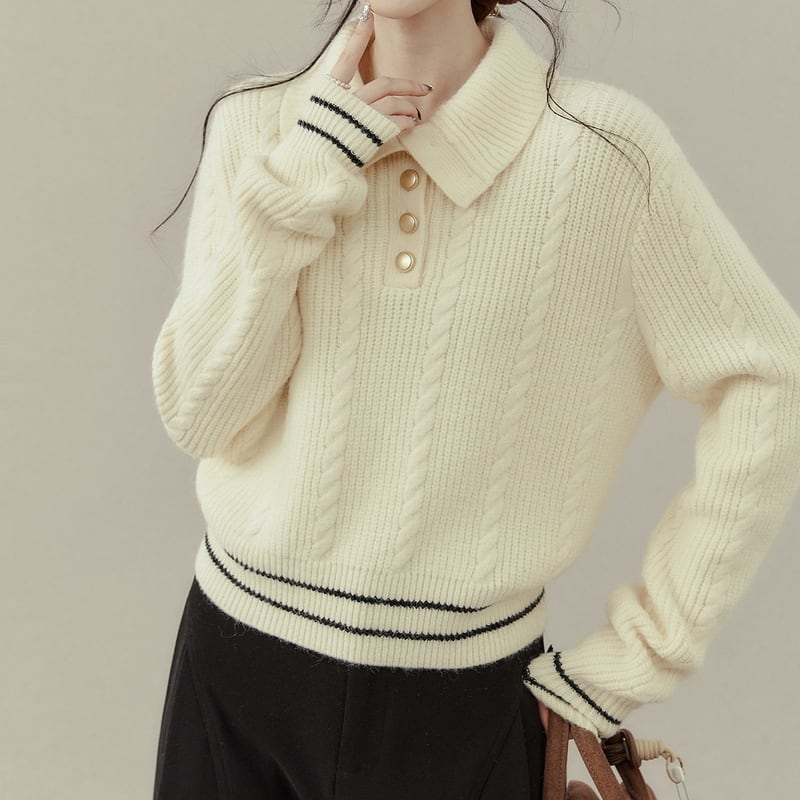 ボリューム感のある襟元のデザインが、顔周りをすっきりと見せてくれます。