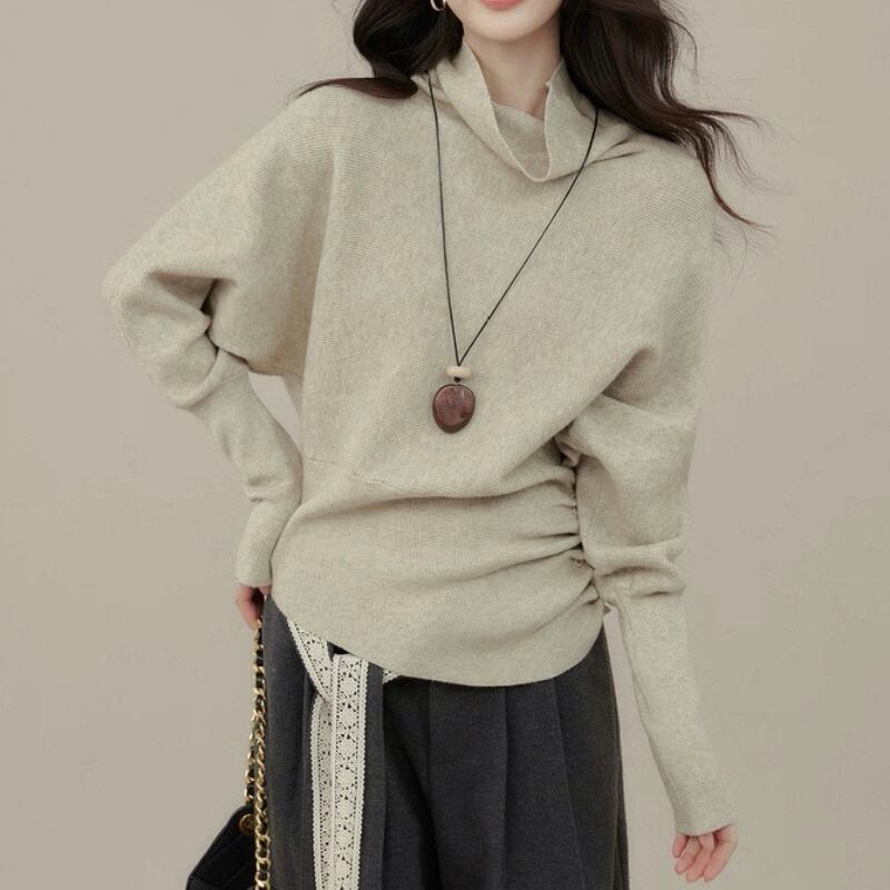 サイドギャザーとドルマンスリーブのニュアンスがこなれ感を演出。