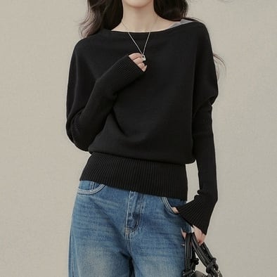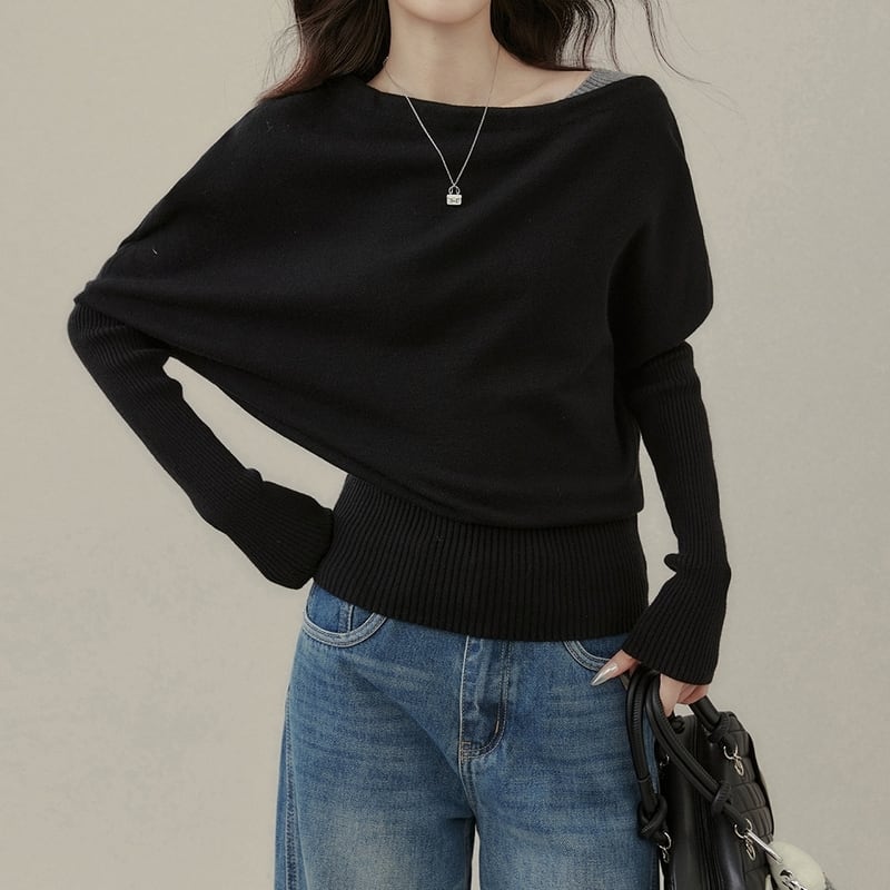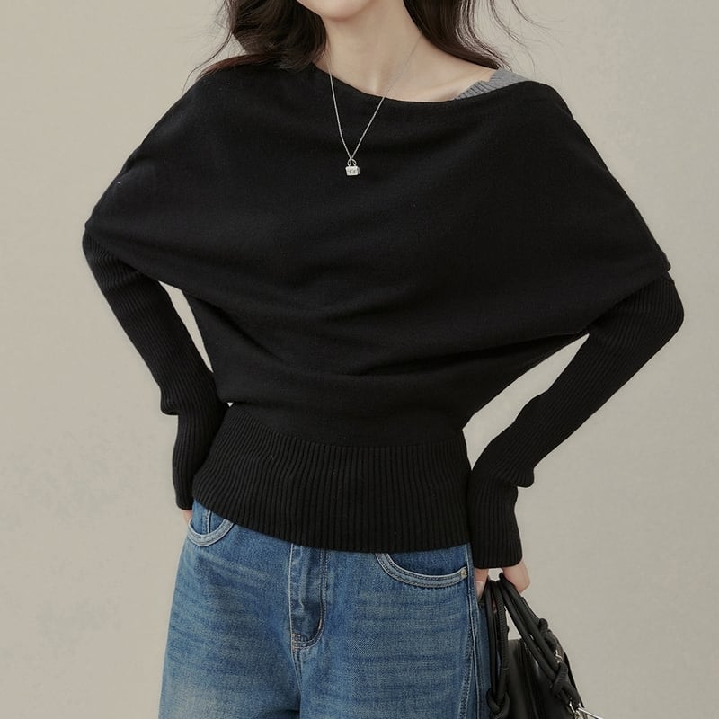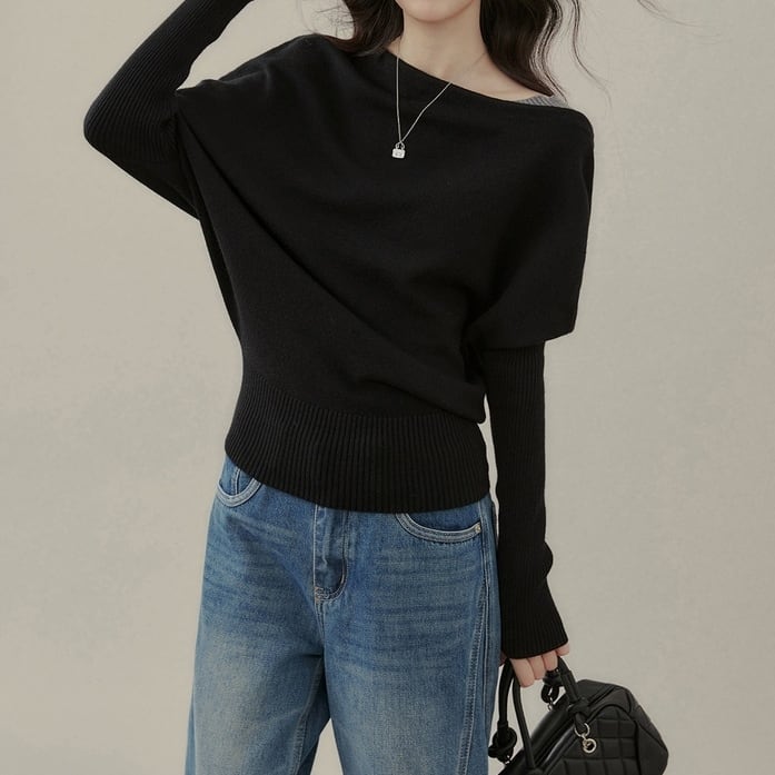 リラックス感のあるドルマンスリーブが印象的なリブニットプルオーバーです。