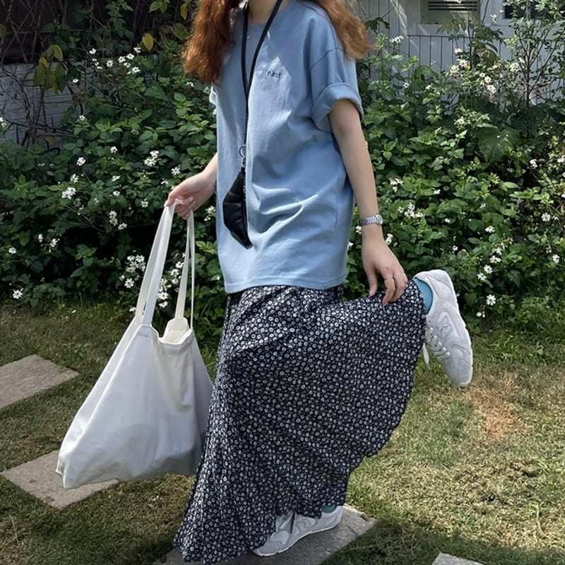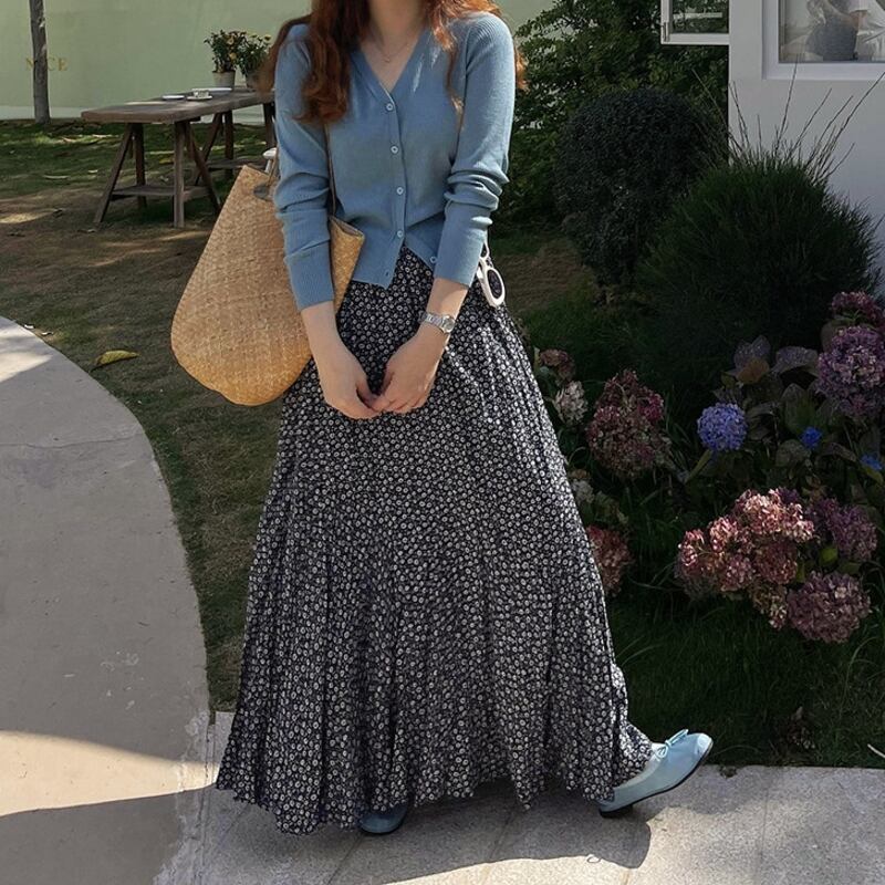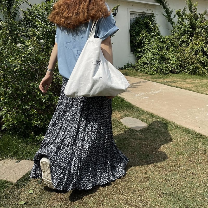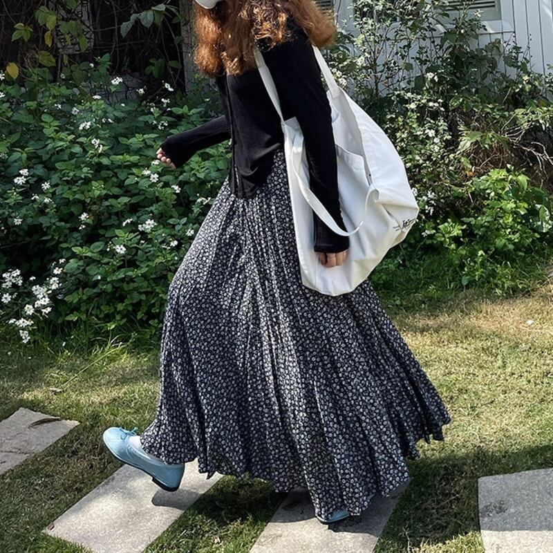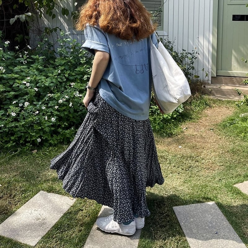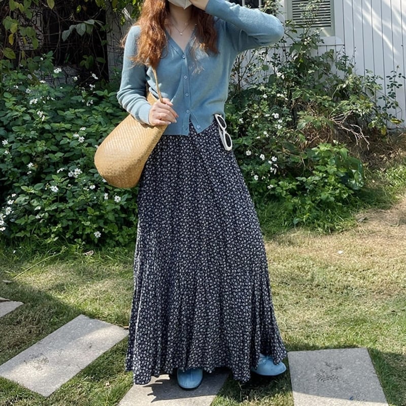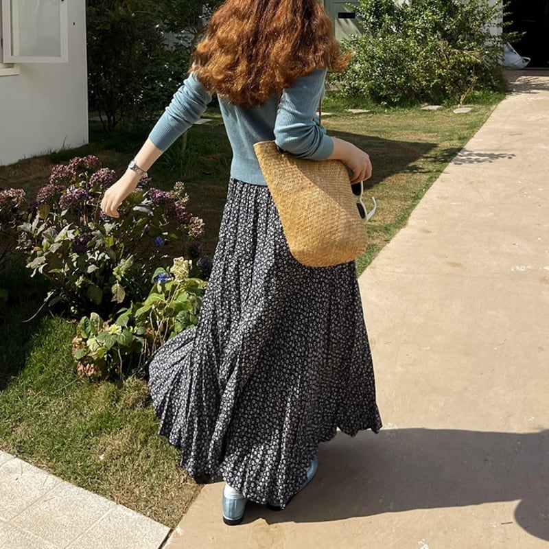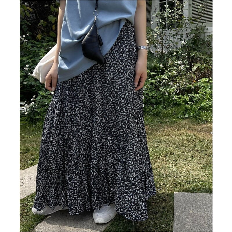 可憐な小花柄が目を引く、ランダムなプリーツ感がこなれたマキシ丈スカートです。