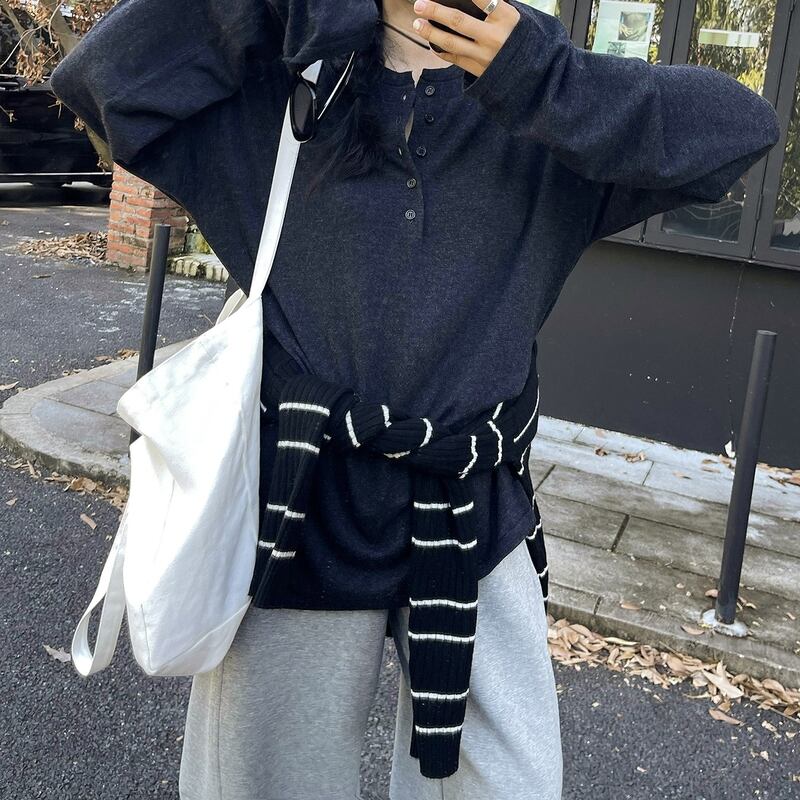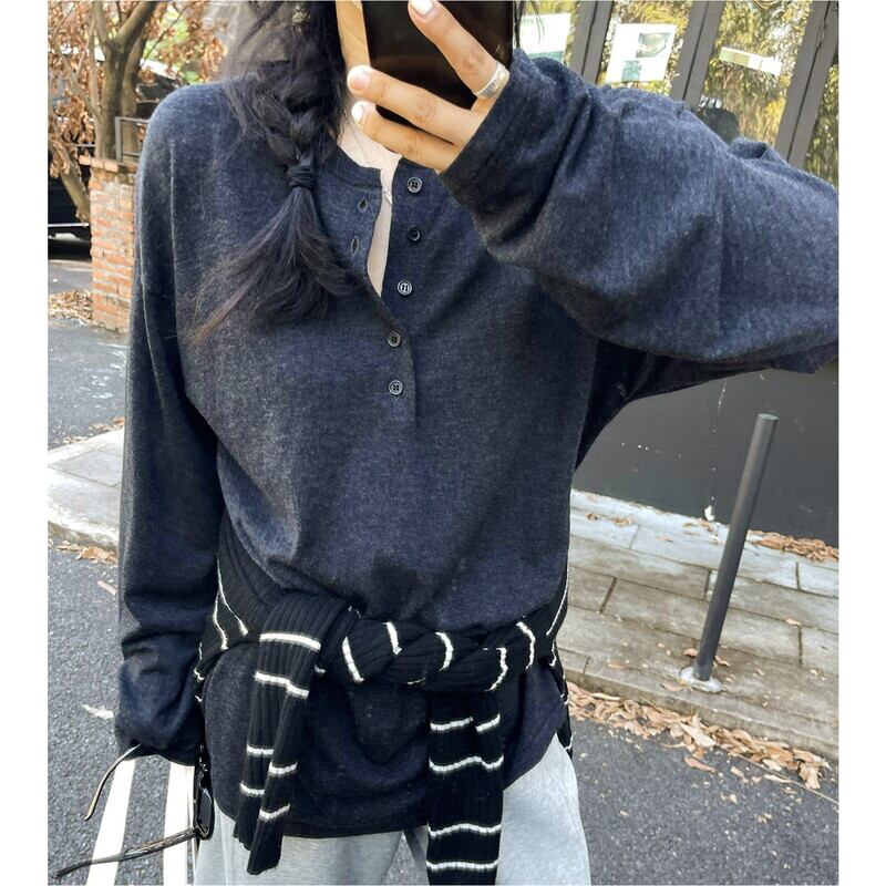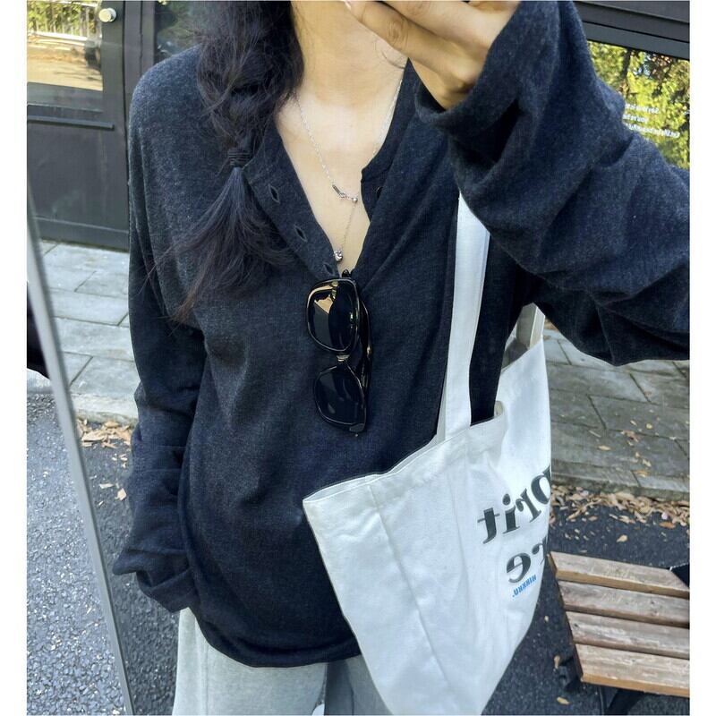 ルーズなシルエットでこなれ感を演出する、ヘンリーネックのTシャツです。