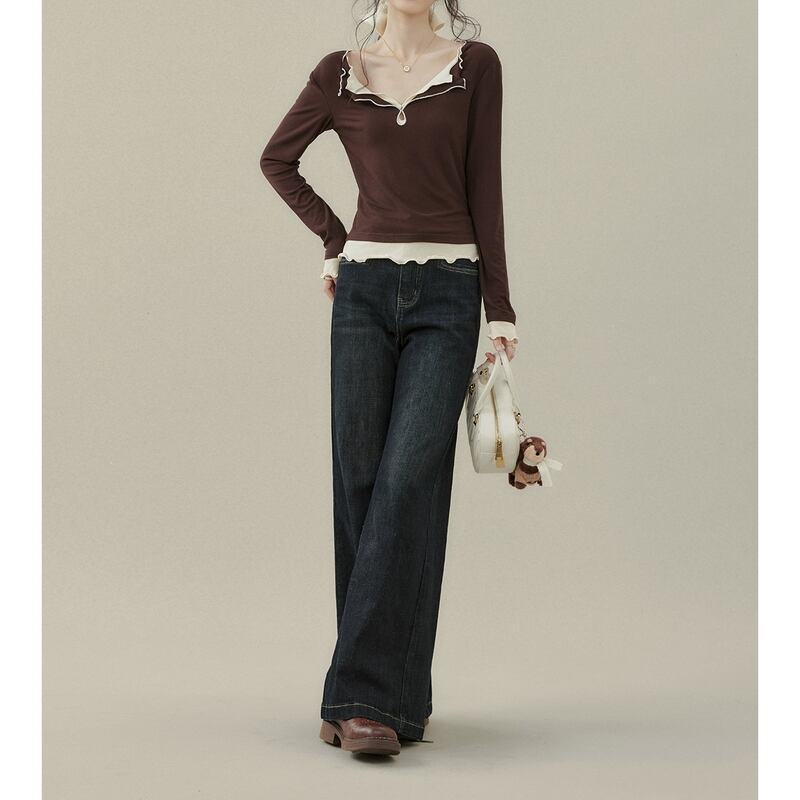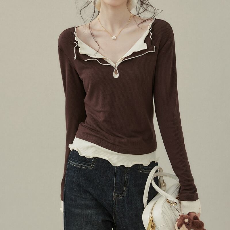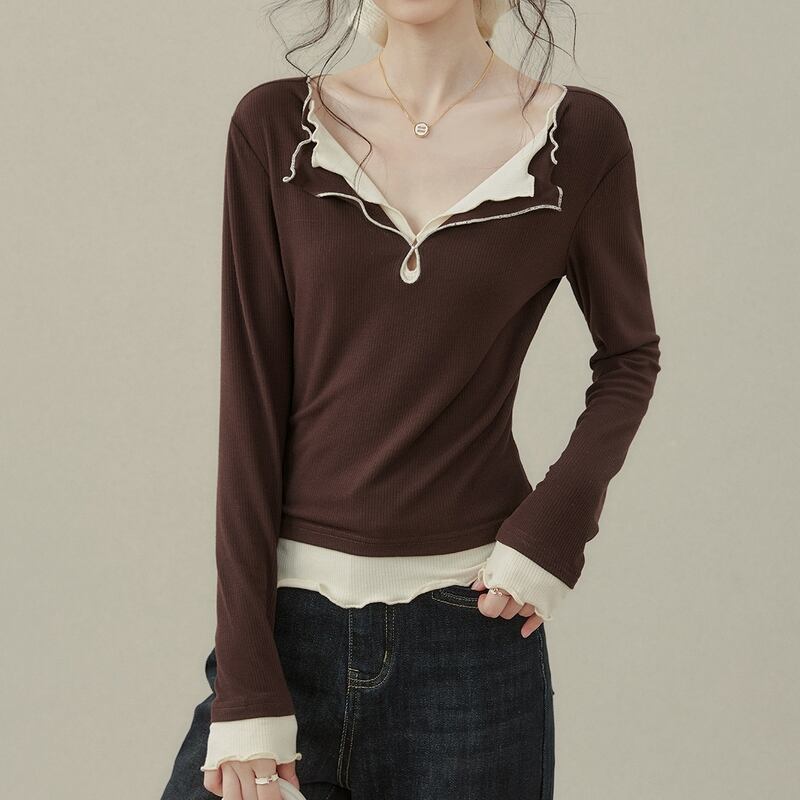 リブ編み素材が特徴的な、メロウな端処理がこなれた長袖トップスです。
