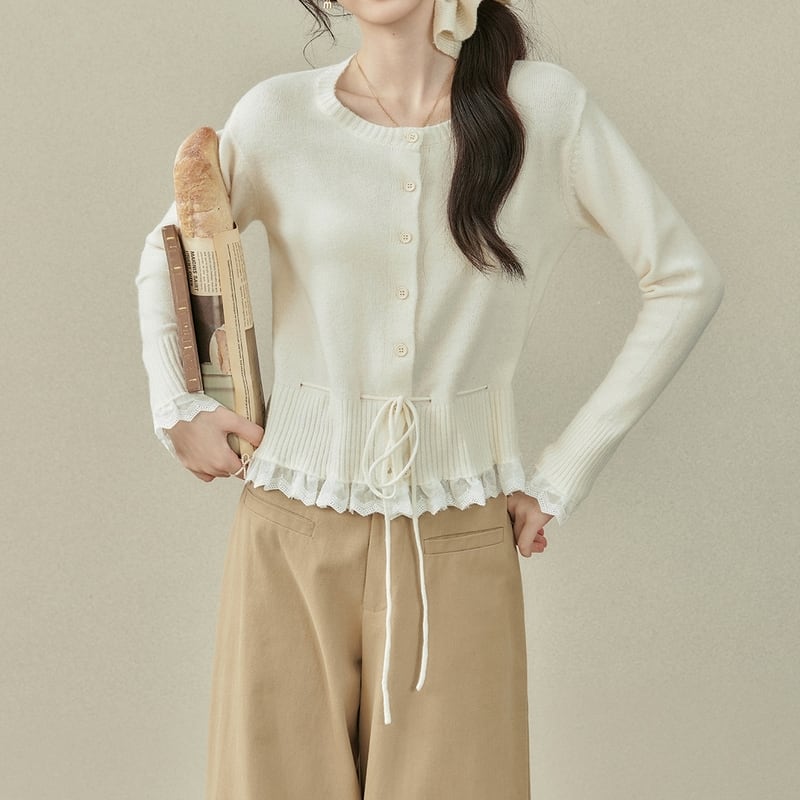 短めの着丈でスタイルアップ効果のあるウエストマークカーディガンです。
