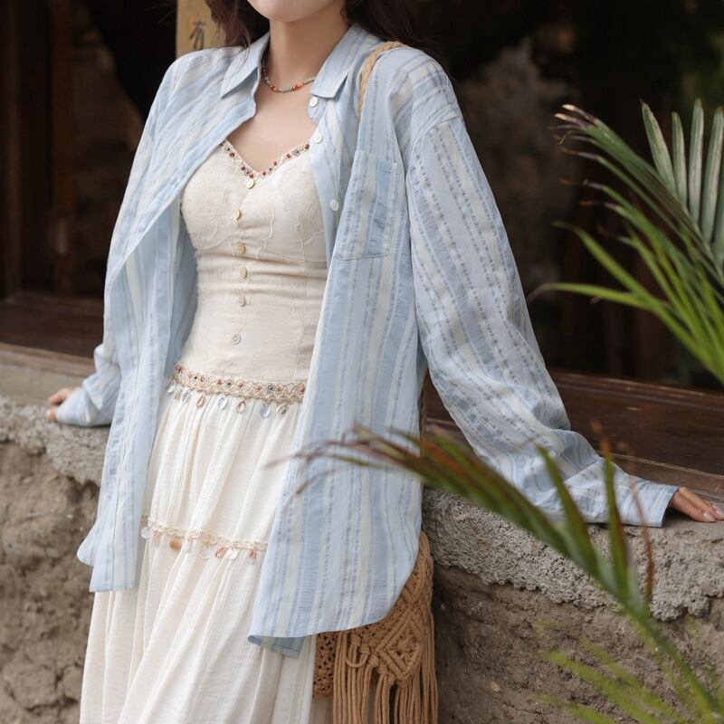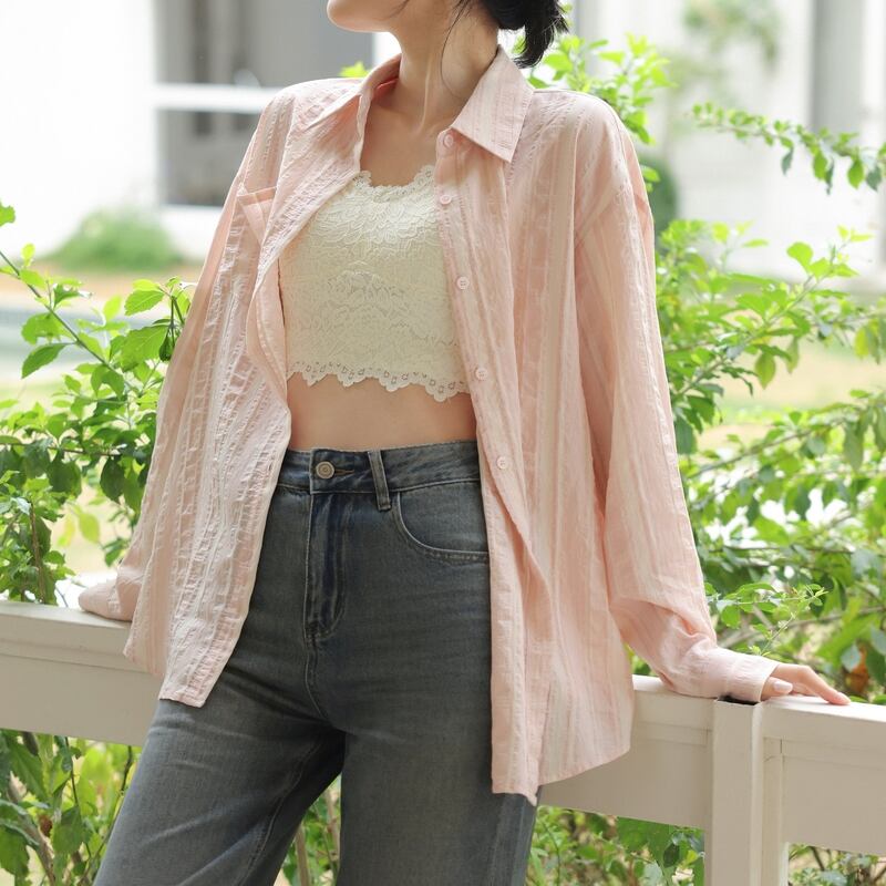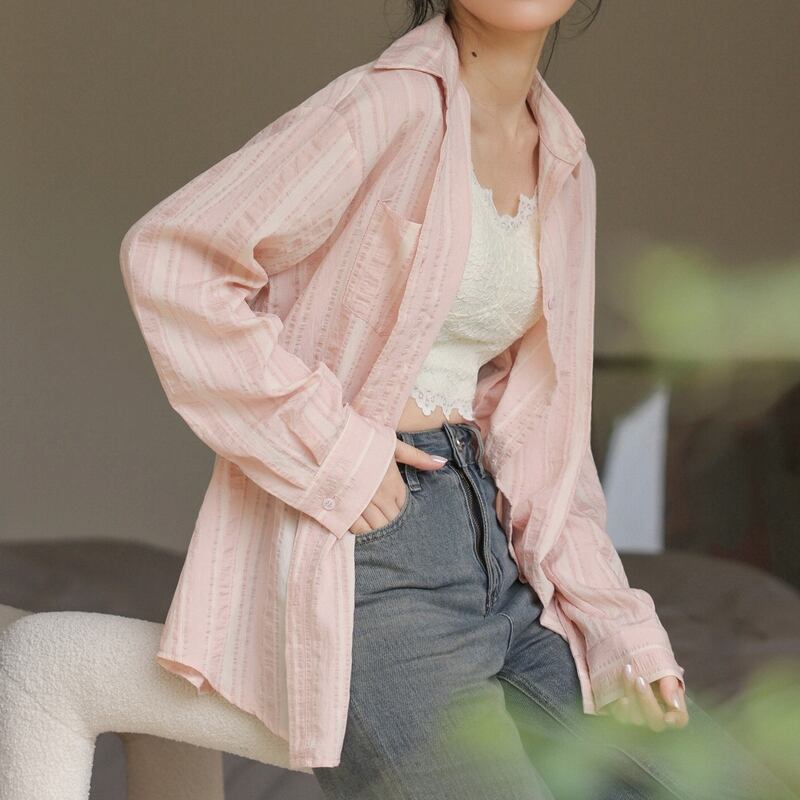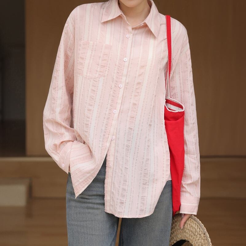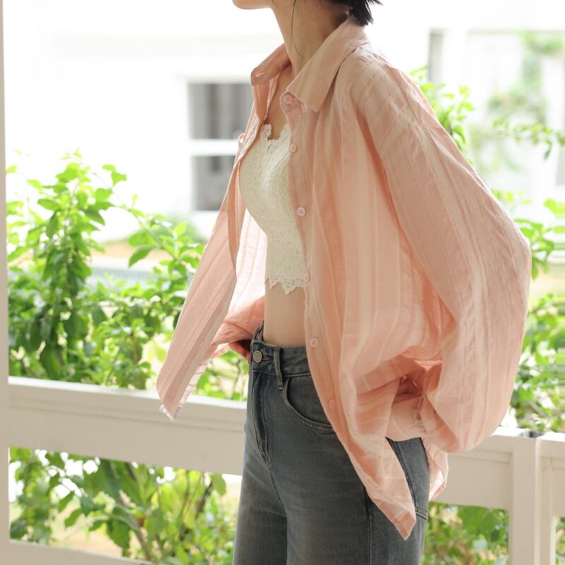 淡いストライプ柄が、コーディネートに軽やかな印象をプラスするシャツ。