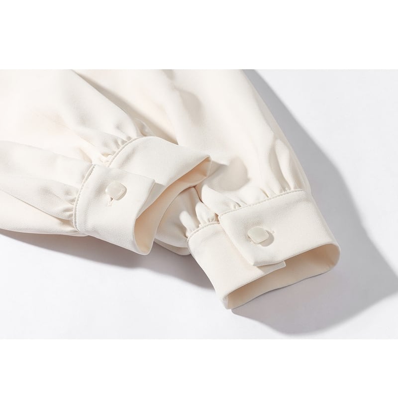 ふんわりとしたパワーショルダーのパフスリーブが女性らしさを演出。